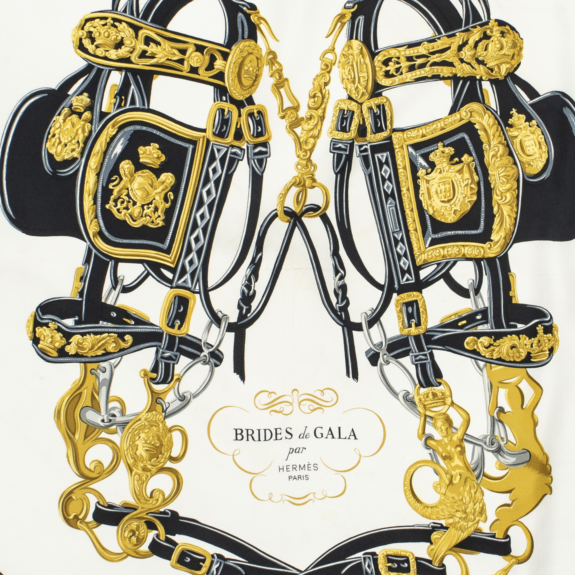 Hermès Scarf Scarf in Black/Ivory/Gold 100% Twill Silk and None hardware. The product is in Very Good Condition (AB).