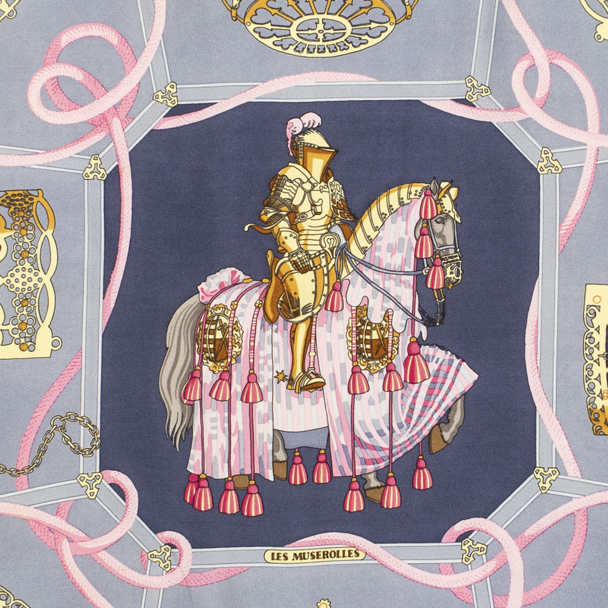 Hermès Scarf Scarf in Grey/Pink/Gold 100% Twill Silk and None hardware. The product is in Excellent Condition (A).
