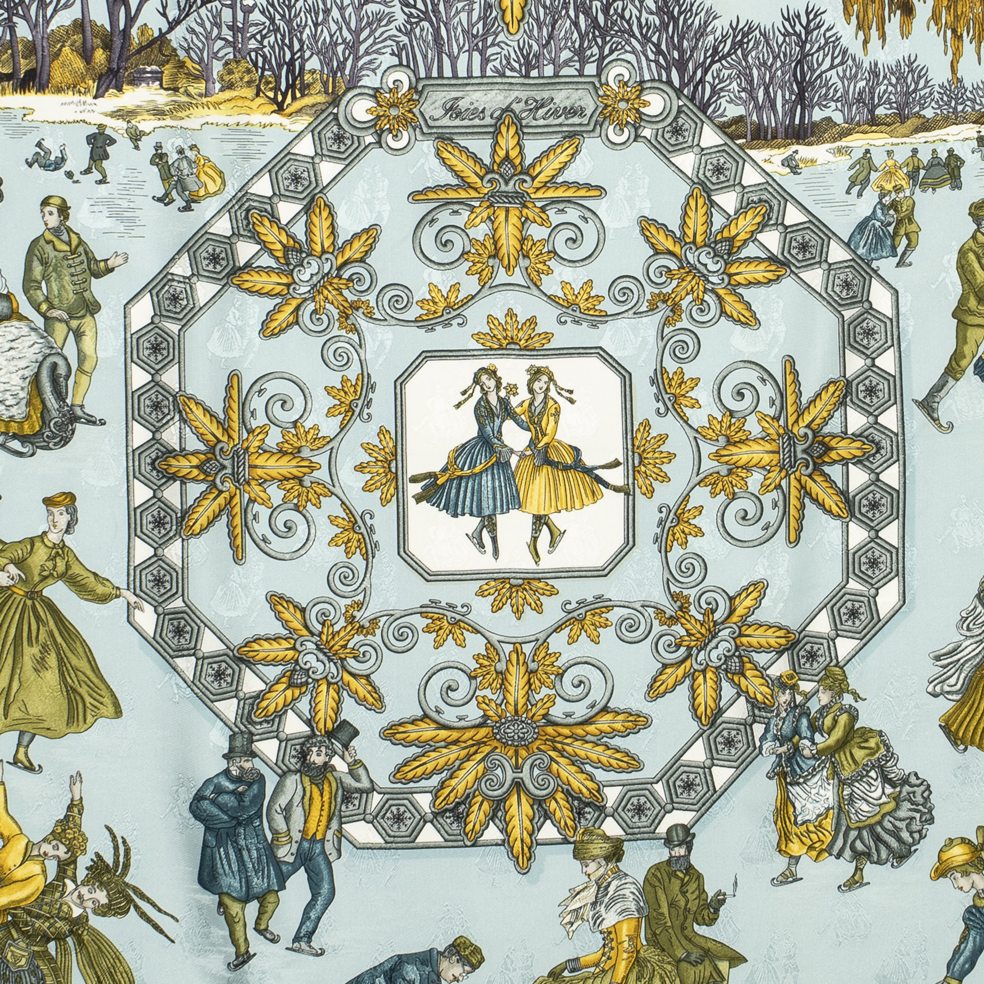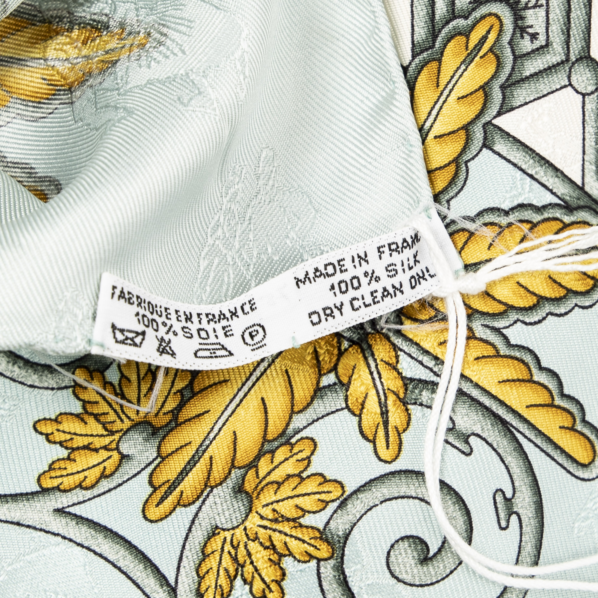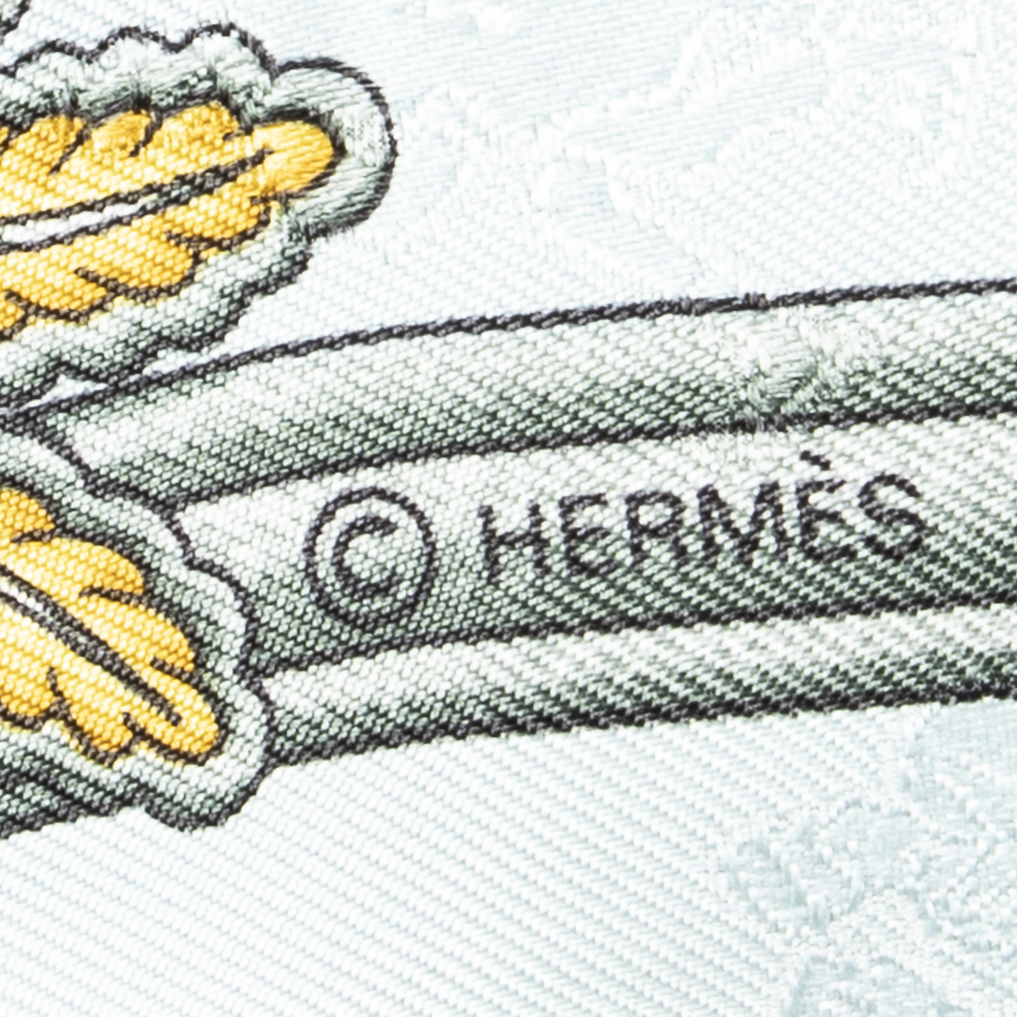 Hermès Scarf Scarf in Light Blue/Yellow/Grey 100% Jacquard Silk and None hardware. The product is in Very Good Condition (AB).