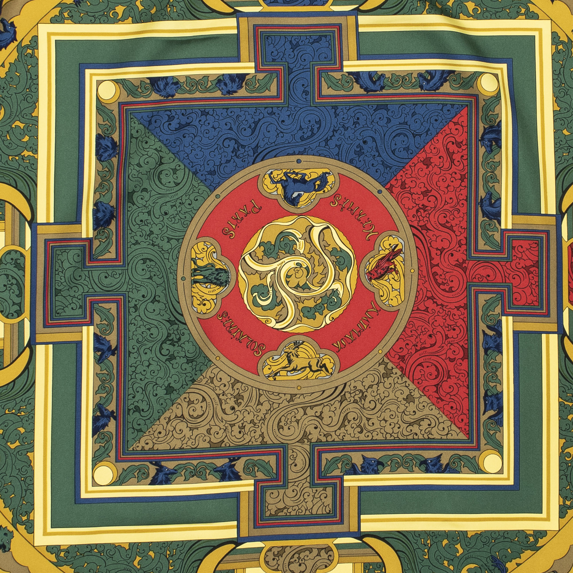 Hermès Scarf Scarf in Green/Red/Yellow 100% Twill Silk and None hardware. The product is in Perfect Condition (AA).