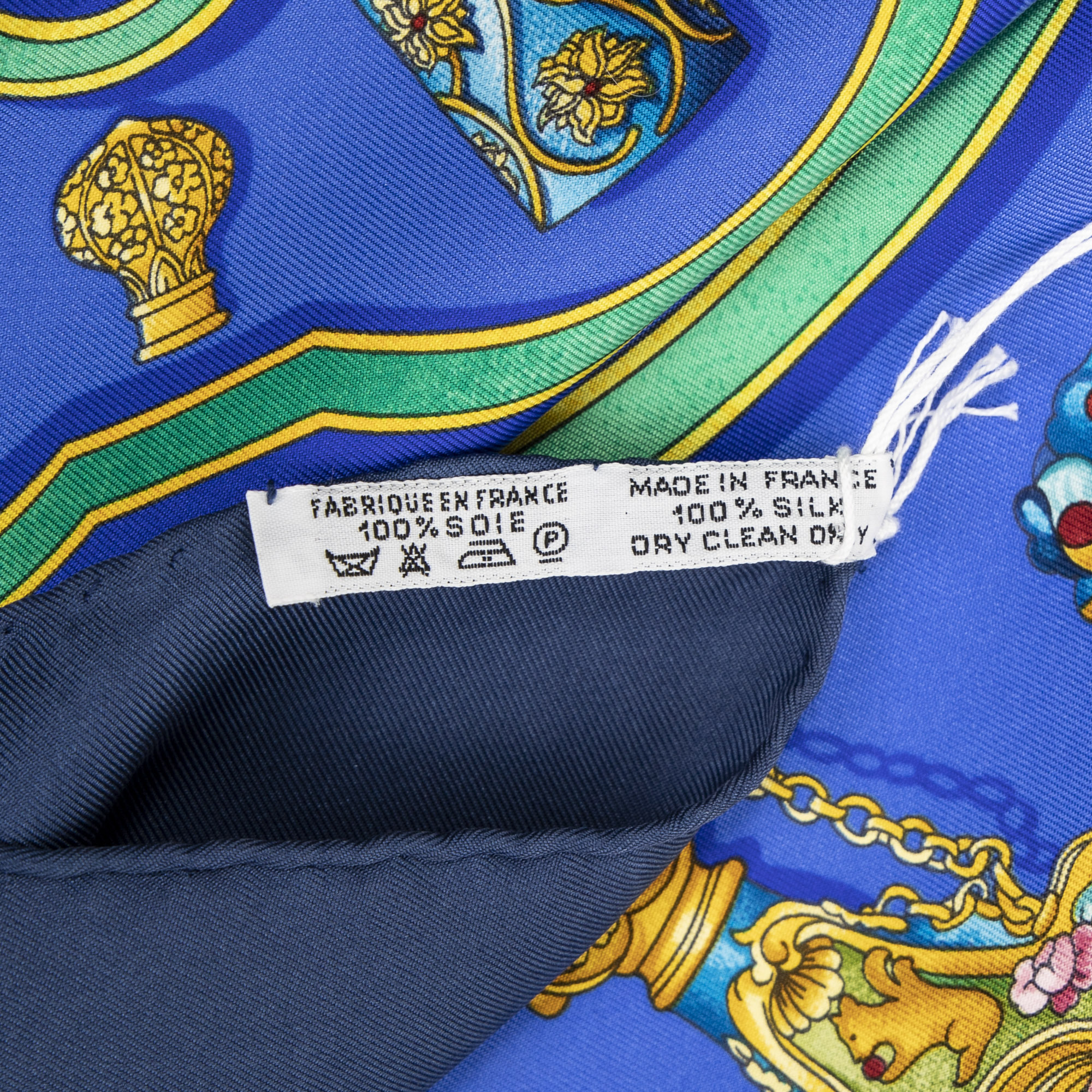 Hermès Scarf Scarf in Blue/Green/Gold 100% Twill Silk and None hardware. The product is in Excellent Condition (A).