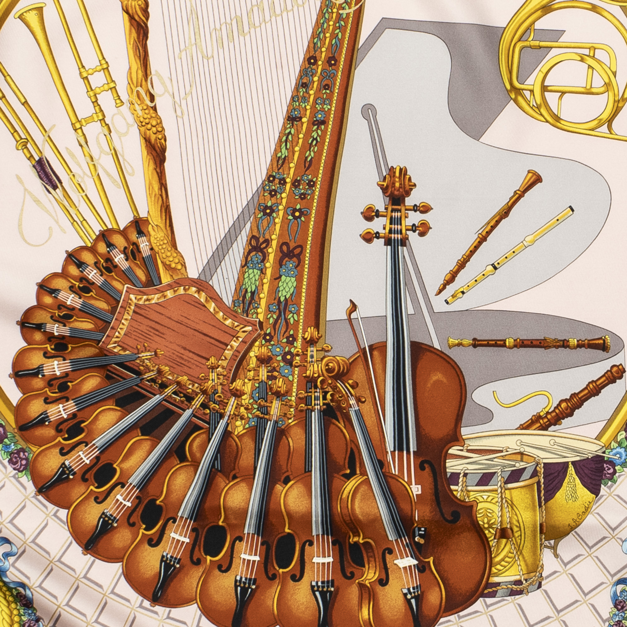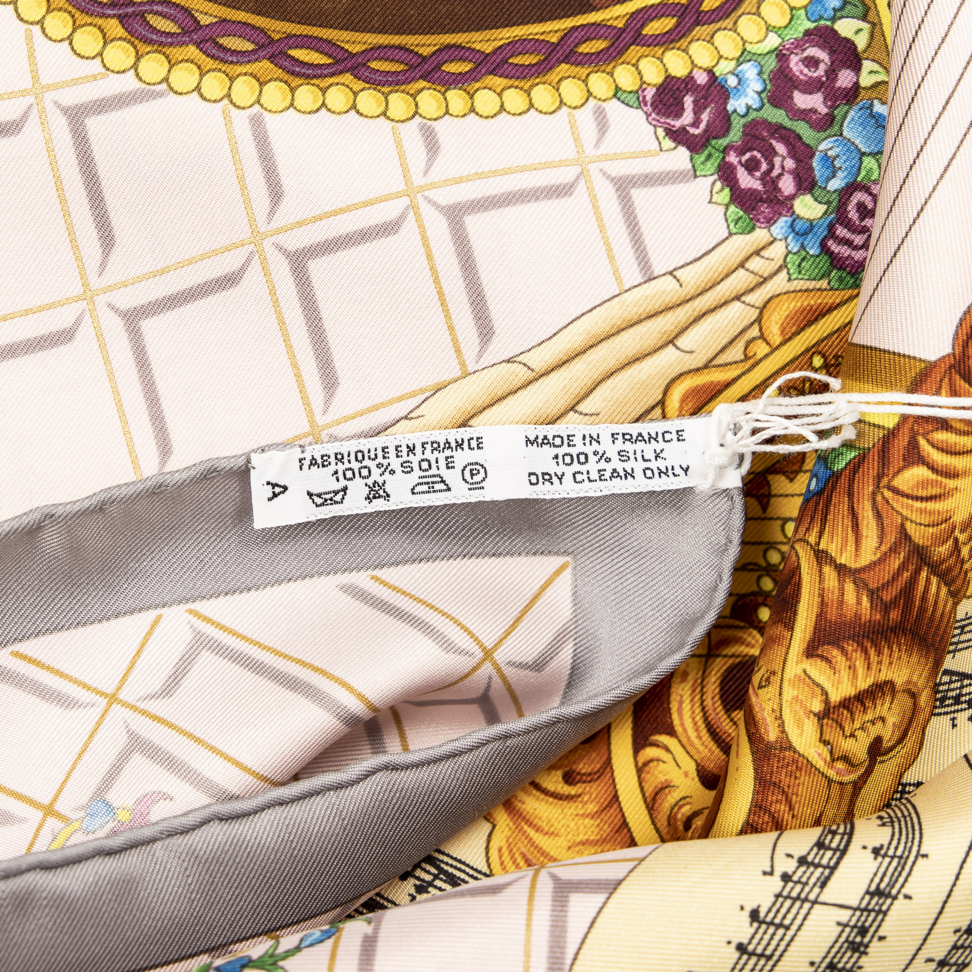 Hermès Scarf Scarf in Light Pink/Grey/Gold 100% Twill Silk and None hardware. The product is in Perfect Condition (AA).