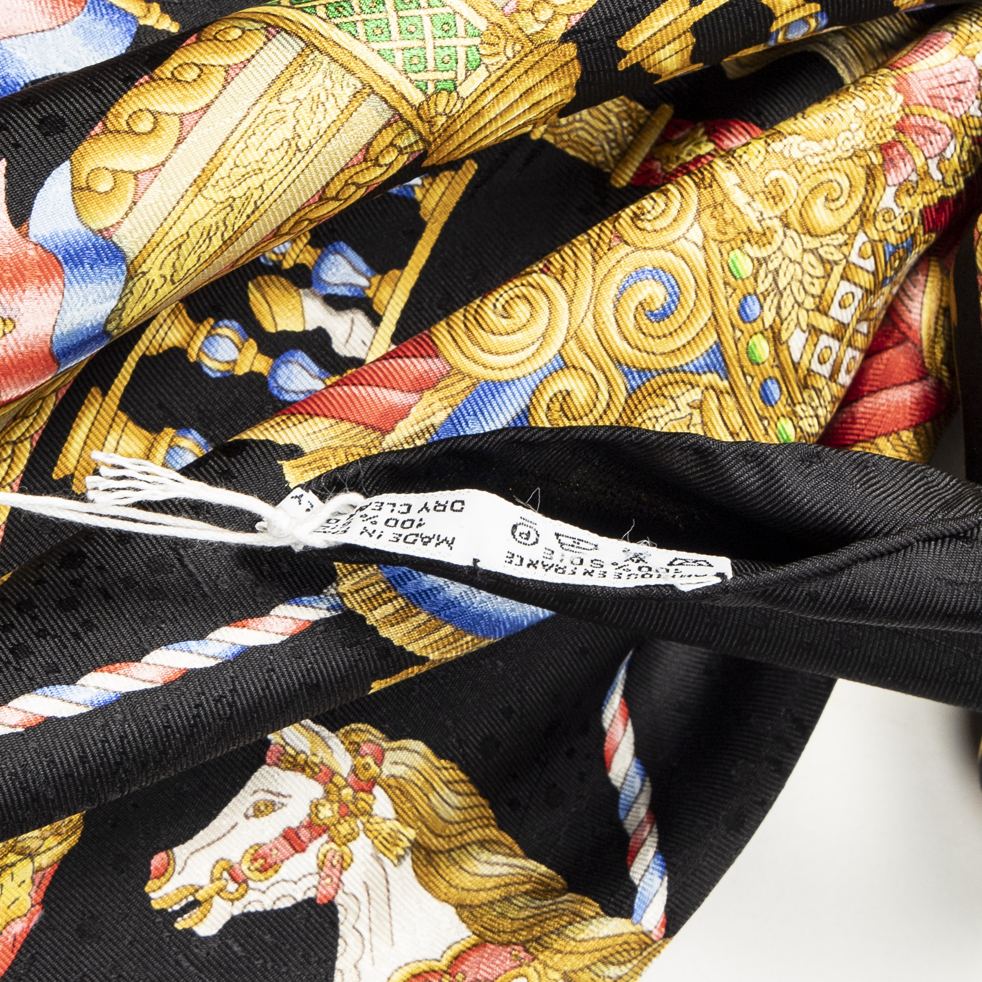 Hermès Scarf Scarf in Black/Gold/Red 100% Jacquard Silk and None hardware. The product is in Perfect Condition (AA).