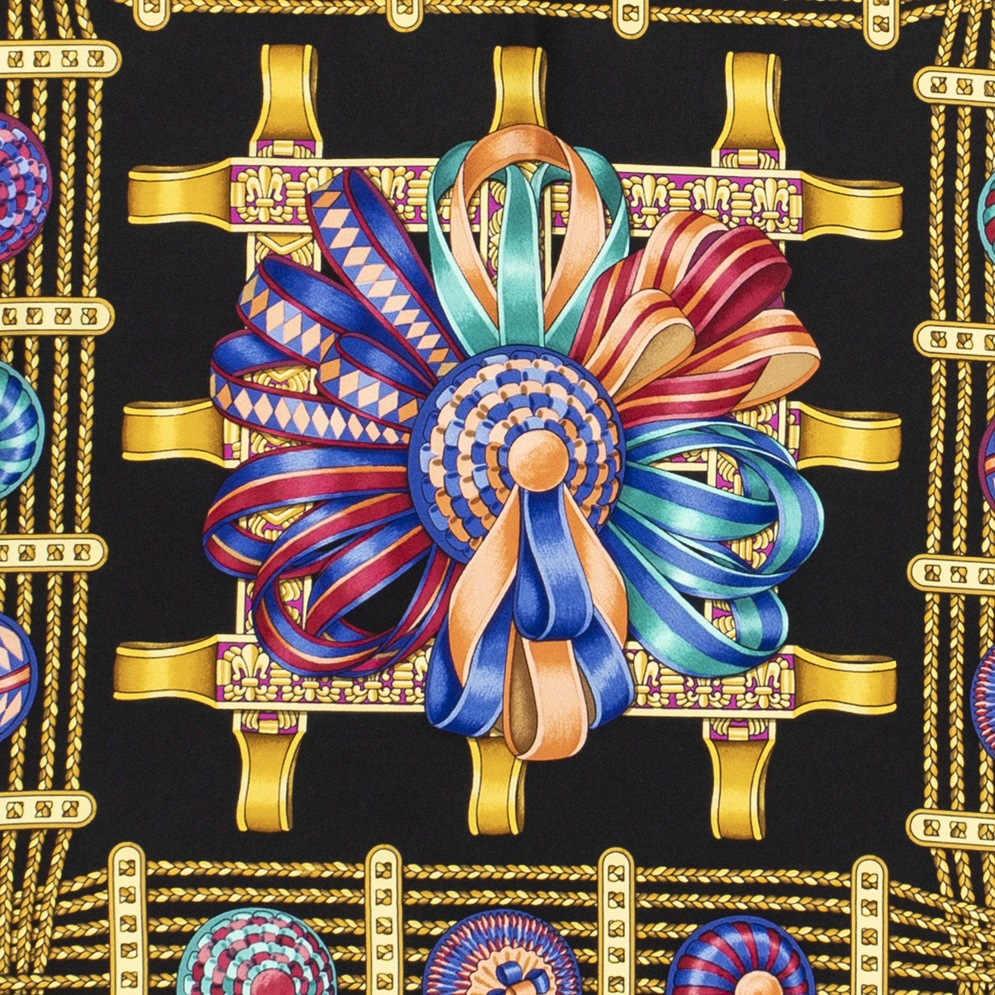 Hermès Scarf Scarf in Black/Gold/Red 100% Twill Silk and None hardware. The product is in Perfect Condition (AA).