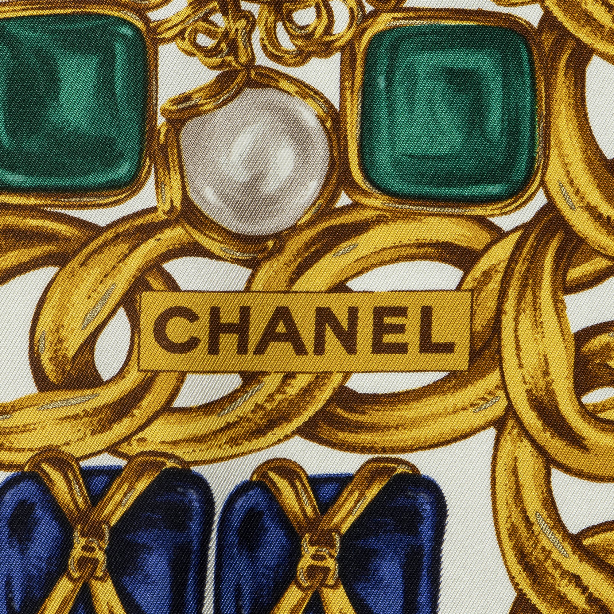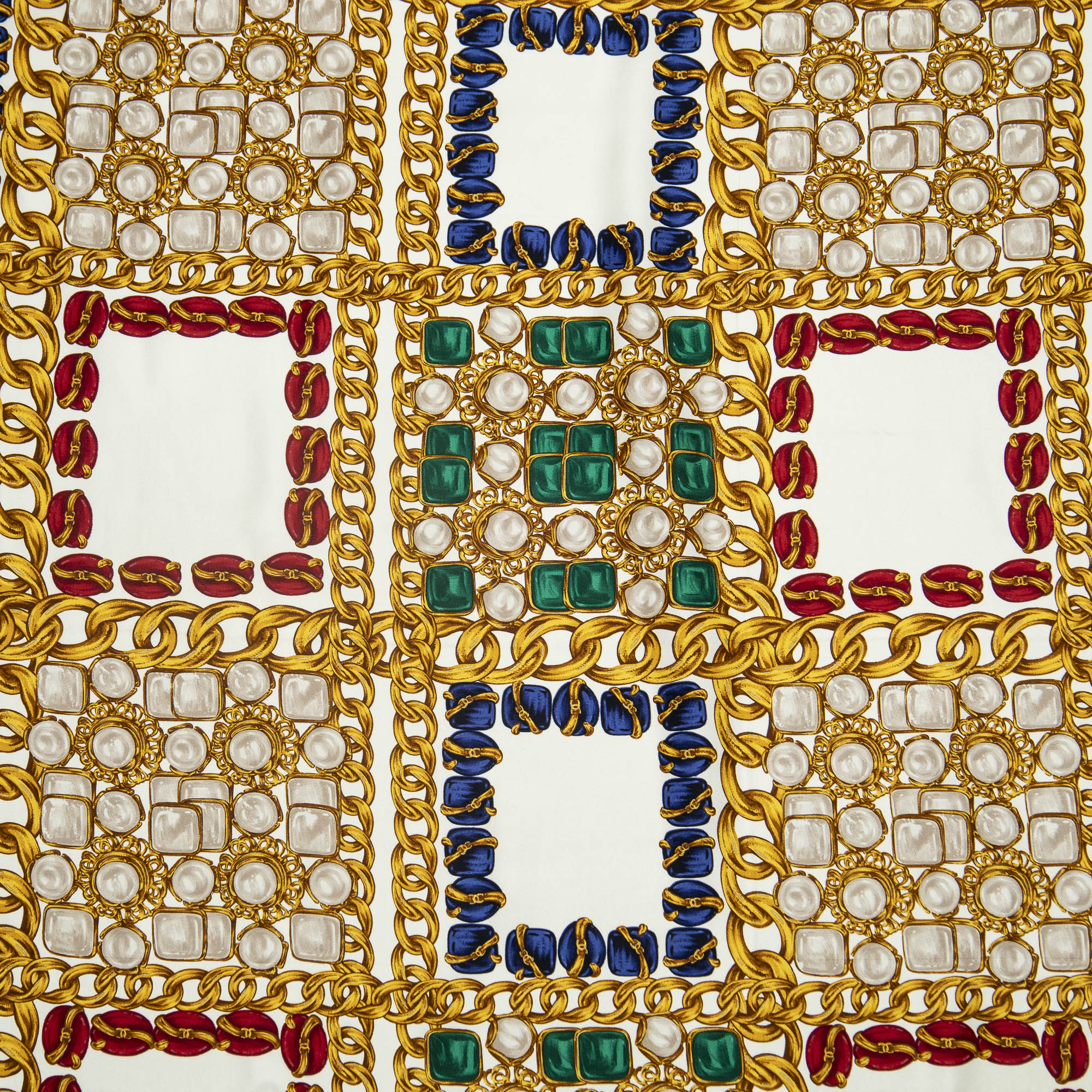 Chanel Scarf Scarf in Ivory/Gold/Red 100% Silk and None hardware. The product is in Excellent Condition (A).