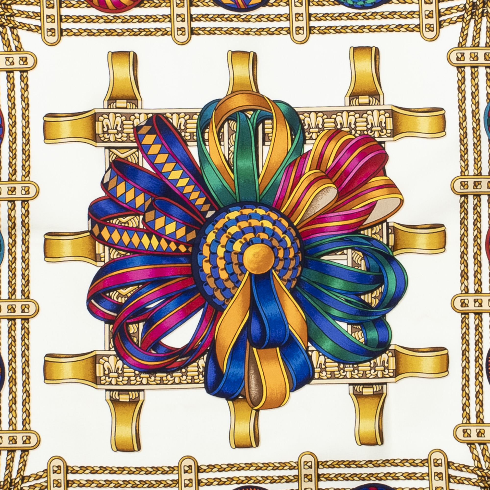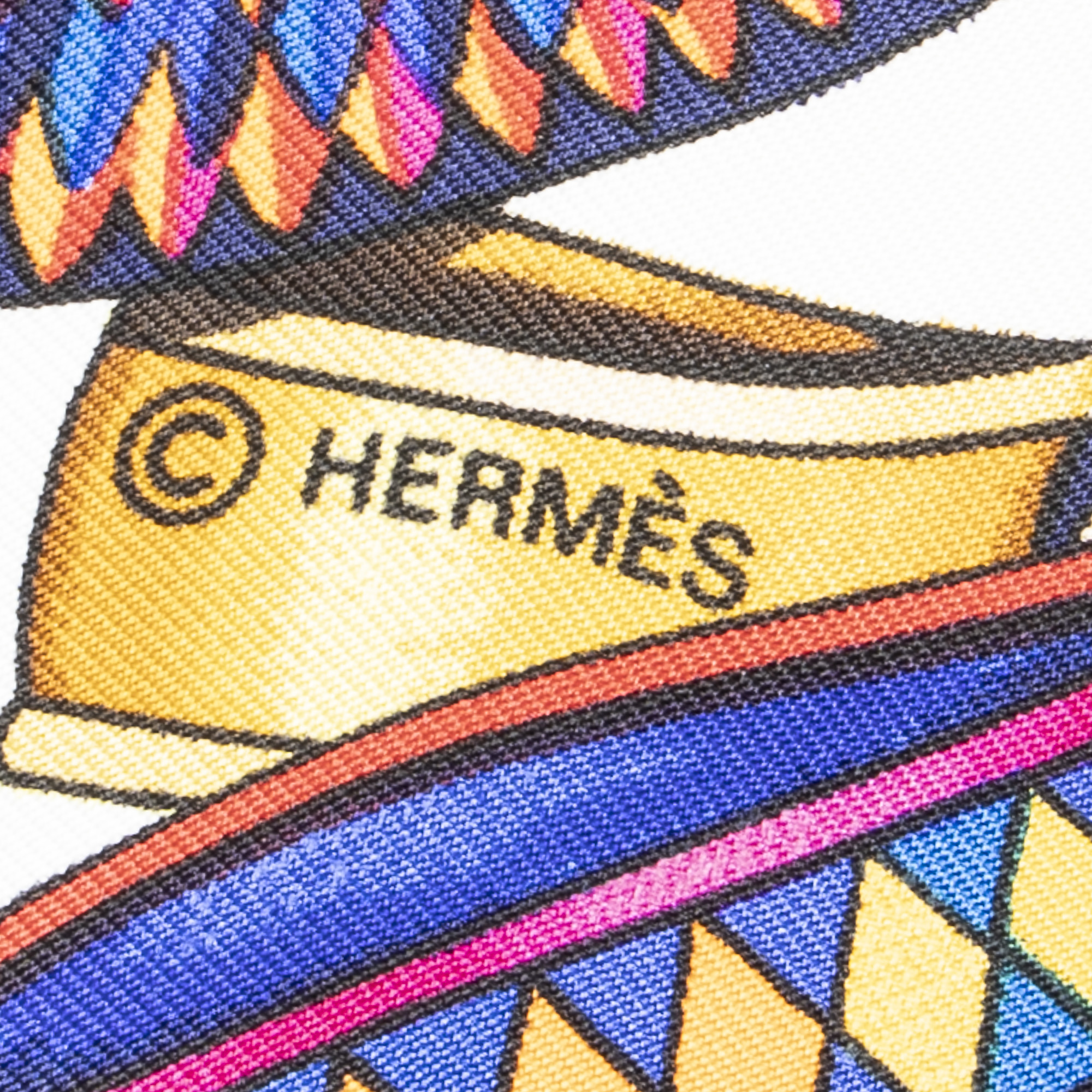 Hermès Scarf Scarf in Ivory/Gold/Fuchsia 100% Twill Silk and None hardware. The product is in Perfect Condition (AA).