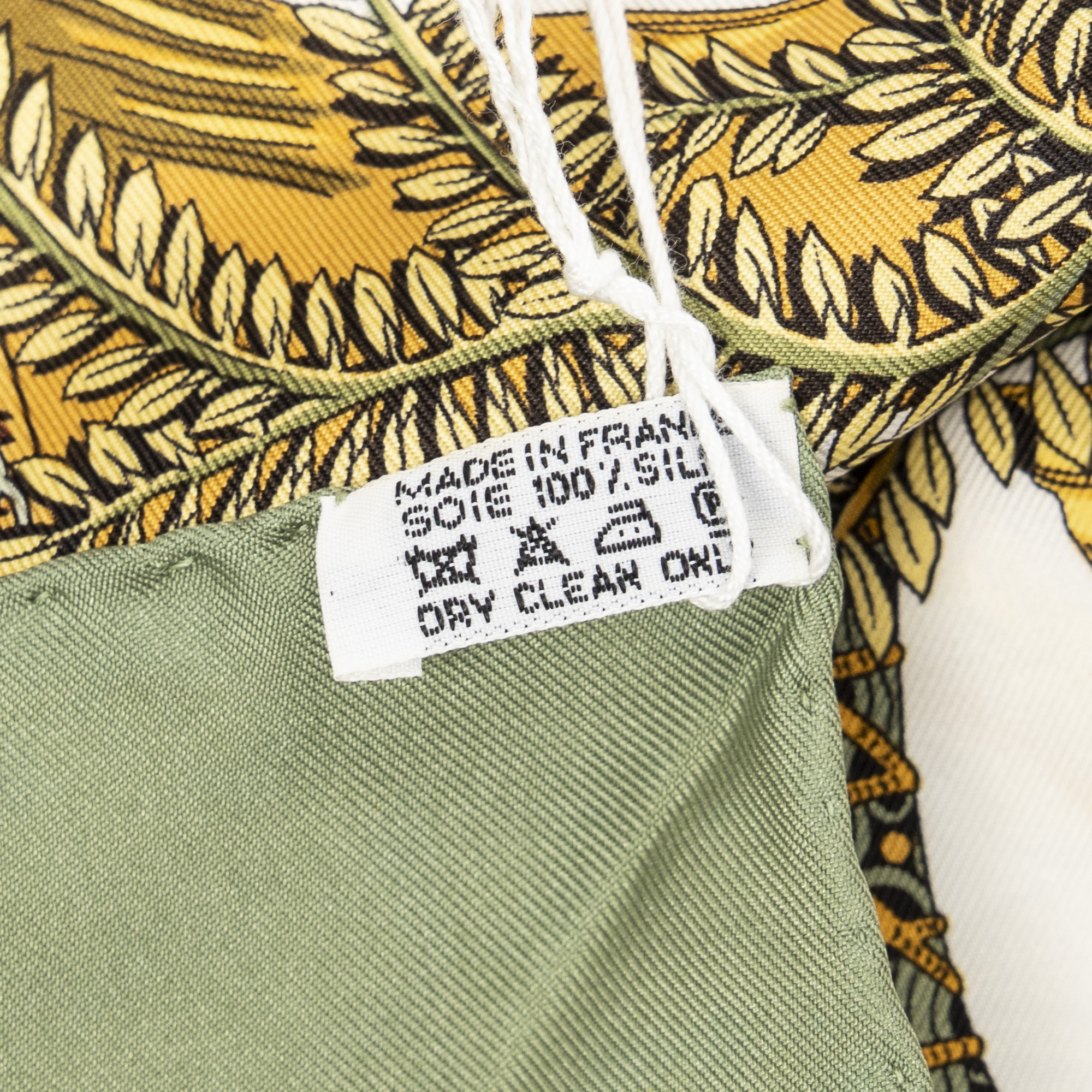 Hermès Scarf Scarf in Green/Ivory/Gold 100% Twill Silk and None hardware. The product is in Perfect Condition (AA).