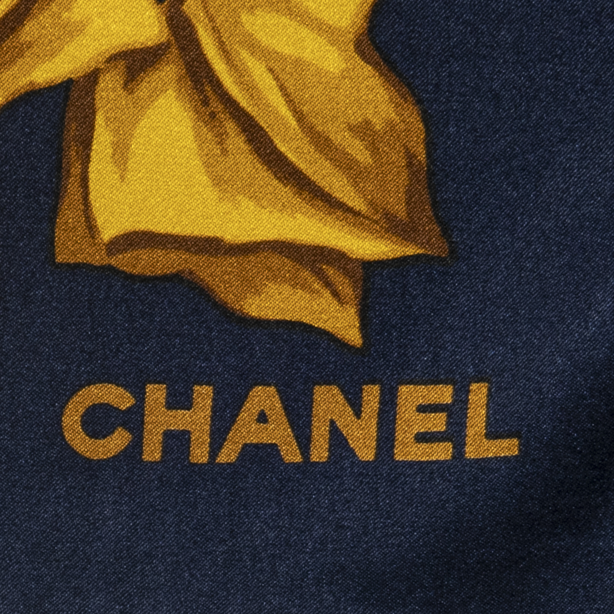 Chanel Scarf Scarf in Navy/Gold 100% Silk and hardware. The product is in Excellent Condition (A).