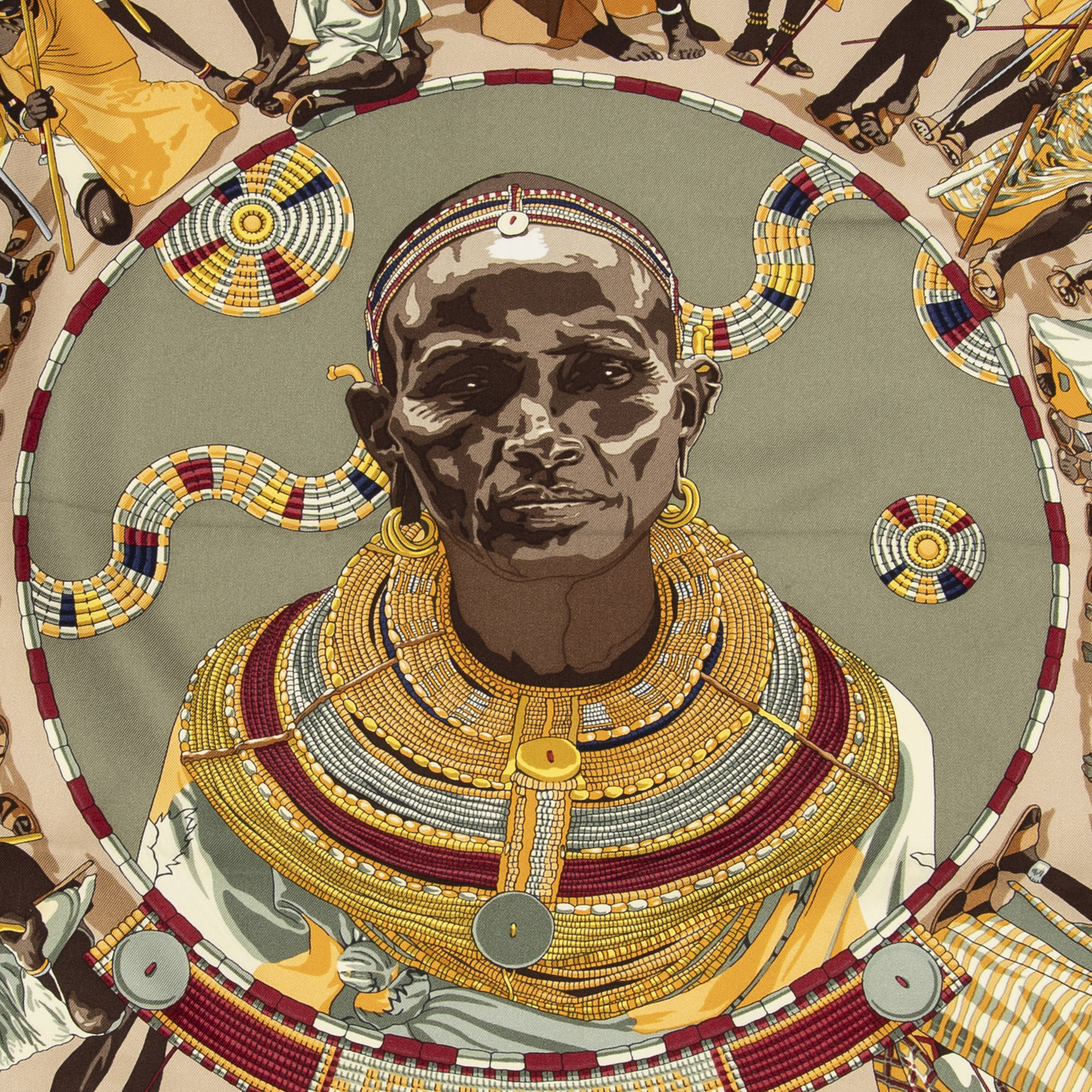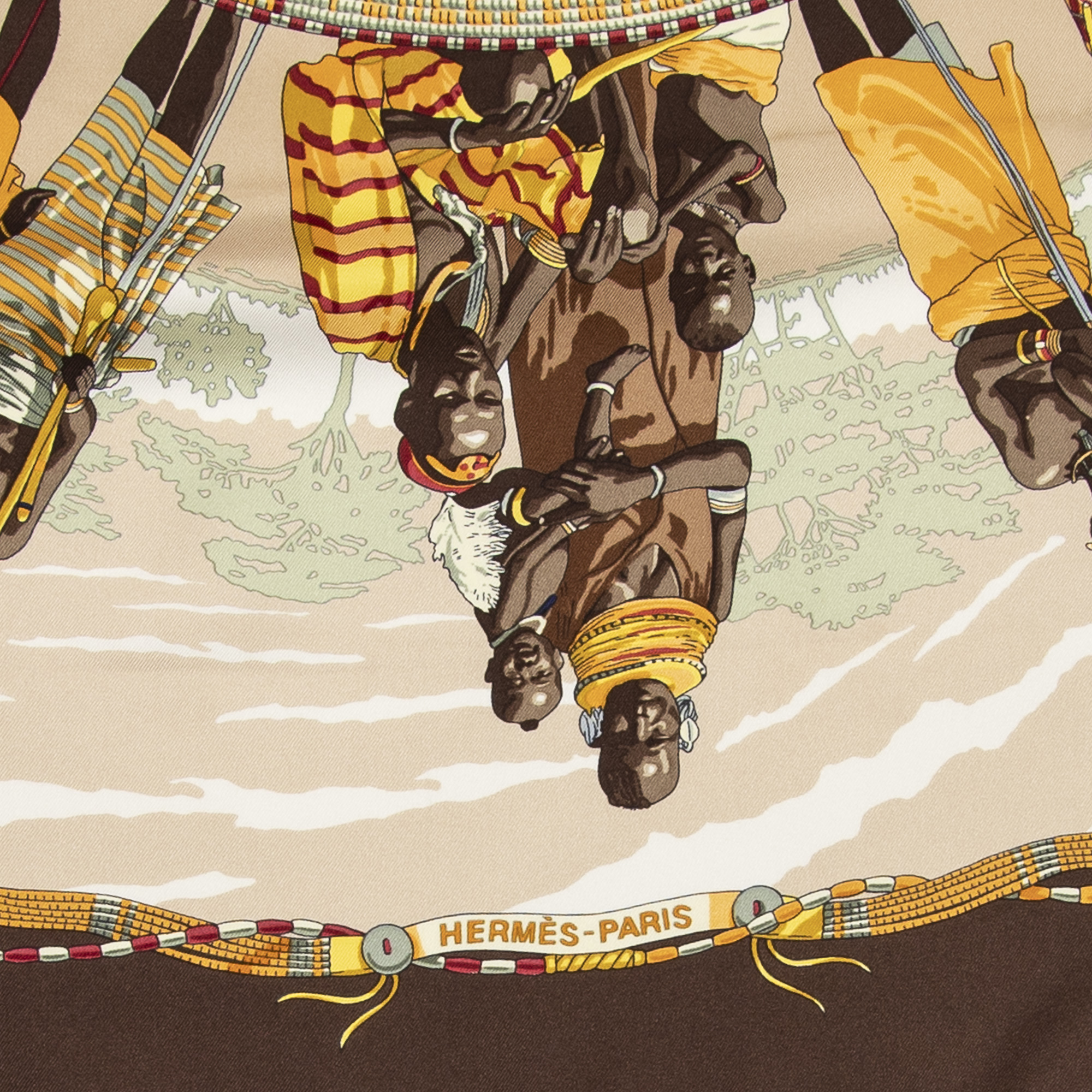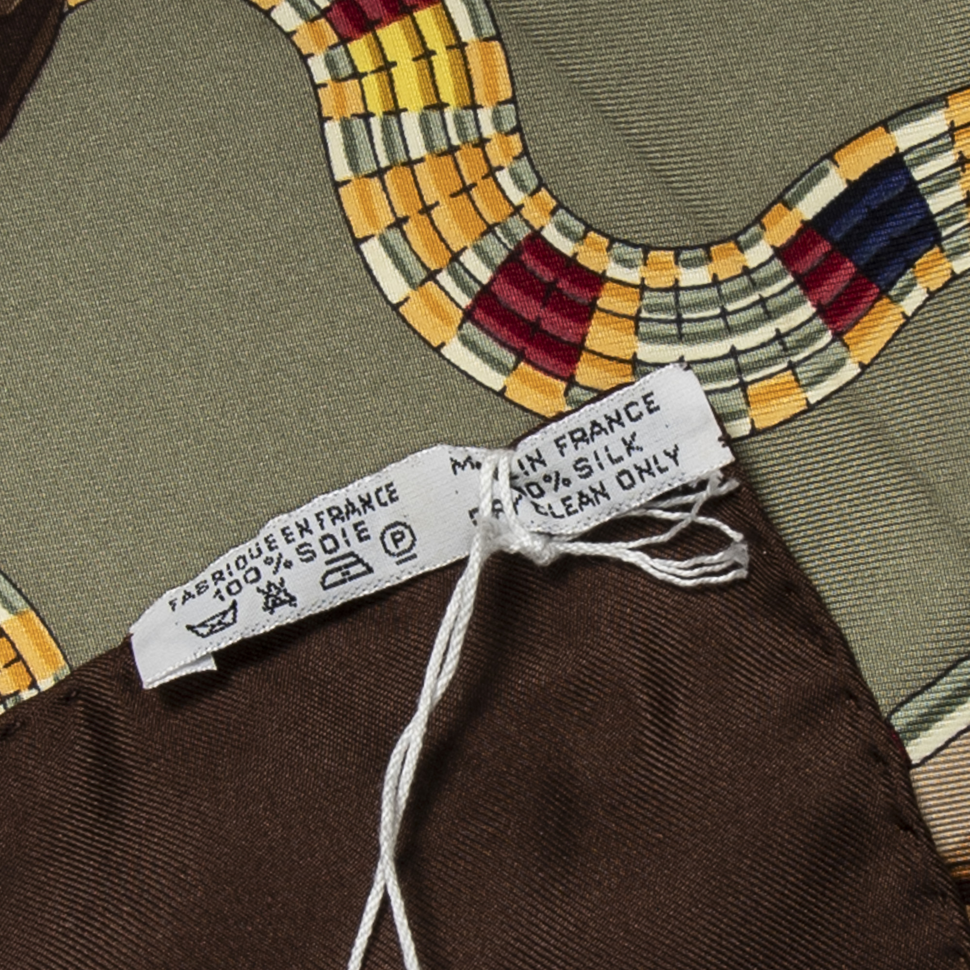 Hermès Scarf Scarf in Brown/Beige 100% Twill Silk and hardware. The product is in Perfect Condition (AA).