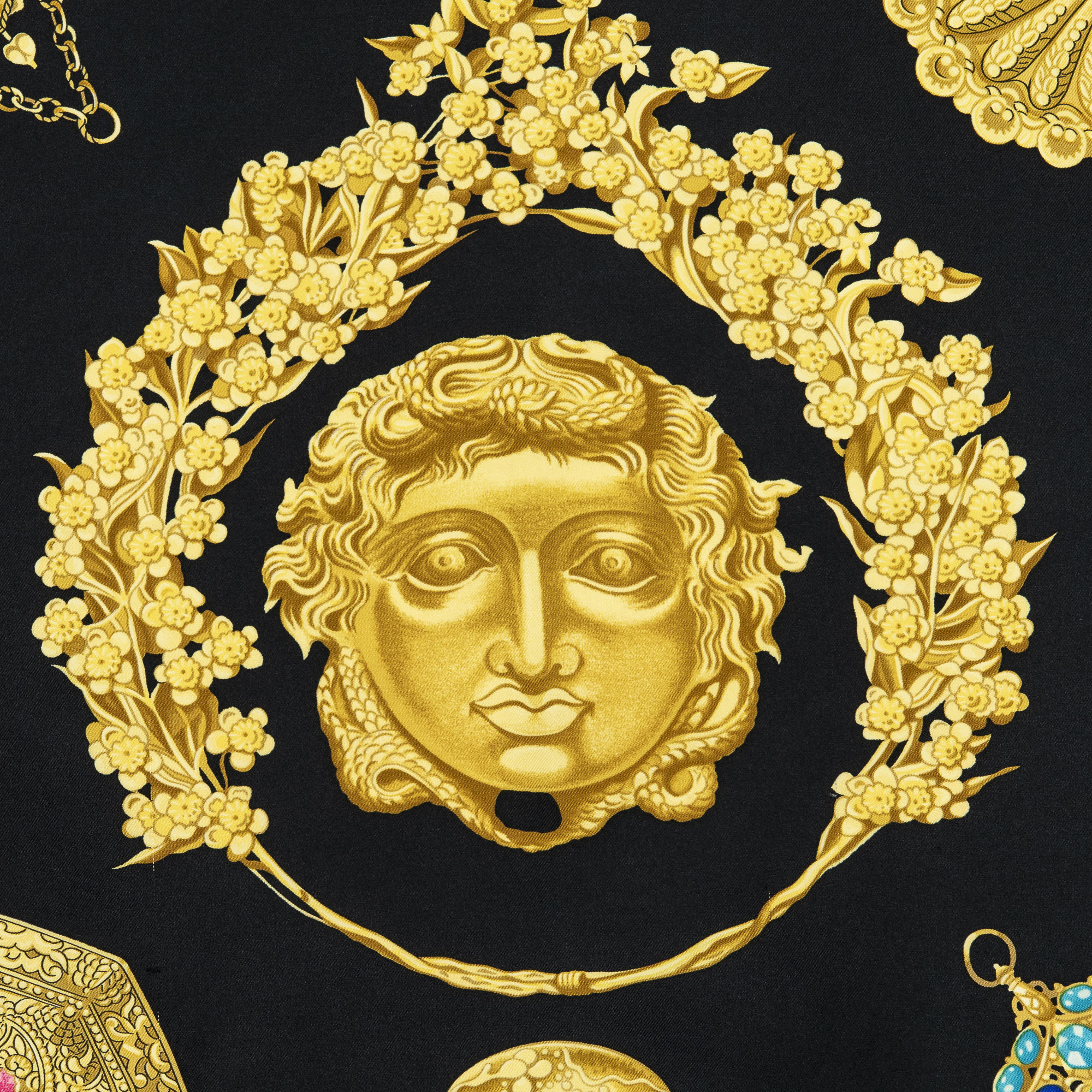 Hermès Scarf Scarf in Black/Gold 100% Twill Silk and None hardware. The product is in Excellent Condition (A).