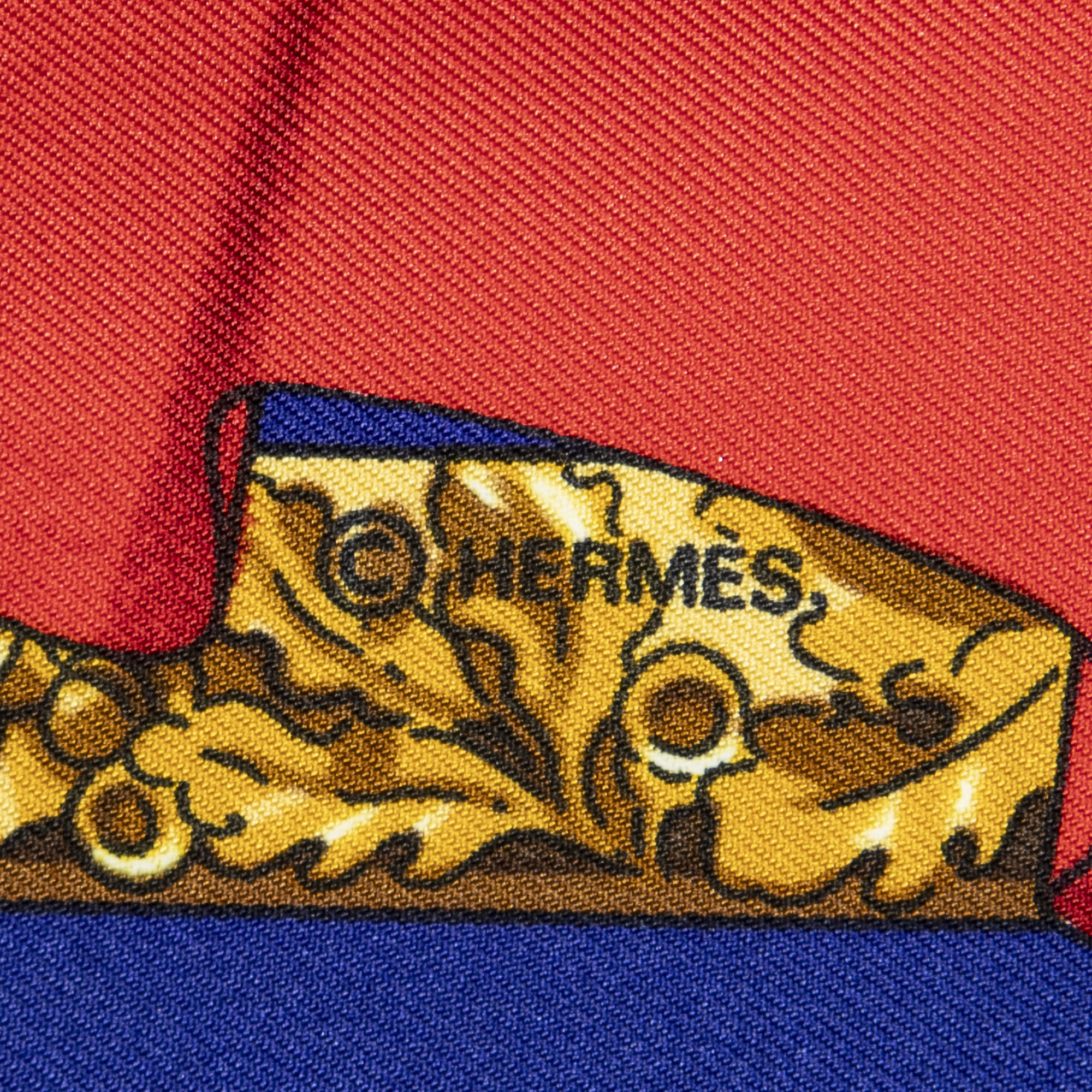 Hermès Scarf Scarf in Blue/Red/Beige 100% Twill Silk and None hardware. The product is in Perfect Condition (AA).