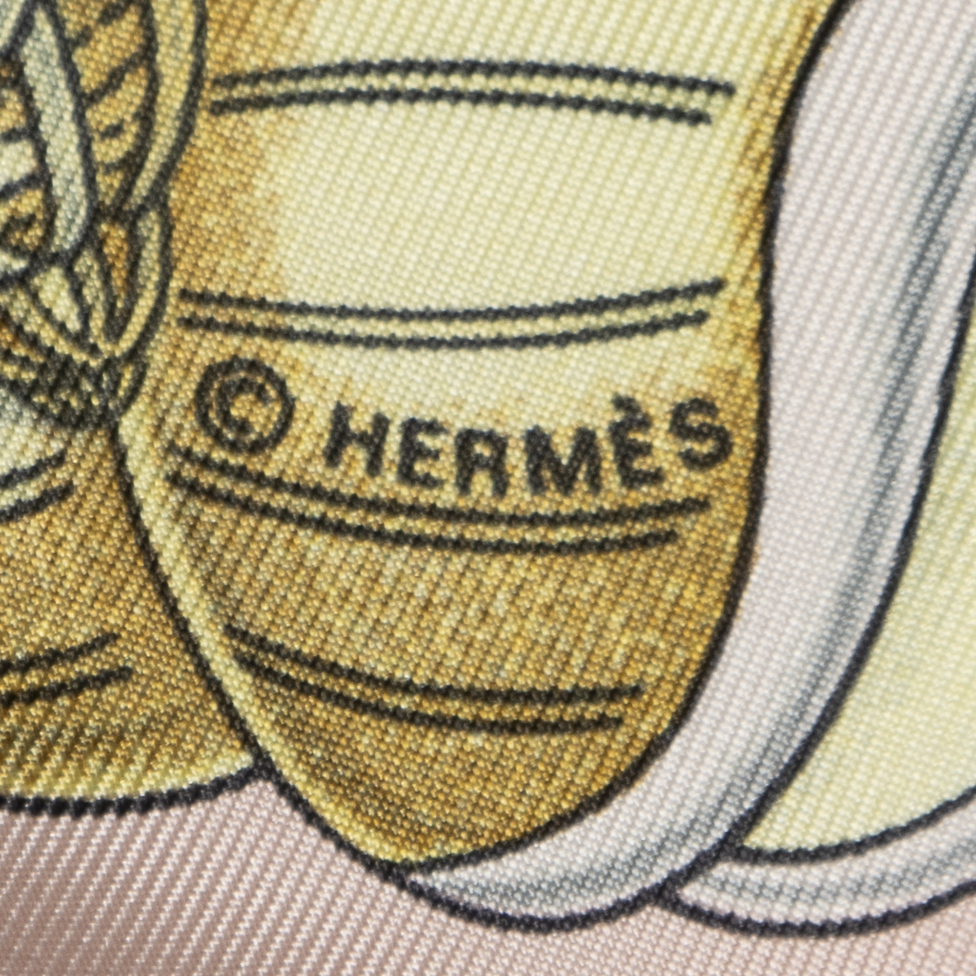 Hermès Scarf Scarf in Light Pink/Green/Gold 100% Twill Silk and None hardware. The product is in Excellent Condition (A).