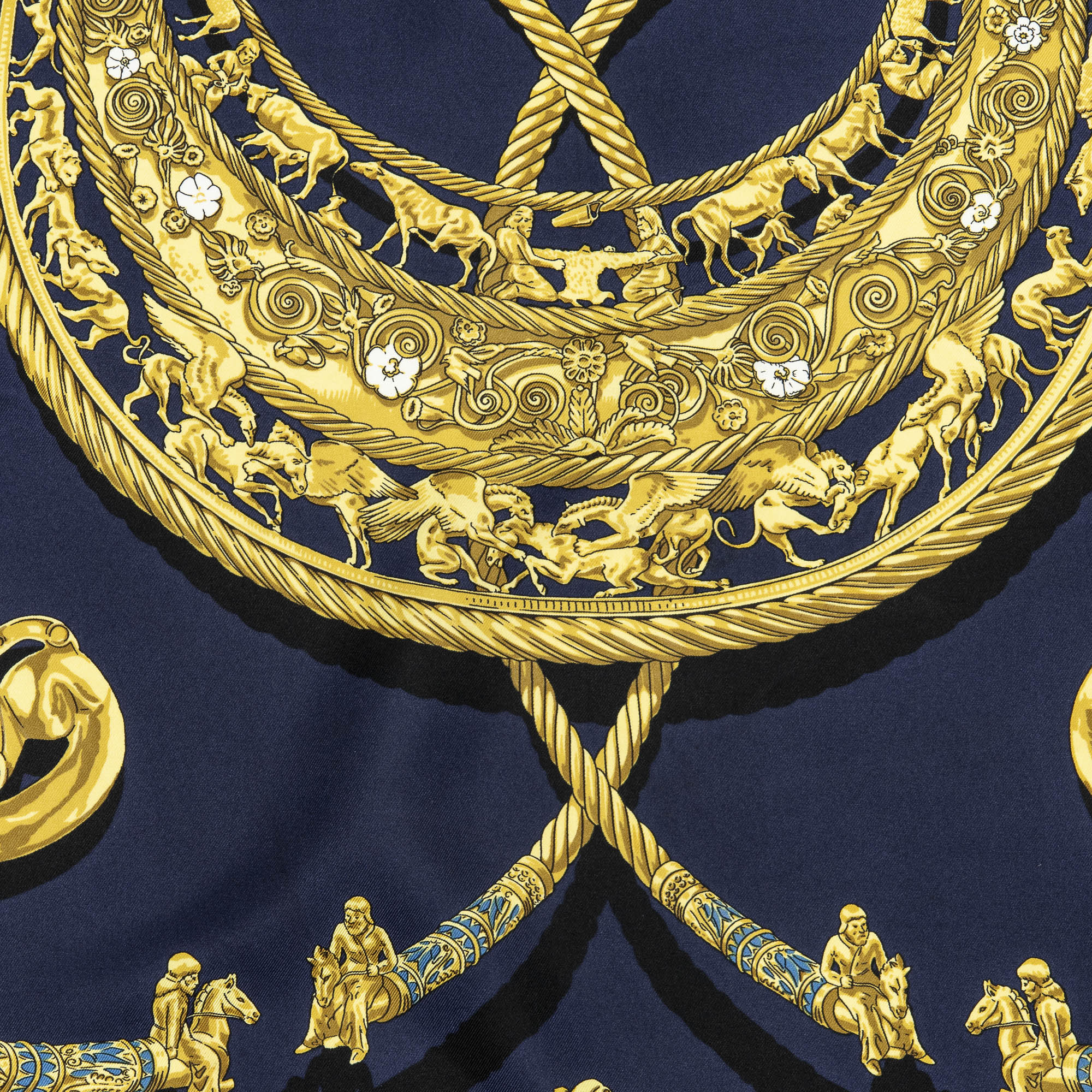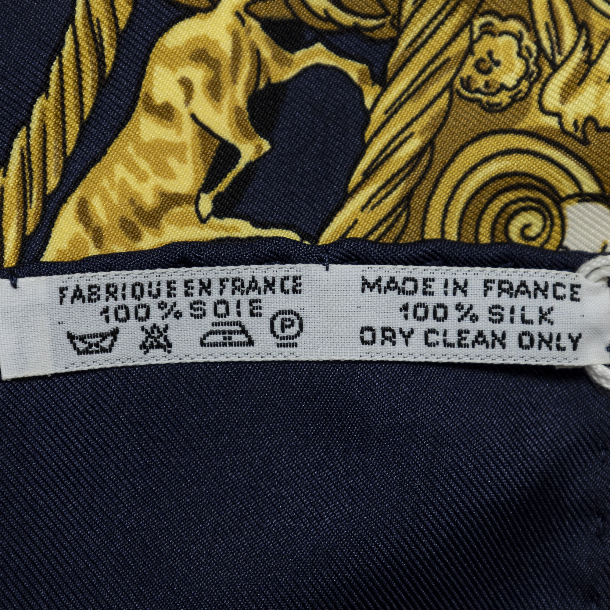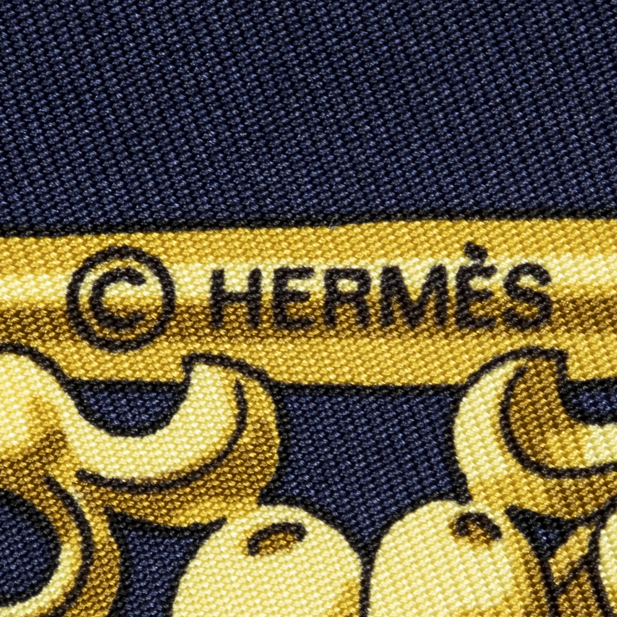 Hermès Scarf Scarf in Navy/Gold 100% Twill Silk and None hardware. The product is in Excellent Condition (A).