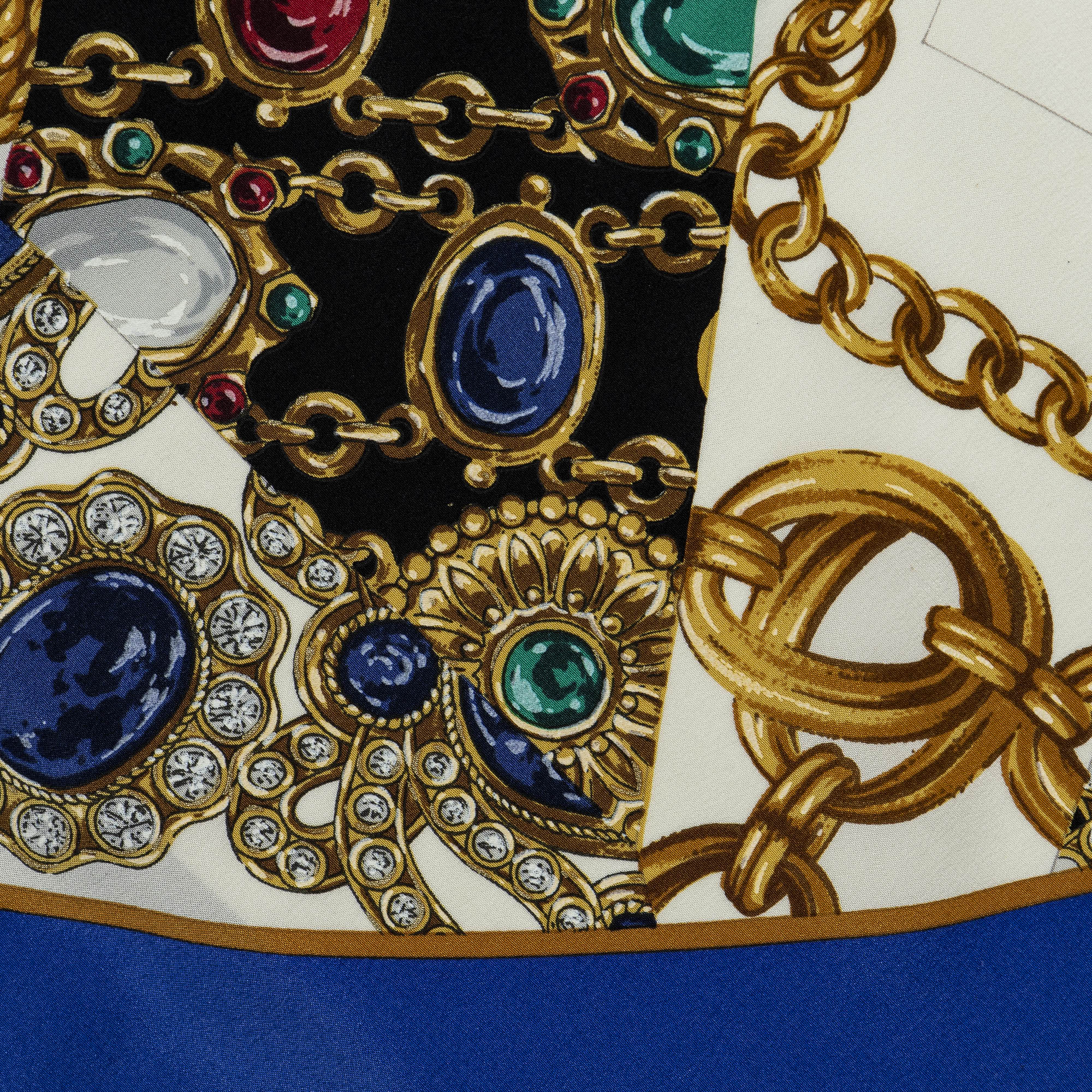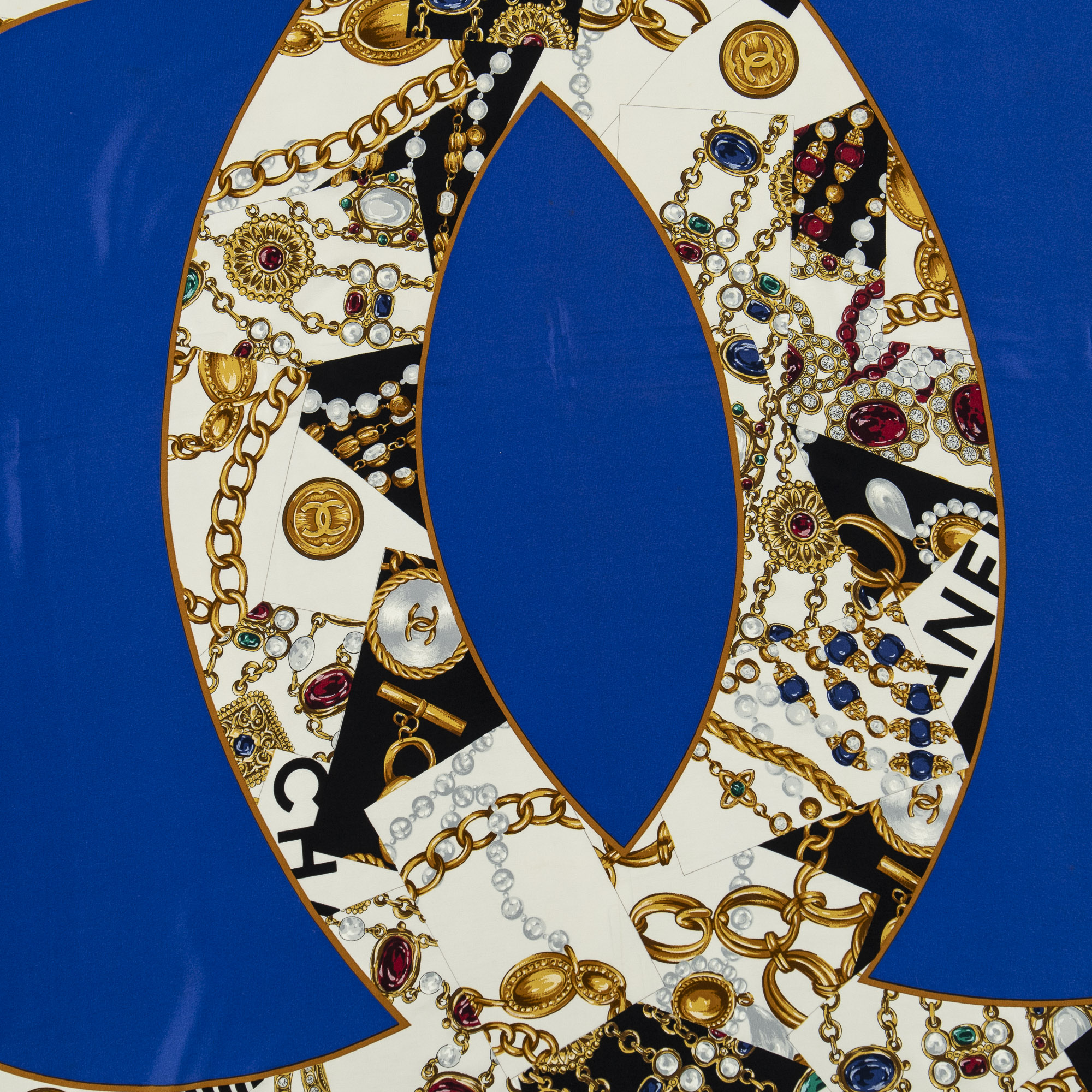 Chanel Scarf Scarf in Blue/Gold/Ivory 100% Silk and hardware. The product is in Excellent Condition (A).