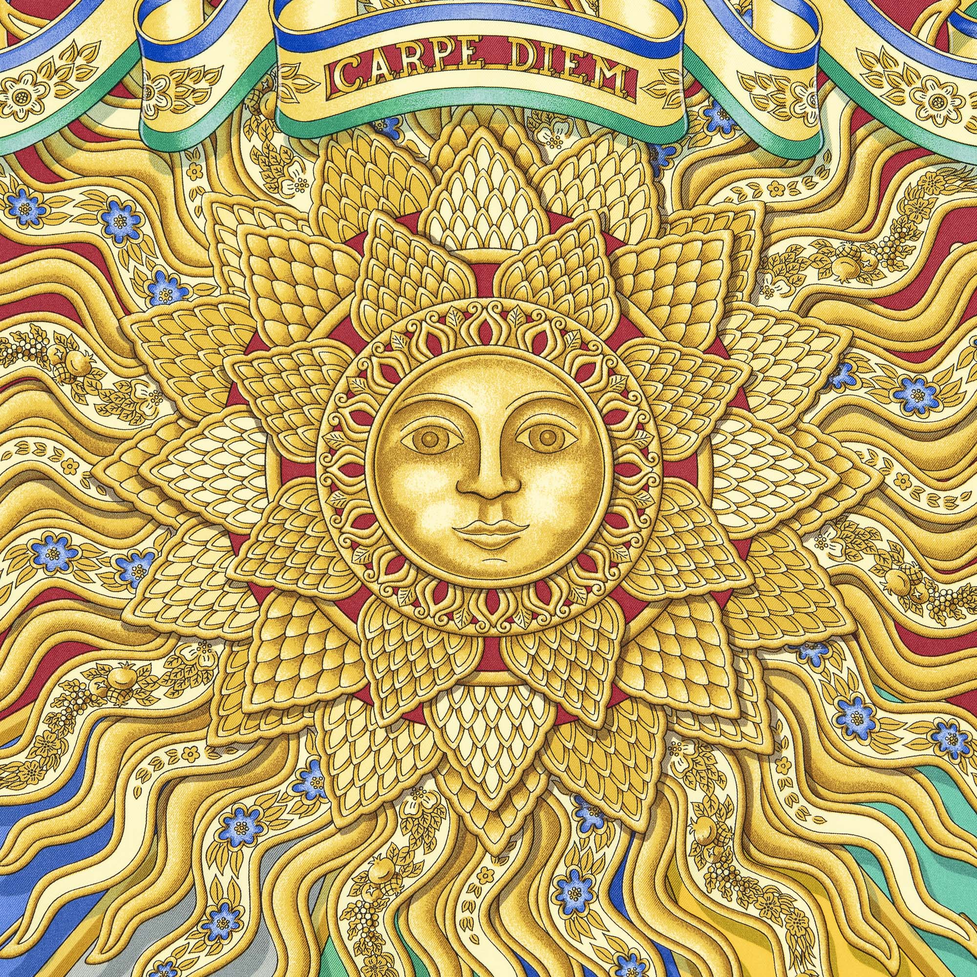Hermès Scarf Scarf in Gold/Red/Blue 100% Twill Silk and None hardware. The product is in Perfect Condition (AA).