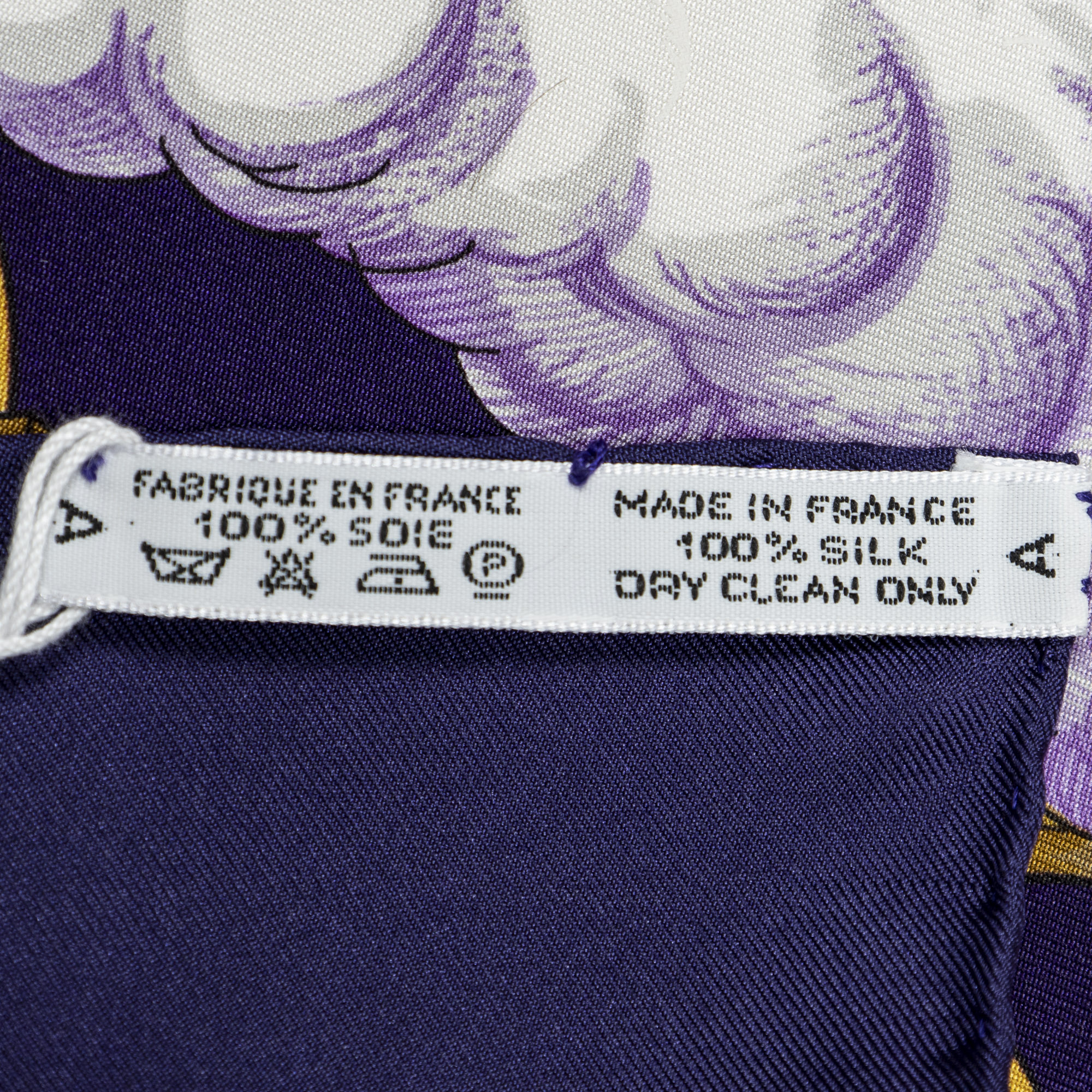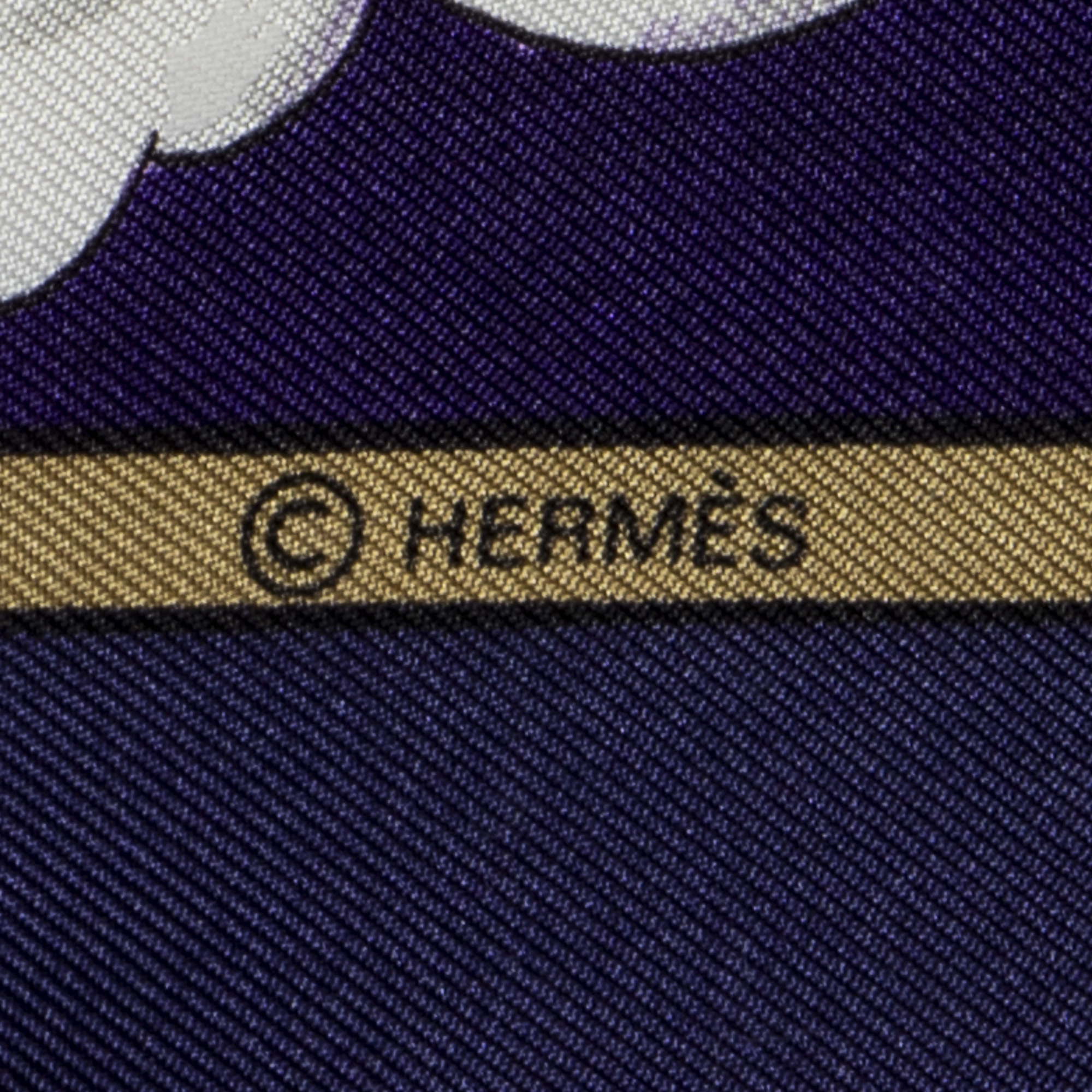 Hermès Scarf Scarf in Navy/Purple/Gold 100% Twill Silk and None hardware. The product is in Perfect Condition (AA).