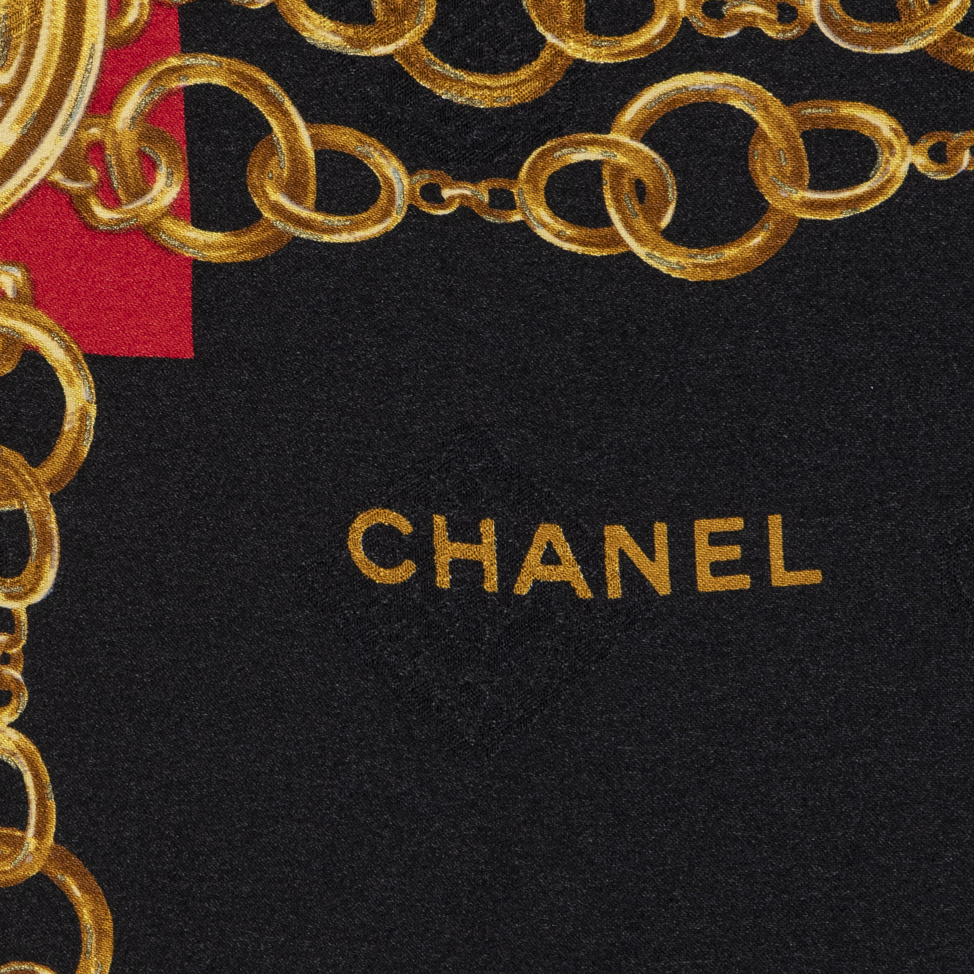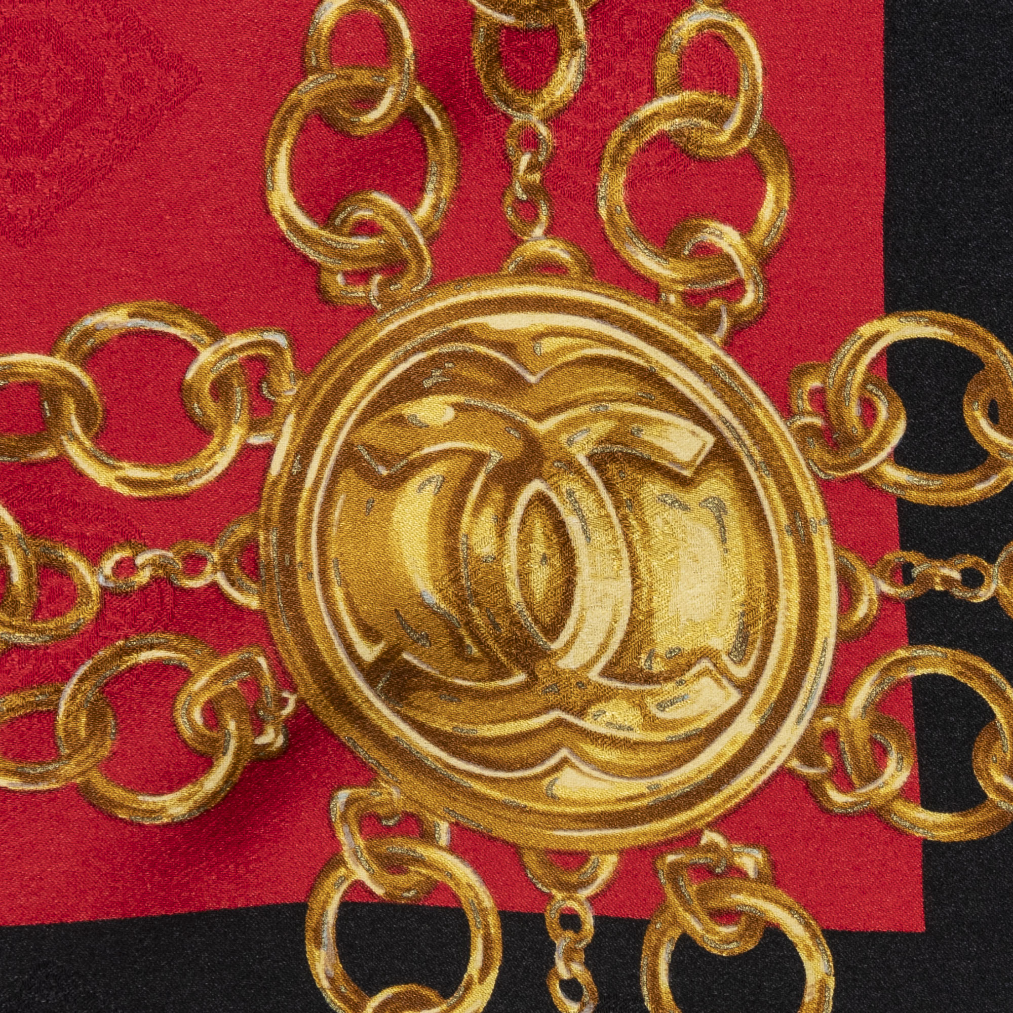 Chanel Scarf Scarf in Black/Red/Gold 100% Jacquard Silk and None hardware. The product is in Perfect Condition (AA).