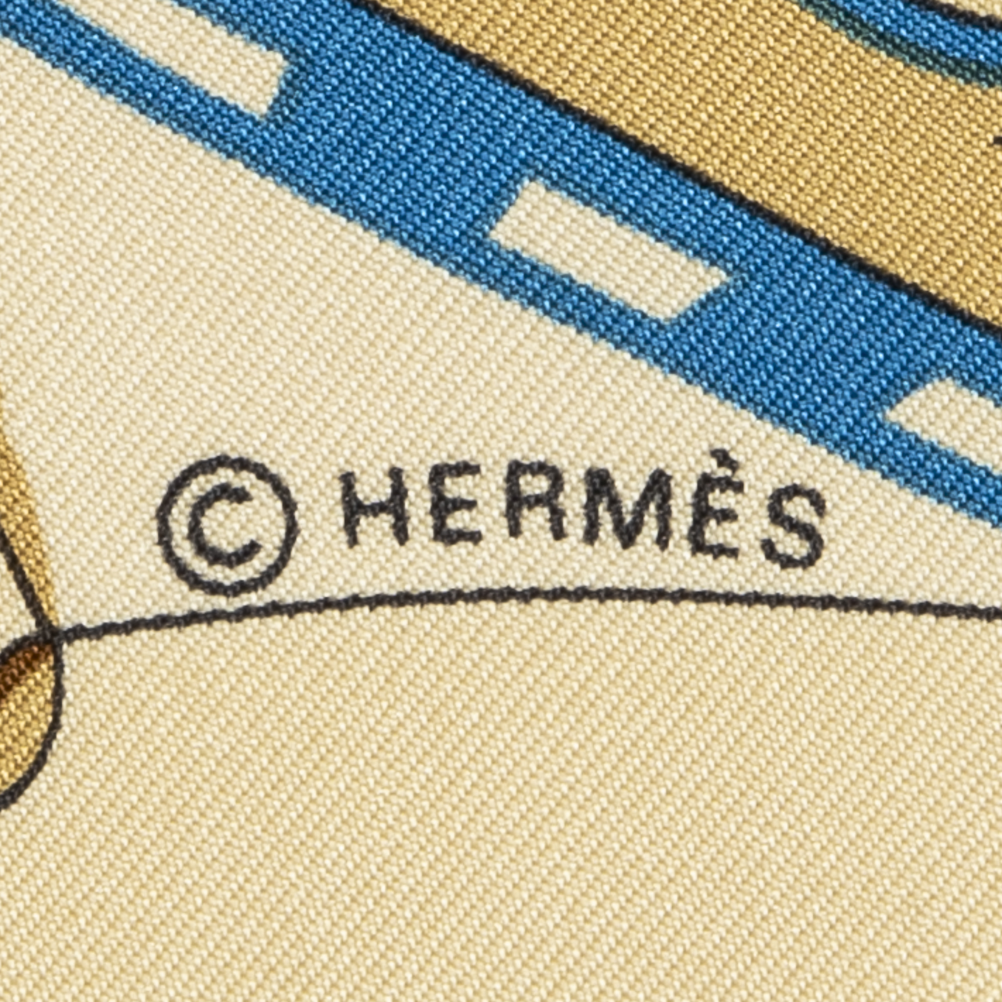 Hermès Scarf Scarf in Beige/Blue/Brown 100% Twill Silk and None hardware. The product is in Perfect Condition (AA).