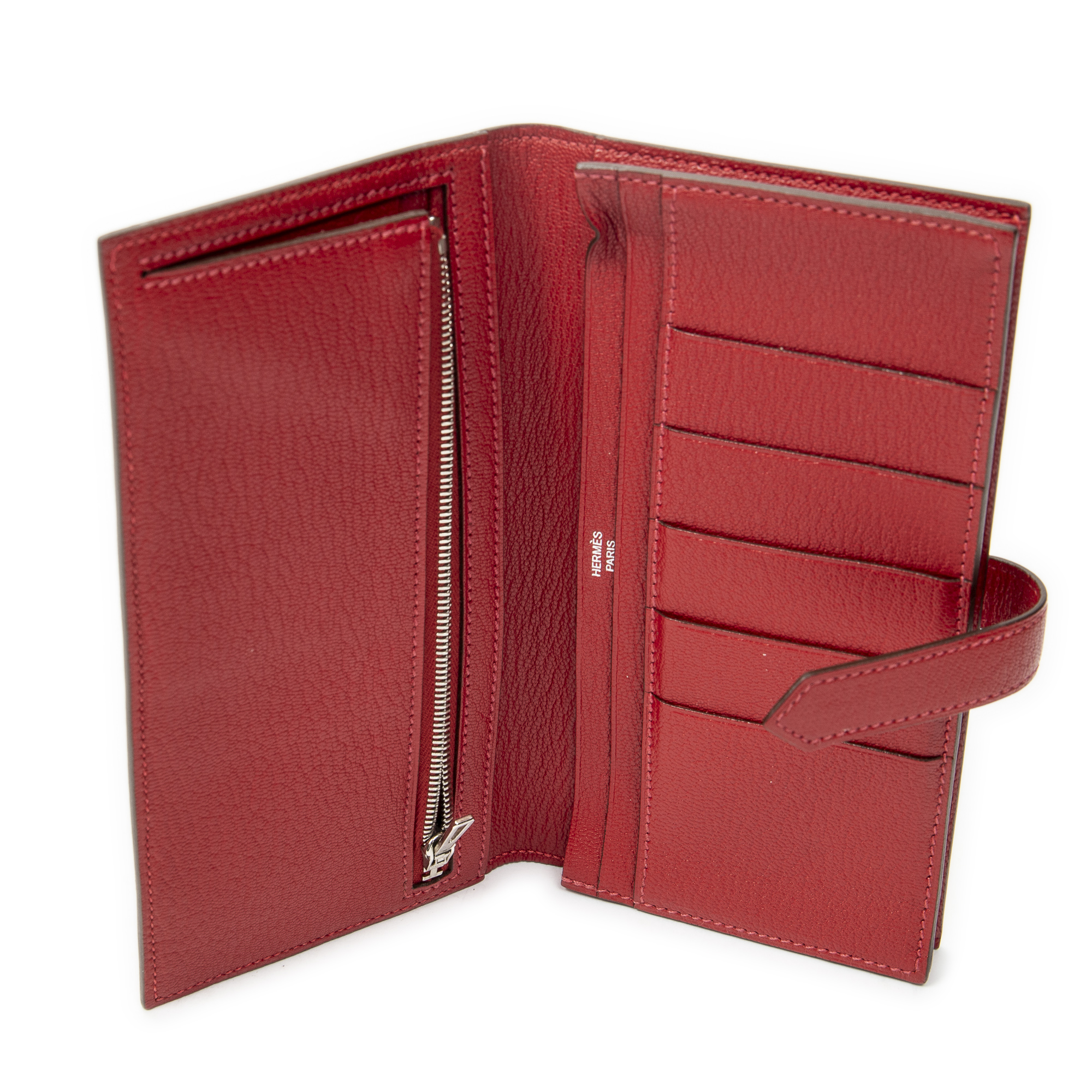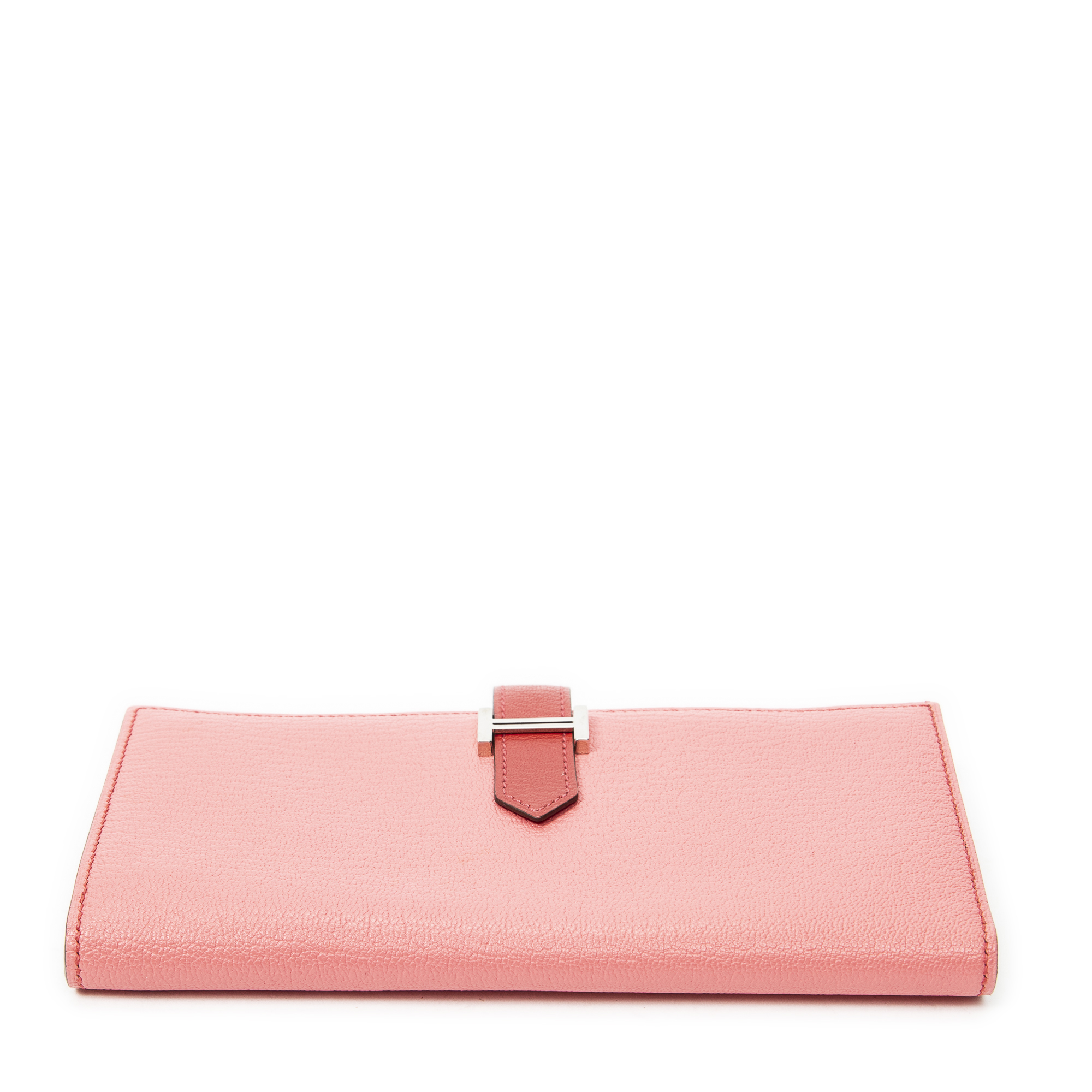 Hermès Wallet Bearn Wallet in Pink/Red Chevre Mysore Leather and Palladium hardware. The product is in Perfect Condition (AA).