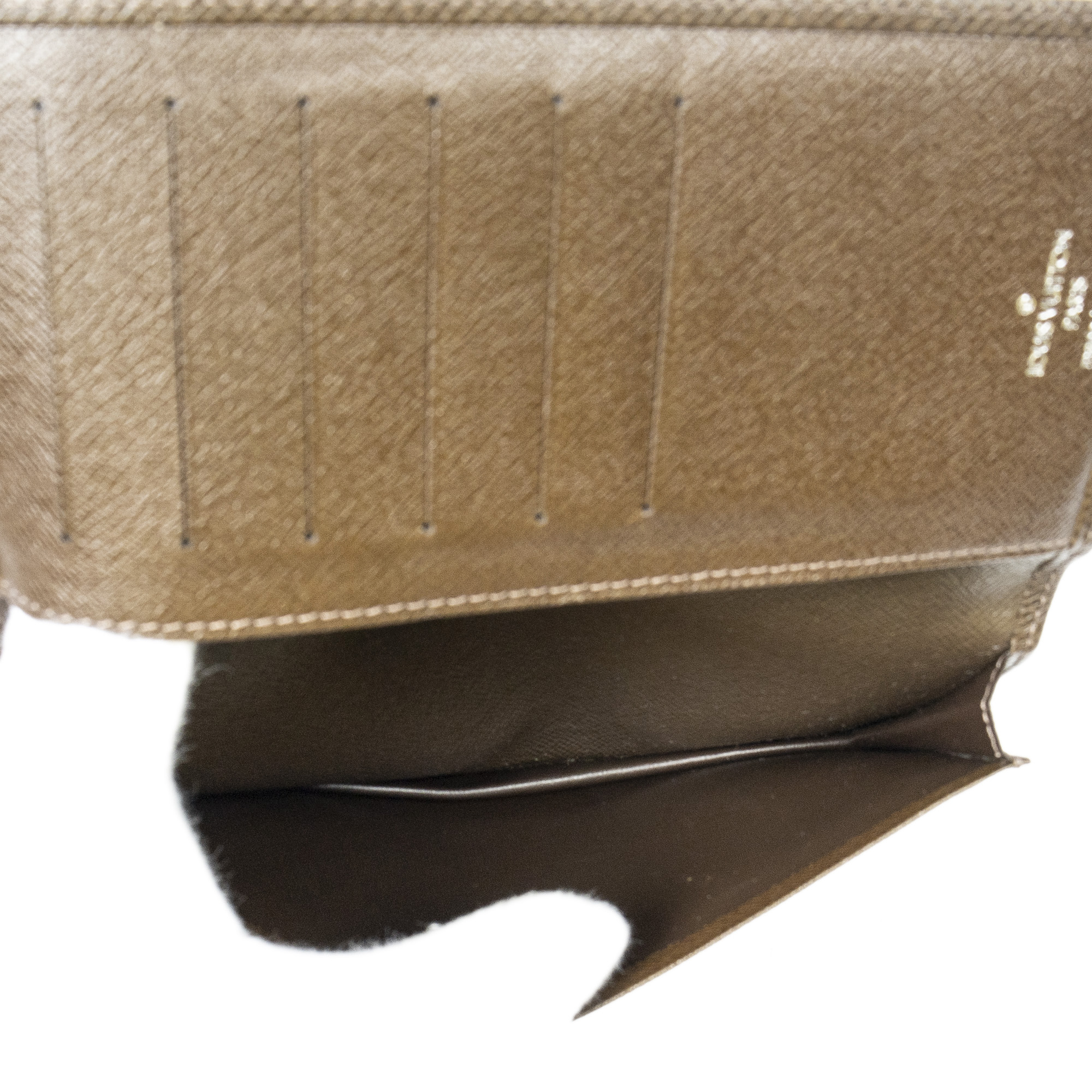 Louis Vuitton Wallet Bifold Long Card Holder 6 Slots in Brown Taiga Leather and None hardware. The product is in Excellent Condition (A).