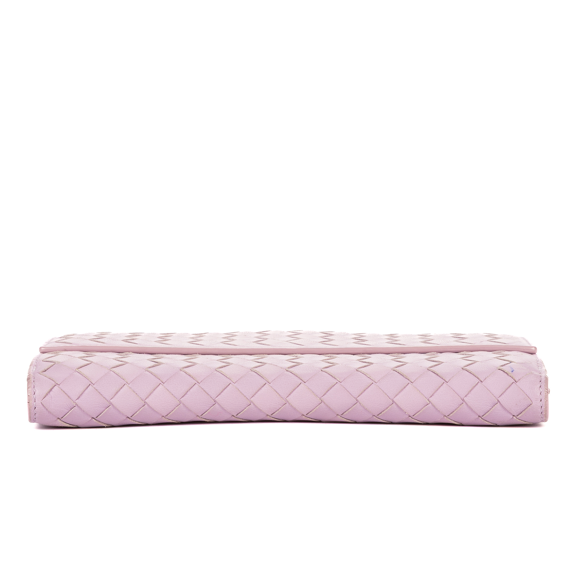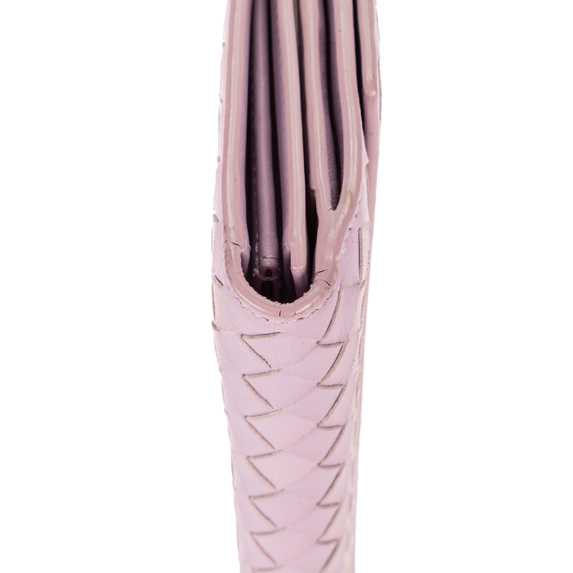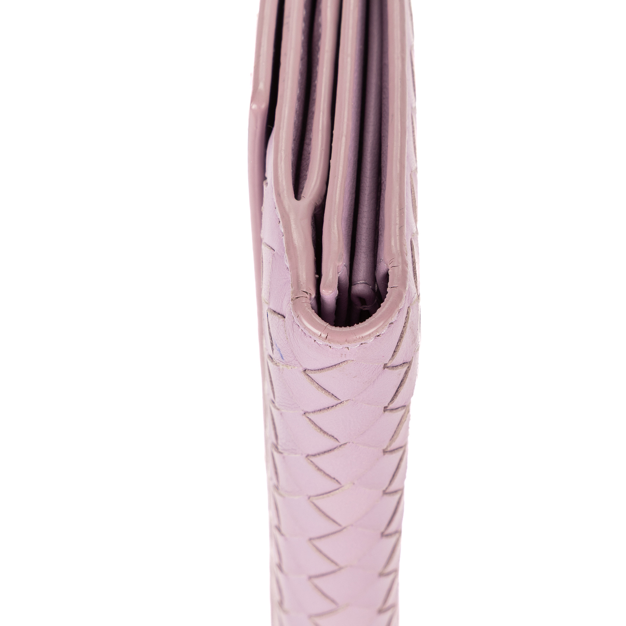 Bottega Veneta Wallet Bifold Wallet in Lilac Intrecciato Nappa Leather and Black Metal hardware. The product is in Excellent Condition (A).