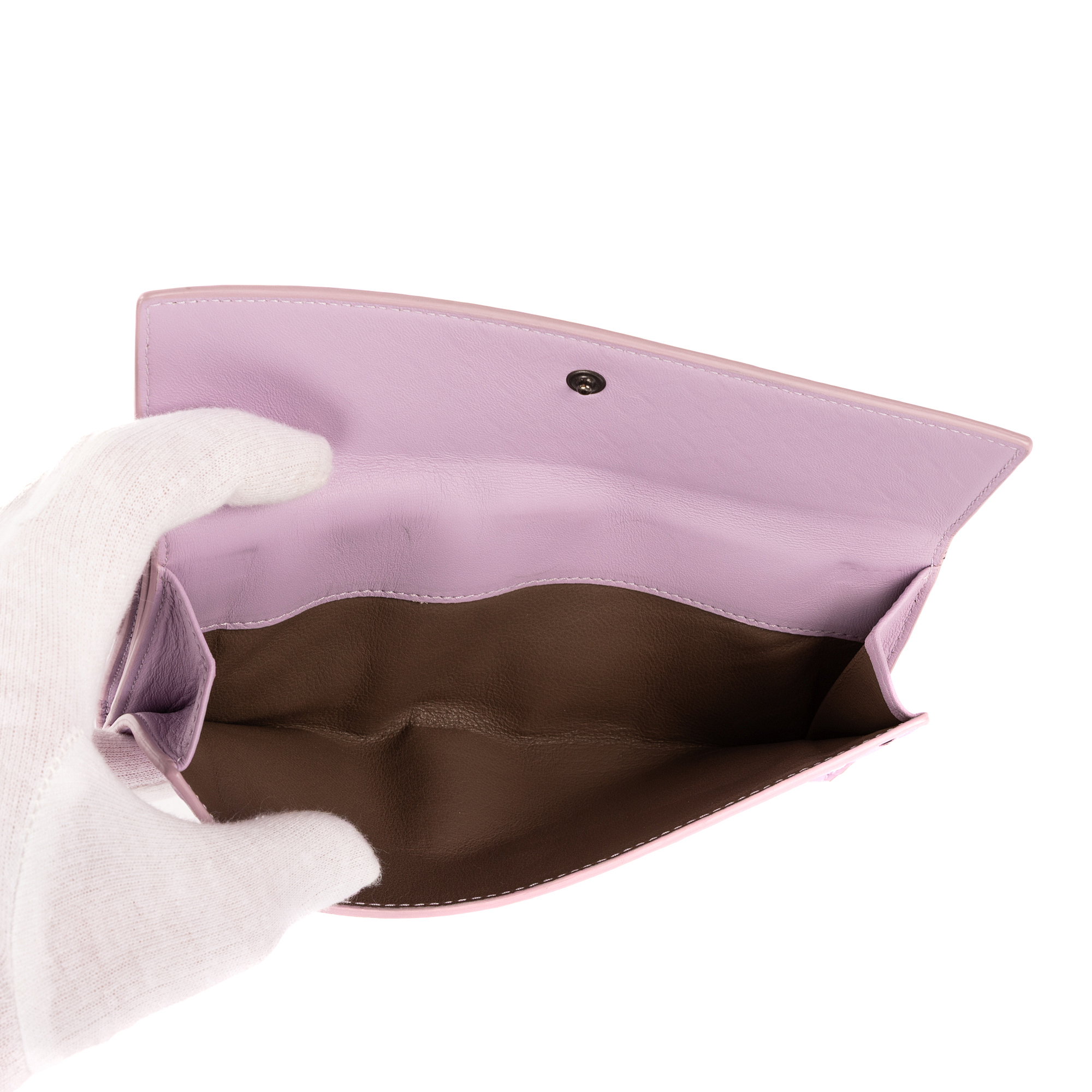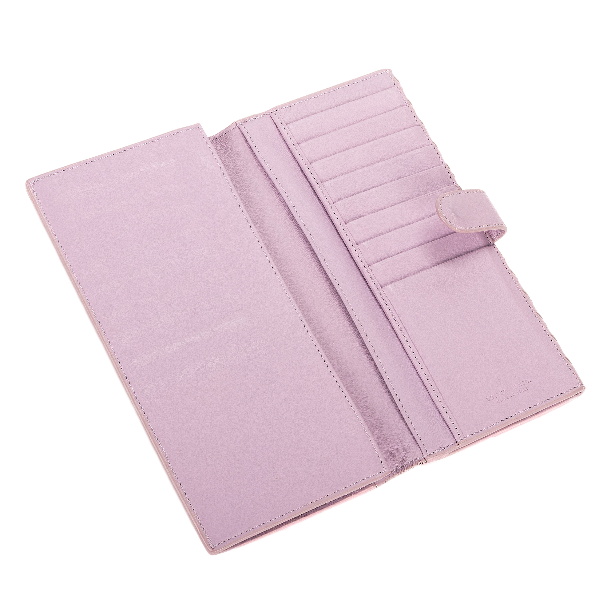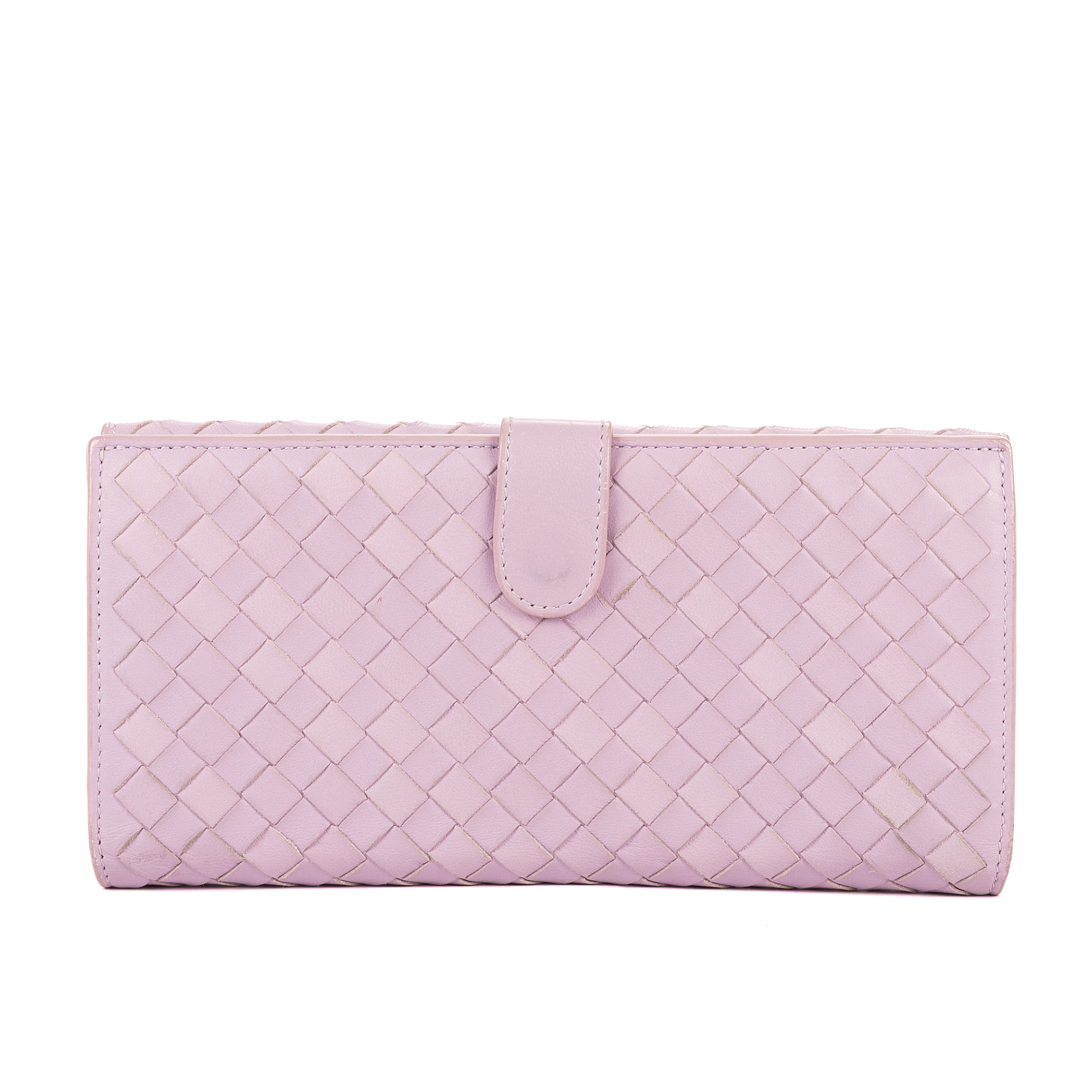 Bottega Veneta Wallet Bifold Wallet in Lilac Intrecciato Nappa Leather and Black Metal hardware. The product is in Excellent Condition (A).