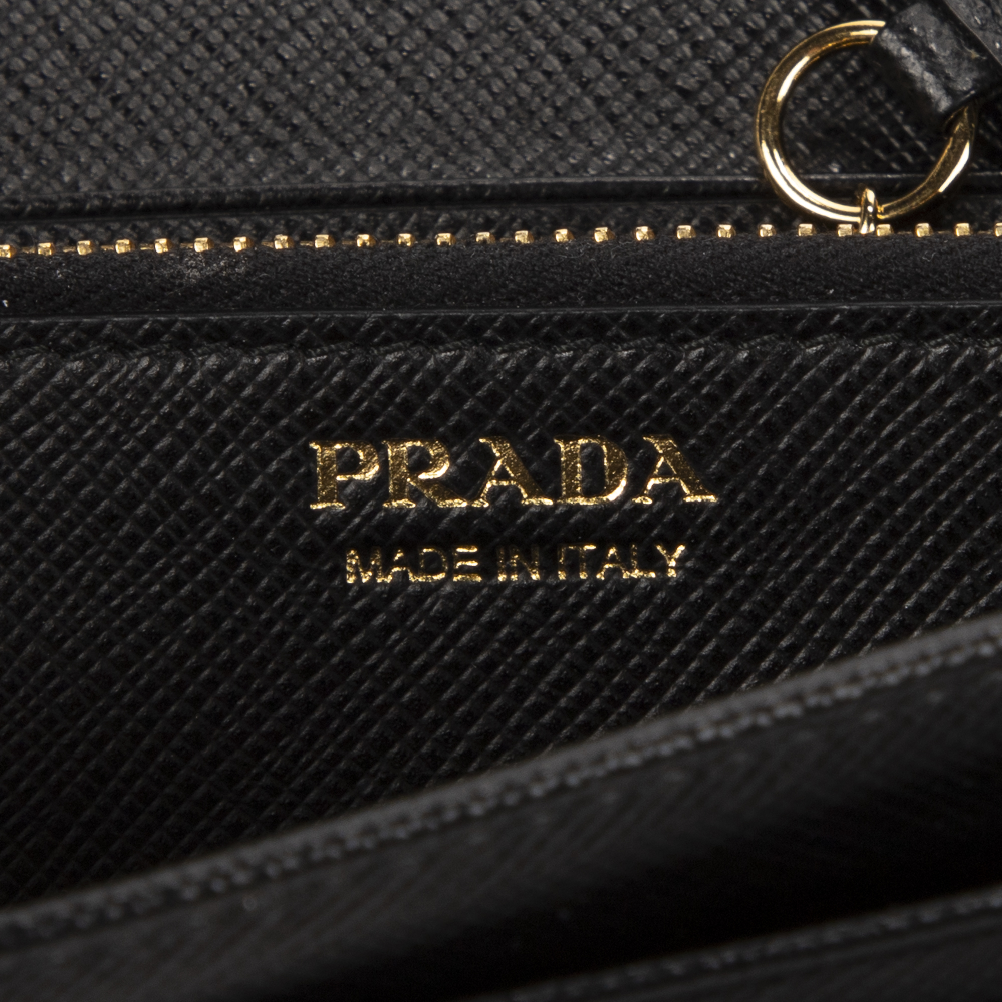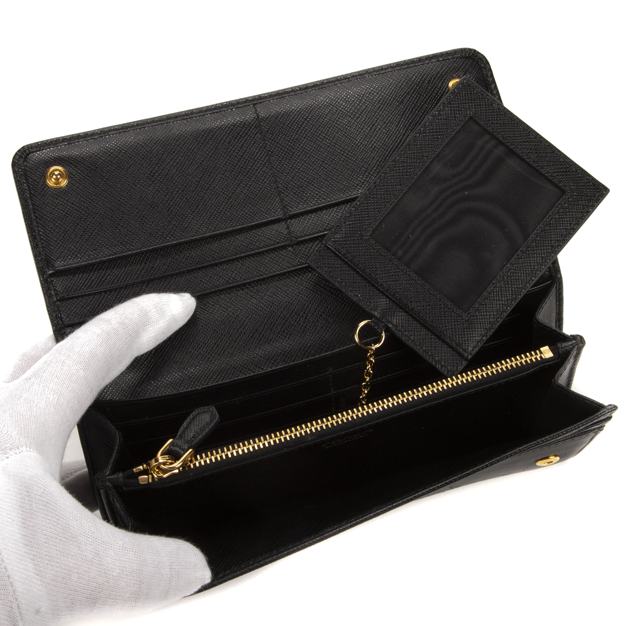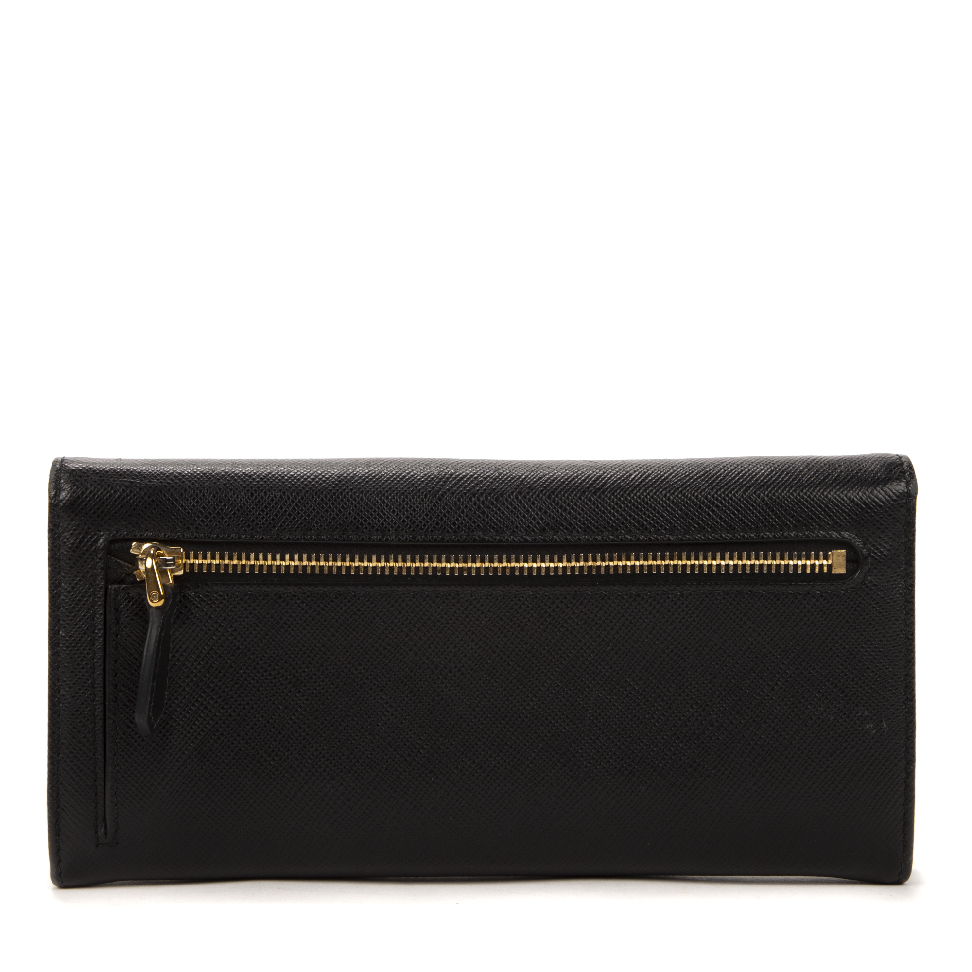 Prada Wallet Bow long wallet in Black Saffiano leather and Gold hardware. The product is in Perfect Condition (AA).