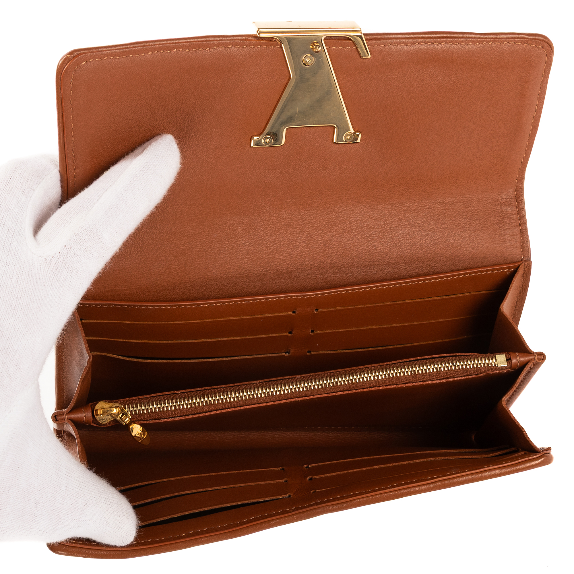 Louis Vuitton Wallet Capucines Long Wallet in Ivory/Brown Canvas and Golden Brass hardware. The product is in Excellent Condition (A).