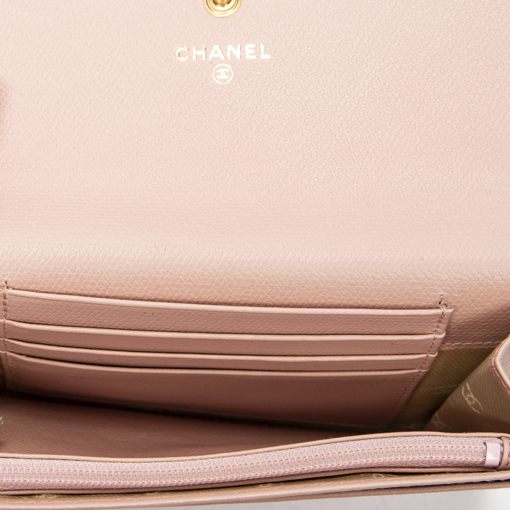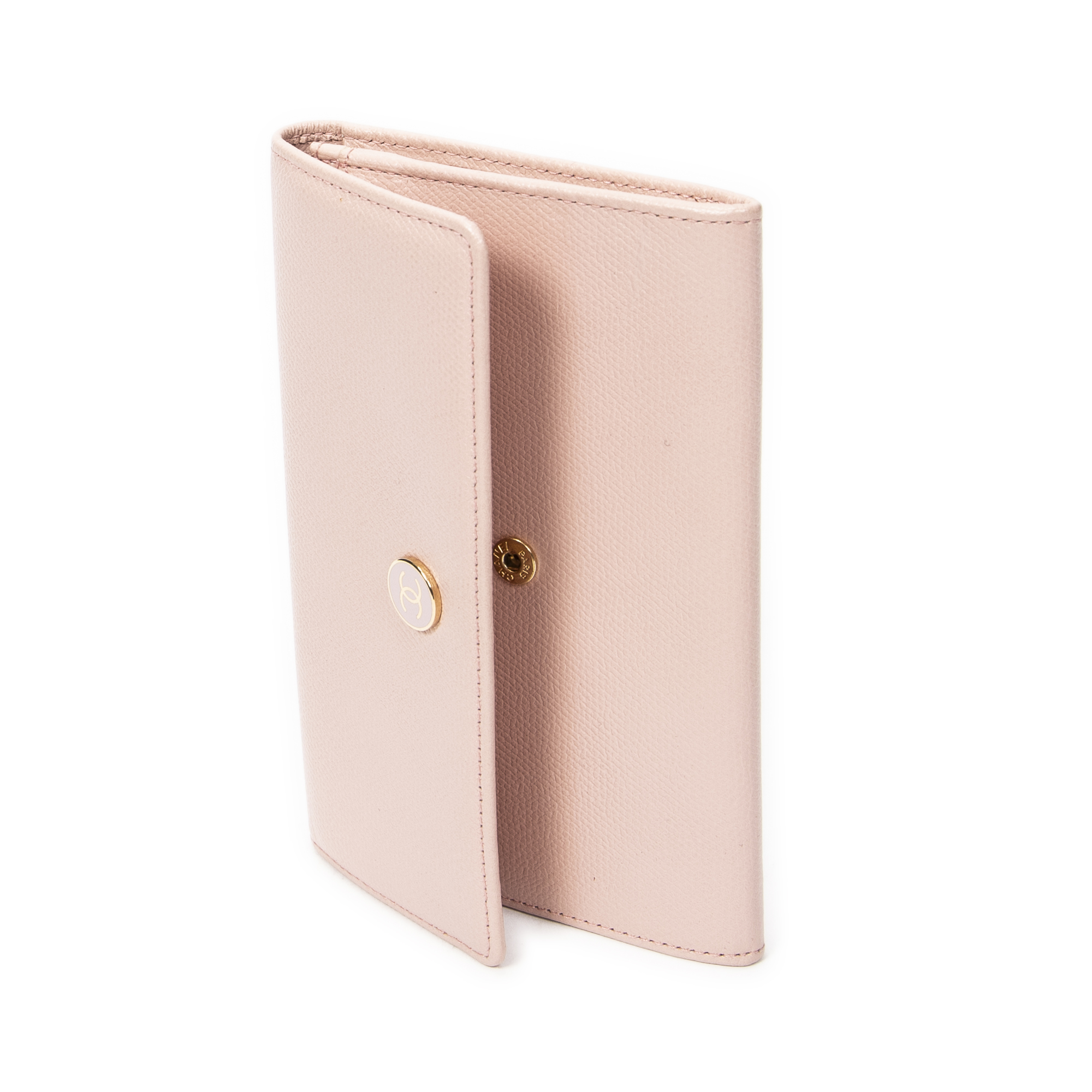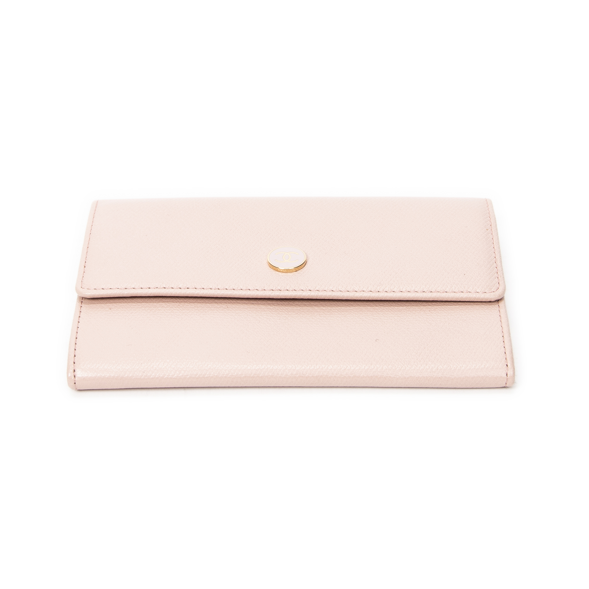 Chanel Wallet CC Button Wallet in Pink Grained Calfskin Leather and Gold hardware. The product is in Excellent Condition (A).