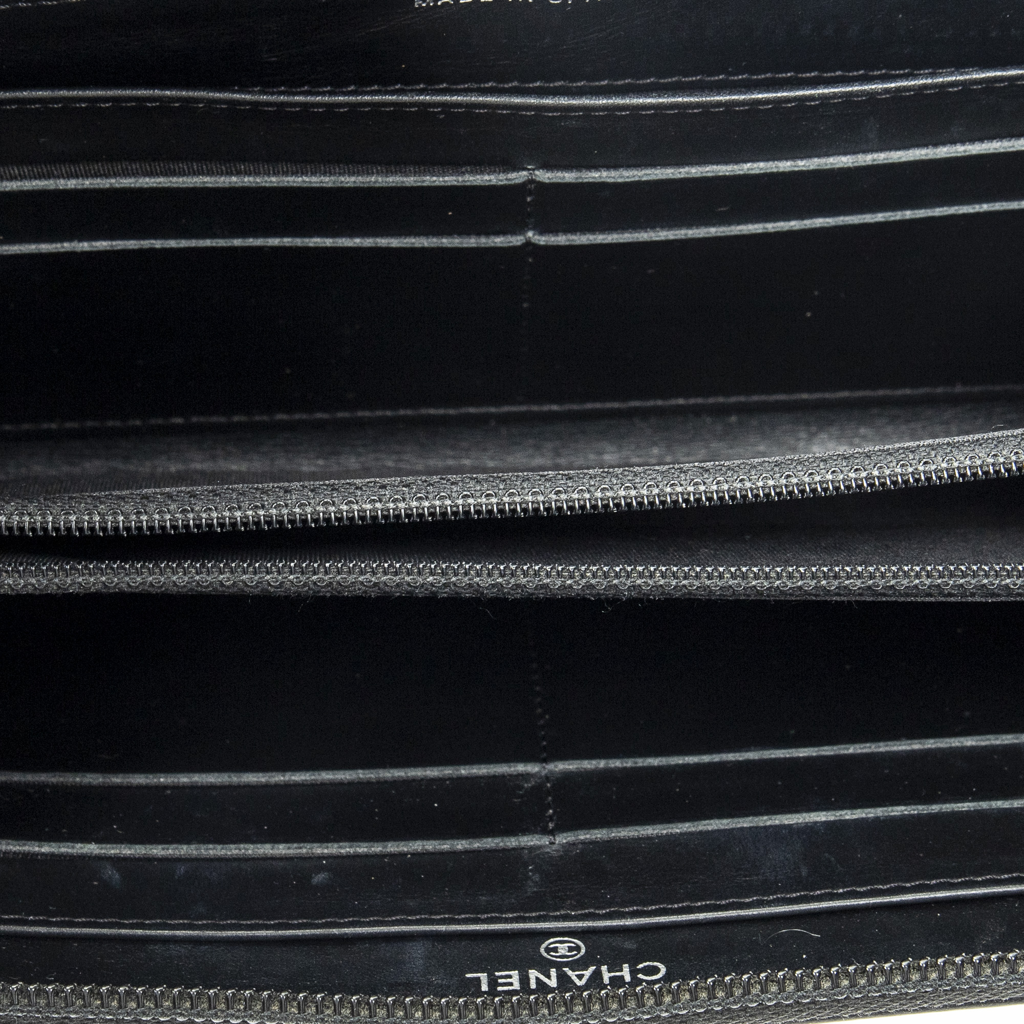 Chanel Wallet CC Zip Around Wallet in Black Calfskin Leather and Silver hardware. The product is in Very Good Condition (AB).