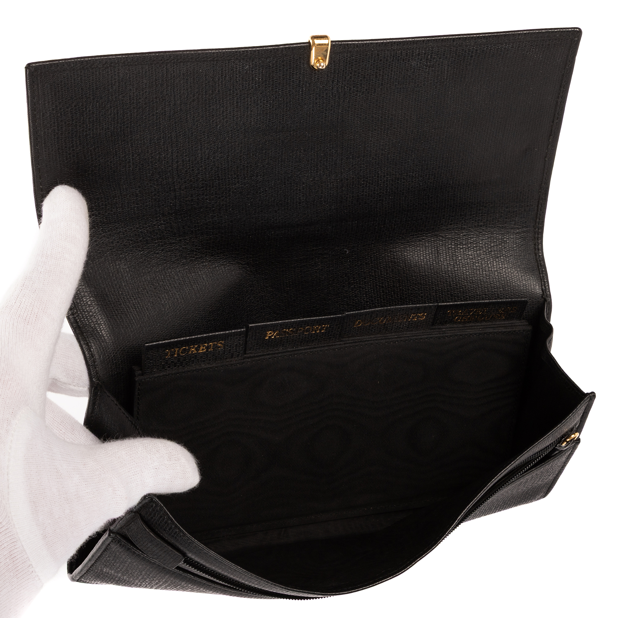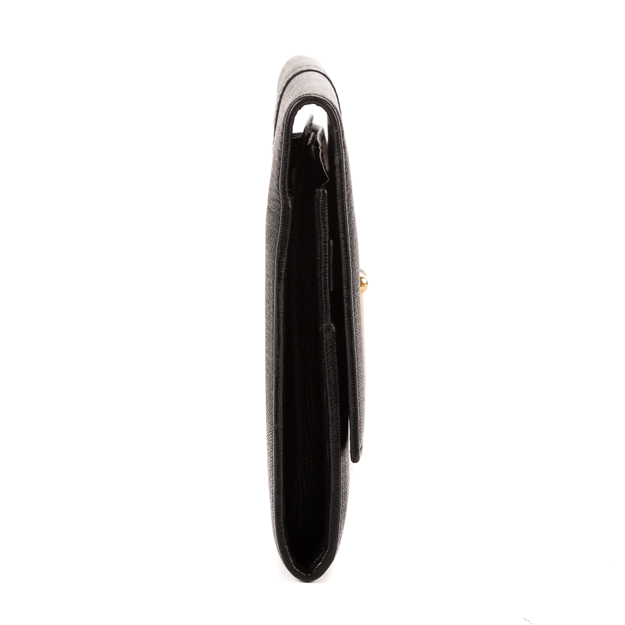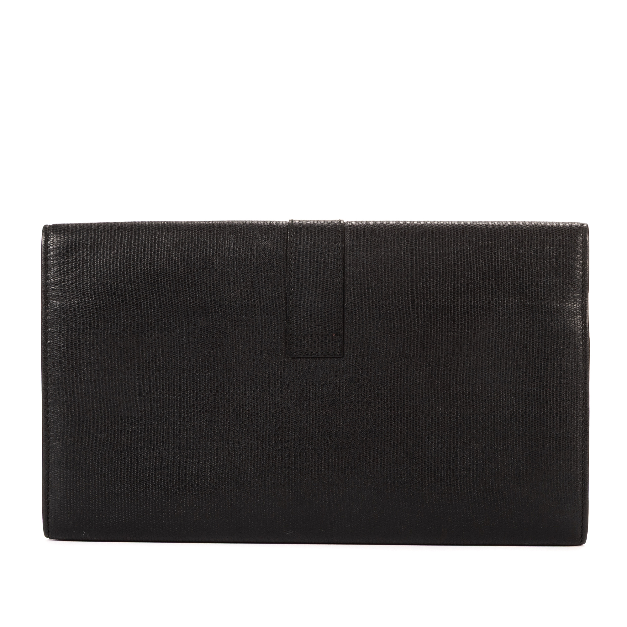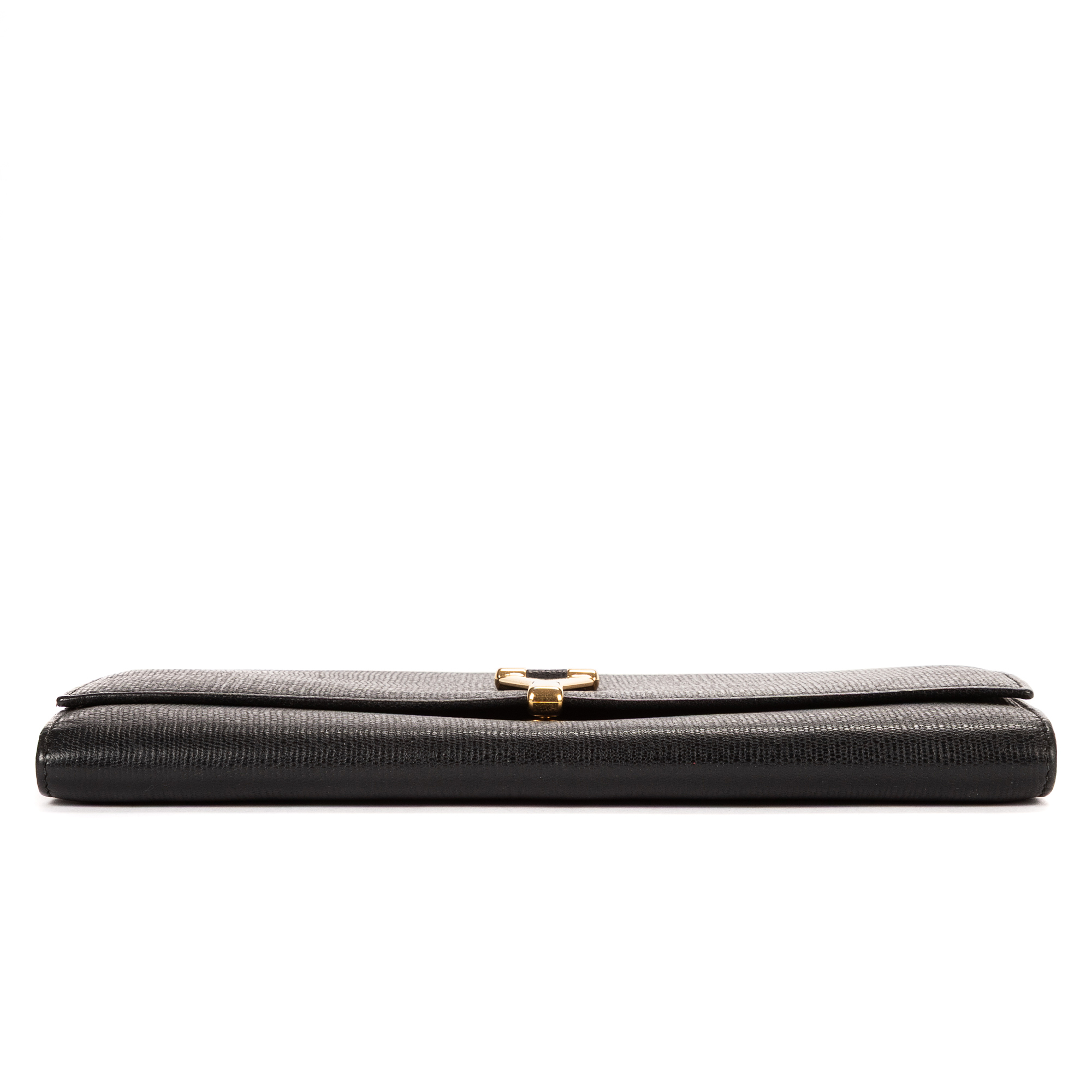 Yves Saint Laurent Wallet Classic Y Line Clutch in Black Grain Leather and Gold hardware. The product is in Excellent Condition (A).