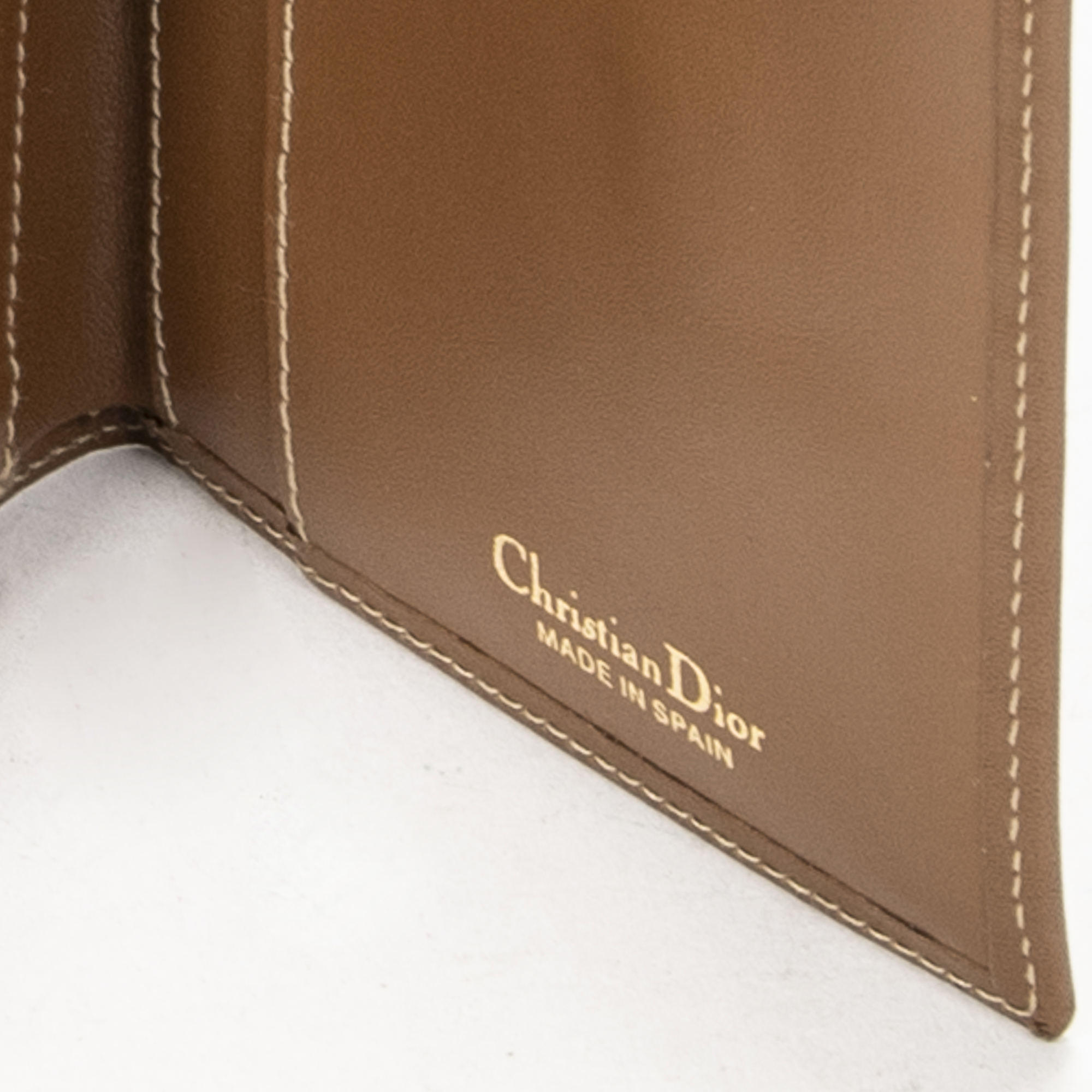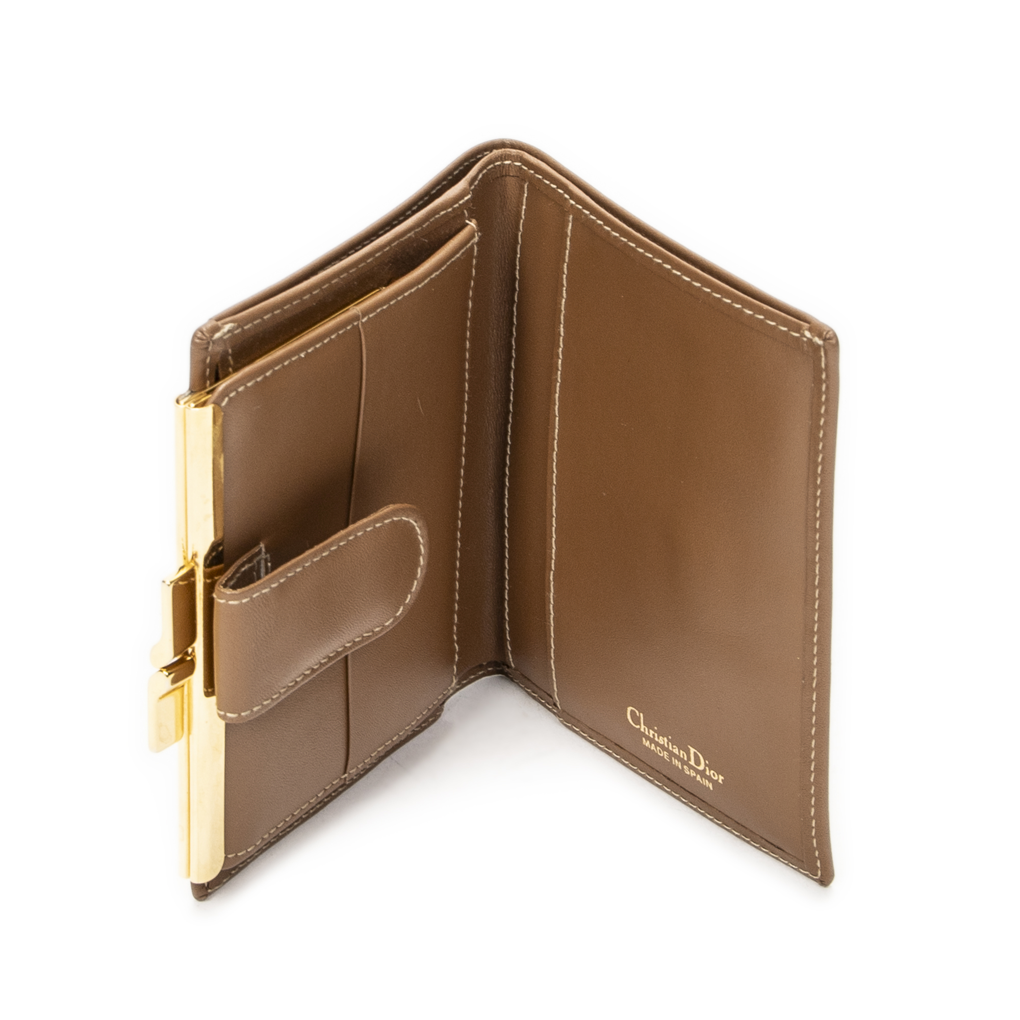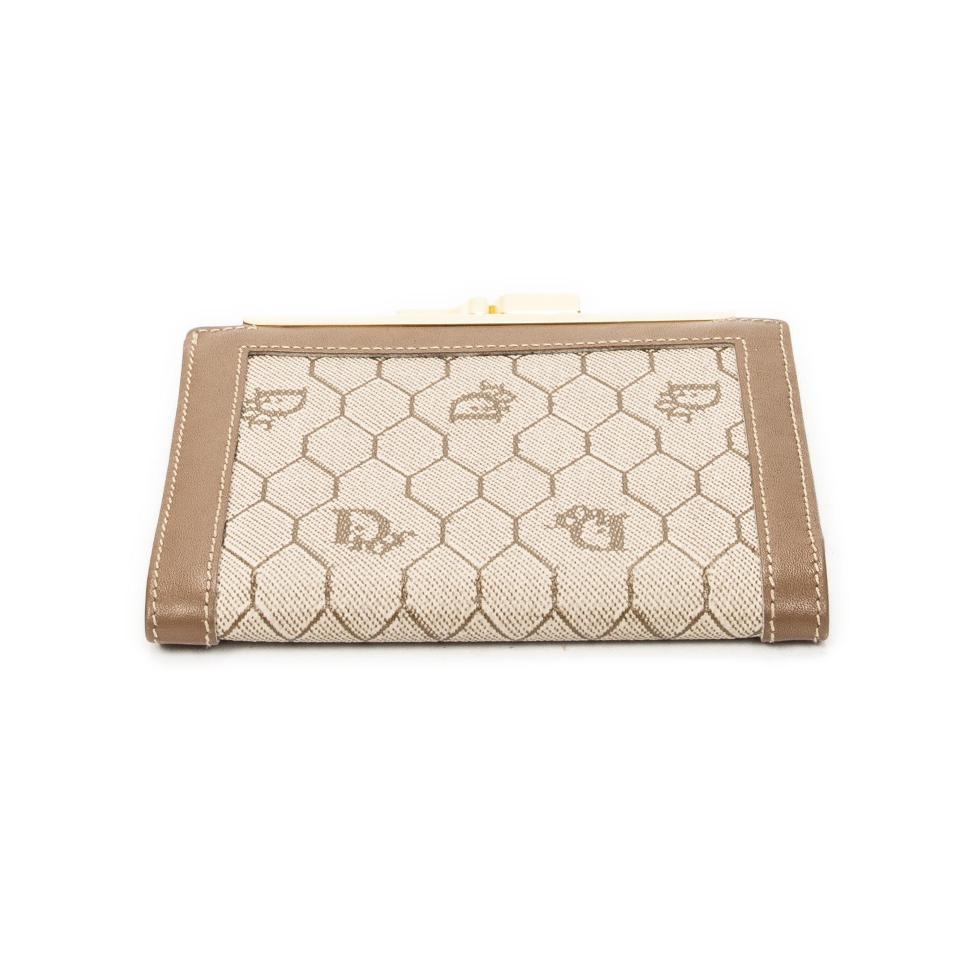Dior Wallet Compact French Purse in Brown/Beige Honeycomb Coated Canvas and Gold hardware. The product is in Perfect Condition (AA).