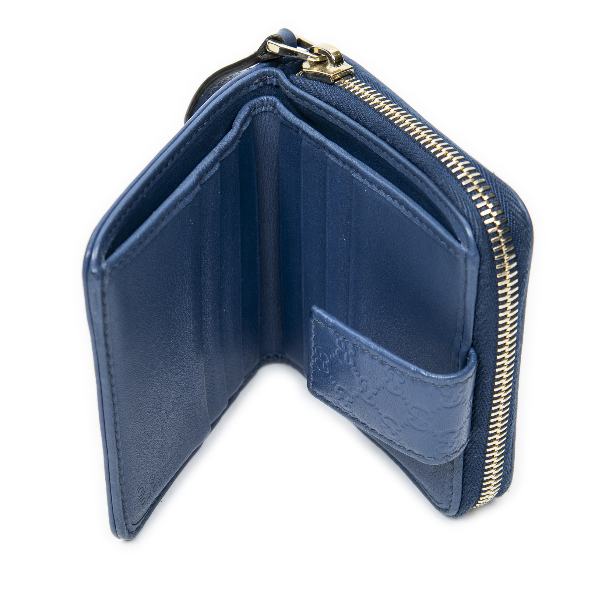 Gucci Wallet Compact Zip Bifold Wallet in Blue Microguccissima Leather and Gold hardware. The product is in Perfect Condition (AA).