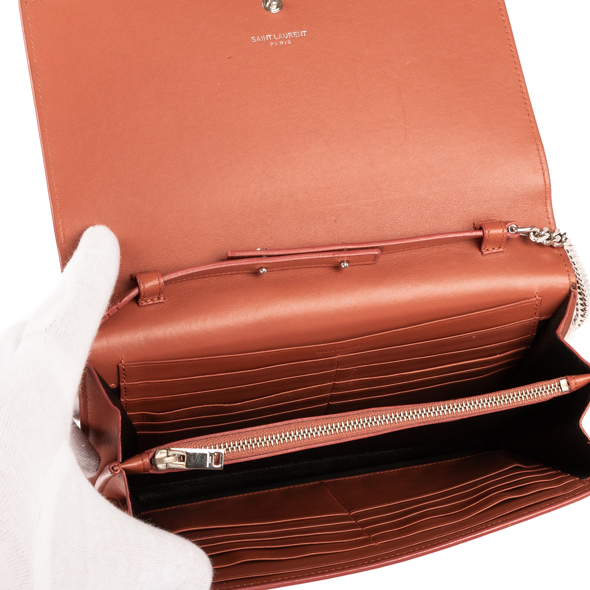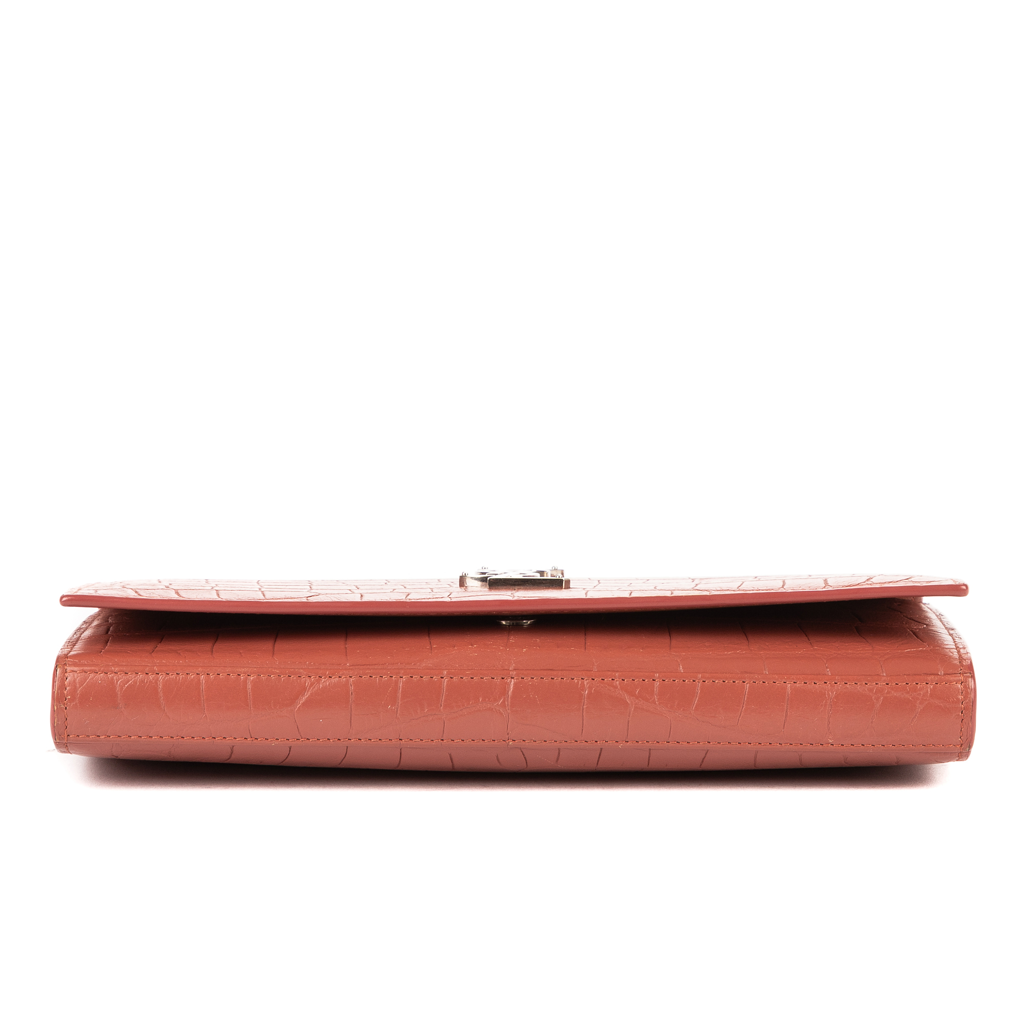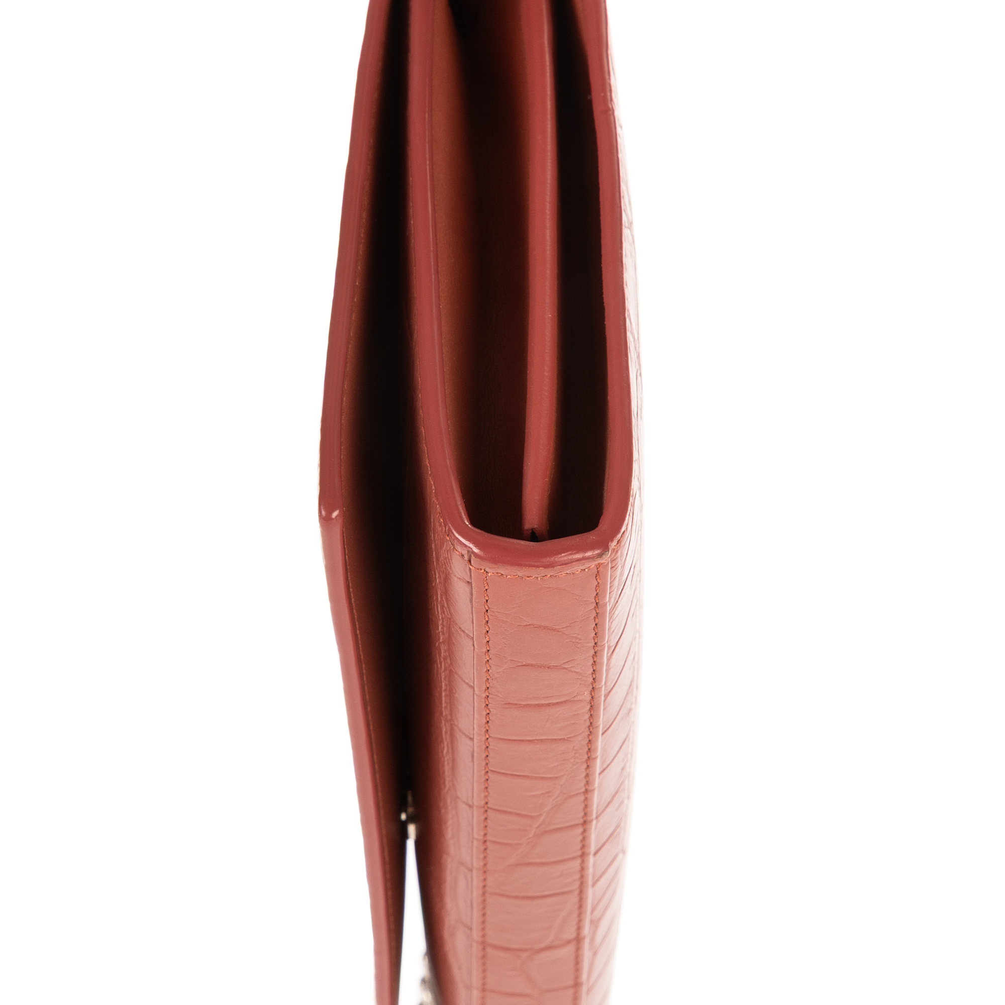 Yves Saint Laurent Wallet Enveloppe Wallet On Chain in Nude Rose Crocodile Embossed Leather and Silver hardware. The product is in Perfect Condition (AA).