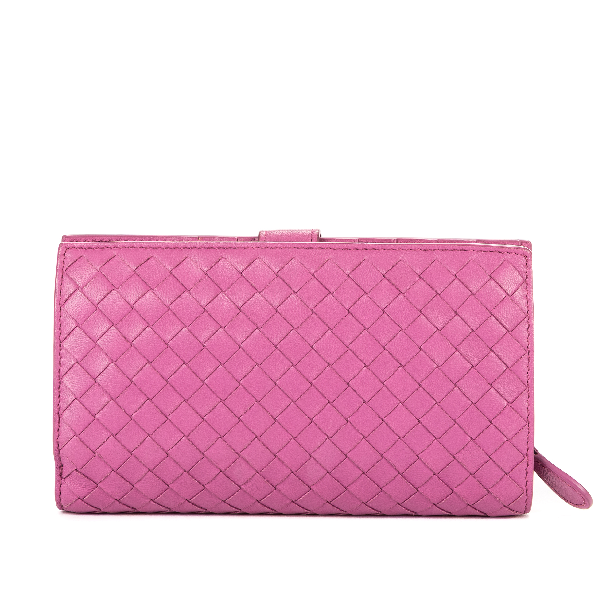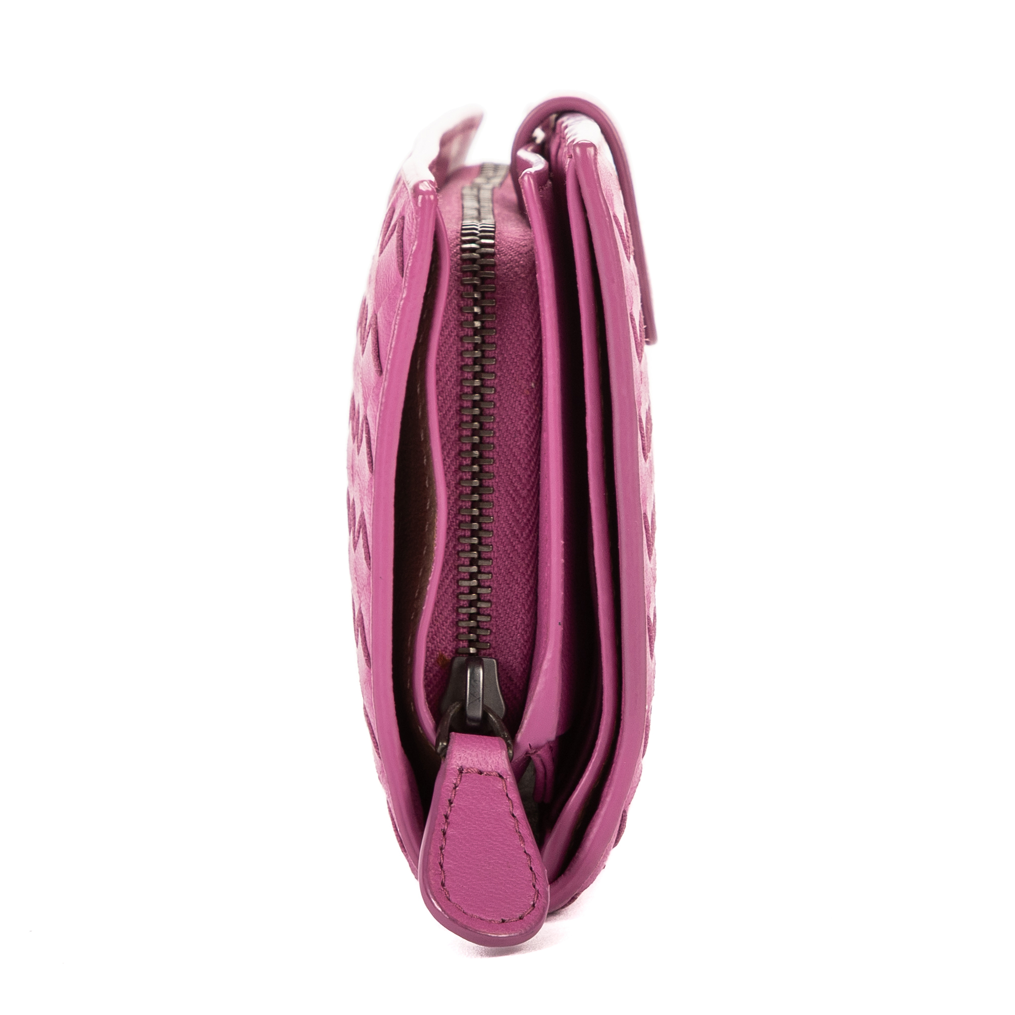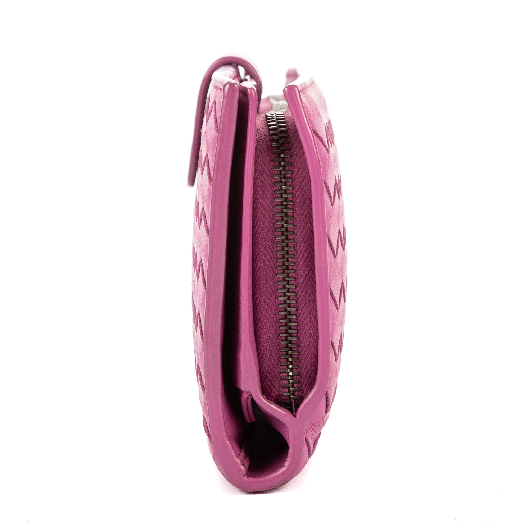 Bottega Veneta Wallet Intrecciato Wallet in Purple Nappa Intrecciato Leather and Black Metal hardware. The product is in Perfect Condition (AA).
