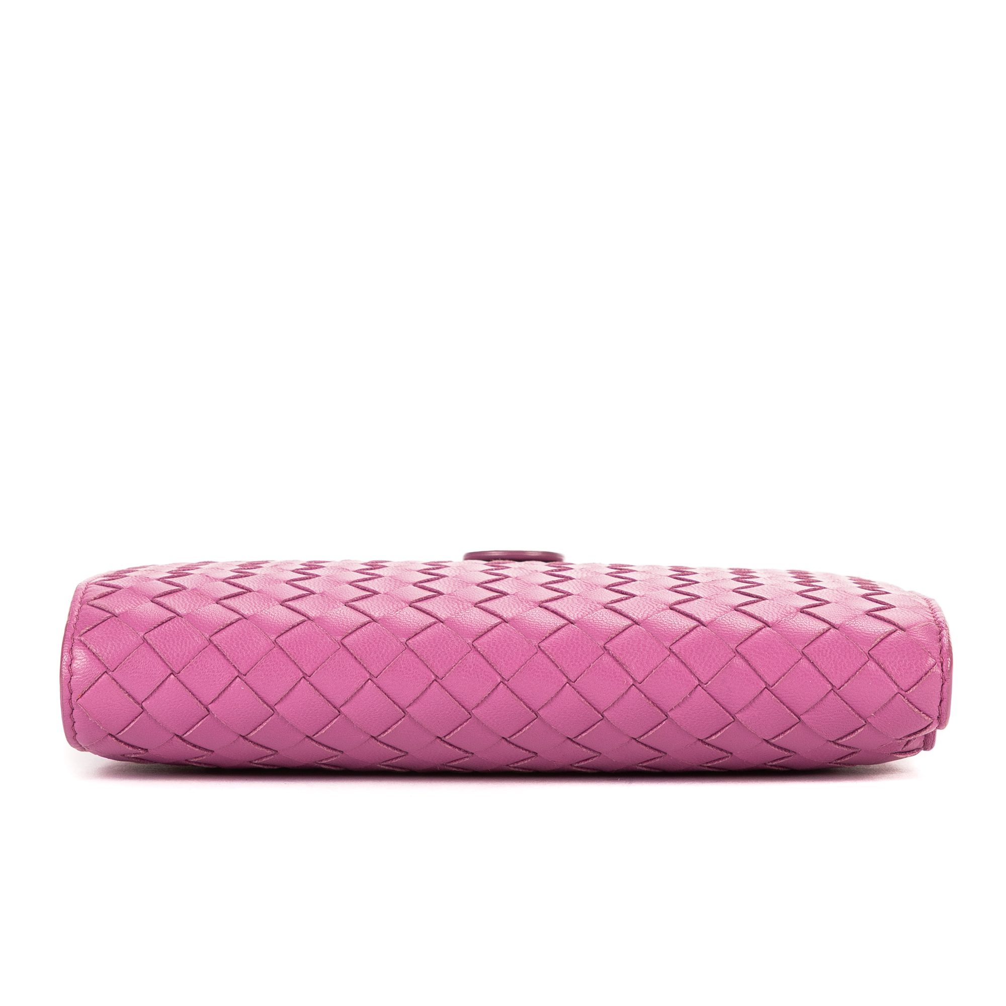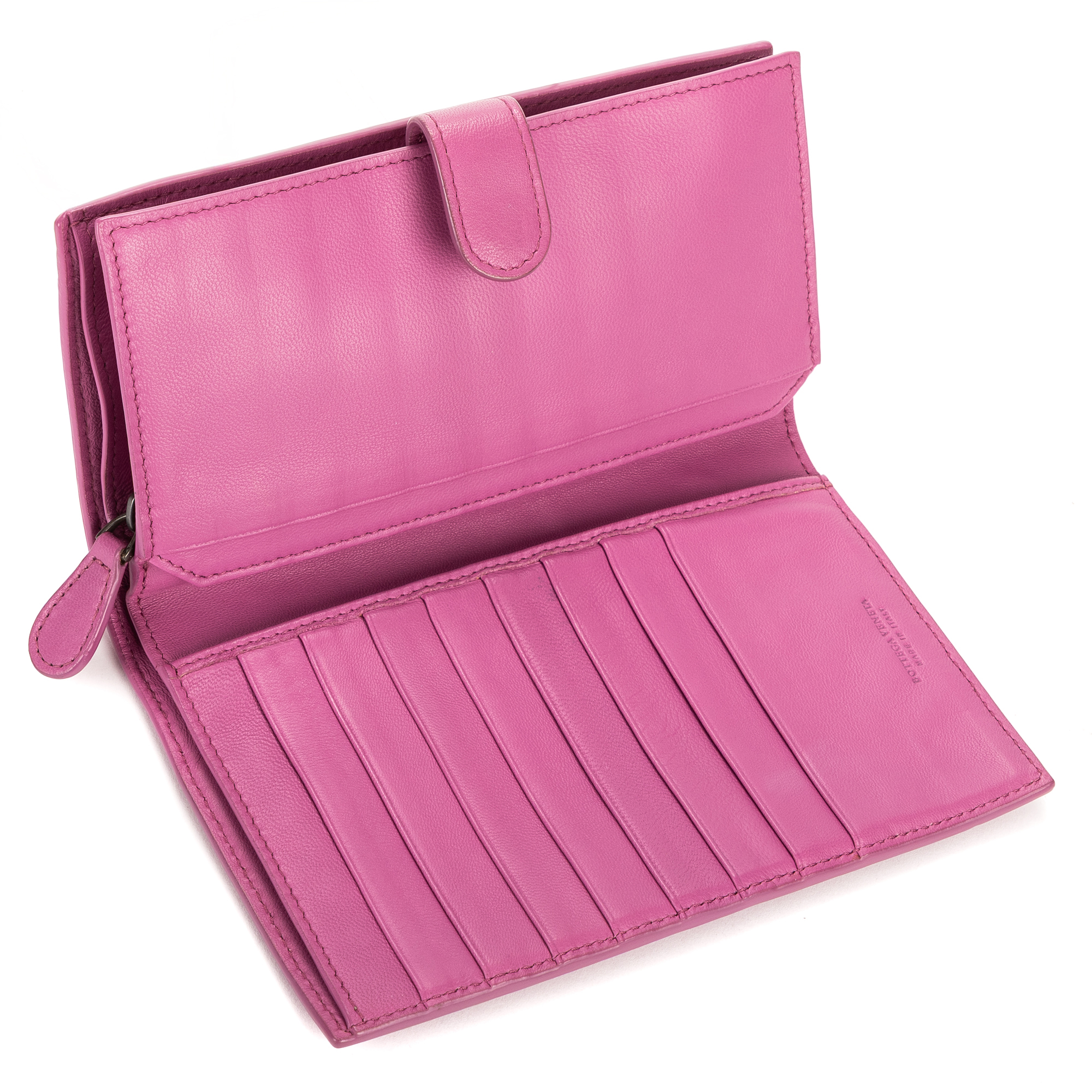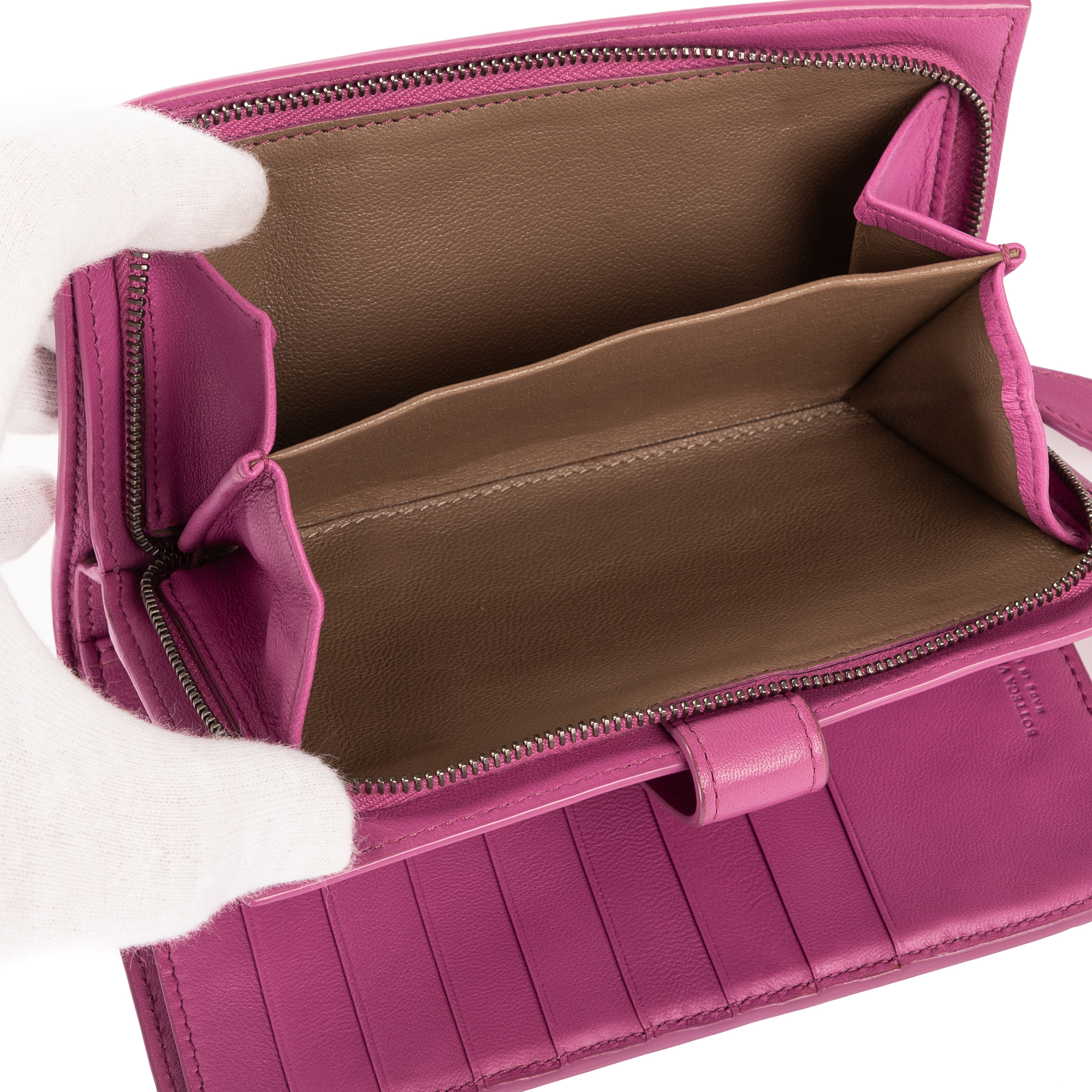 Bottega Veneta Wallet Intrecciato Wallet in Purple Nappa Intrecciato Leather and Black Metal hardware. The product is in Perfect Condition (AA).
