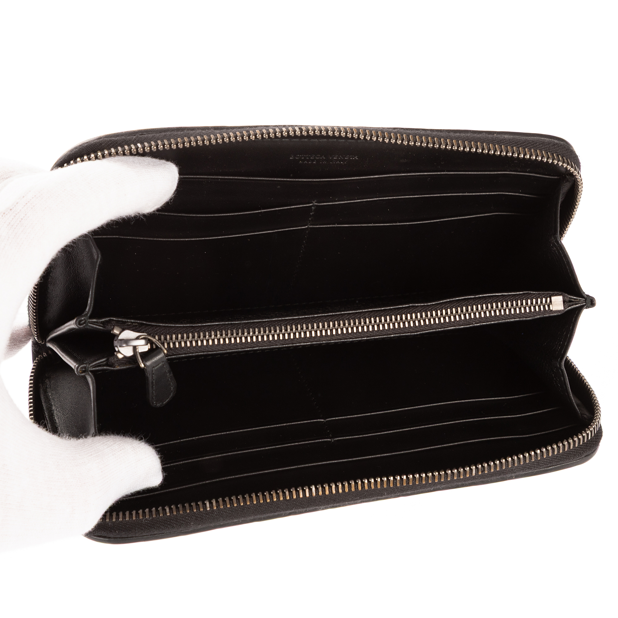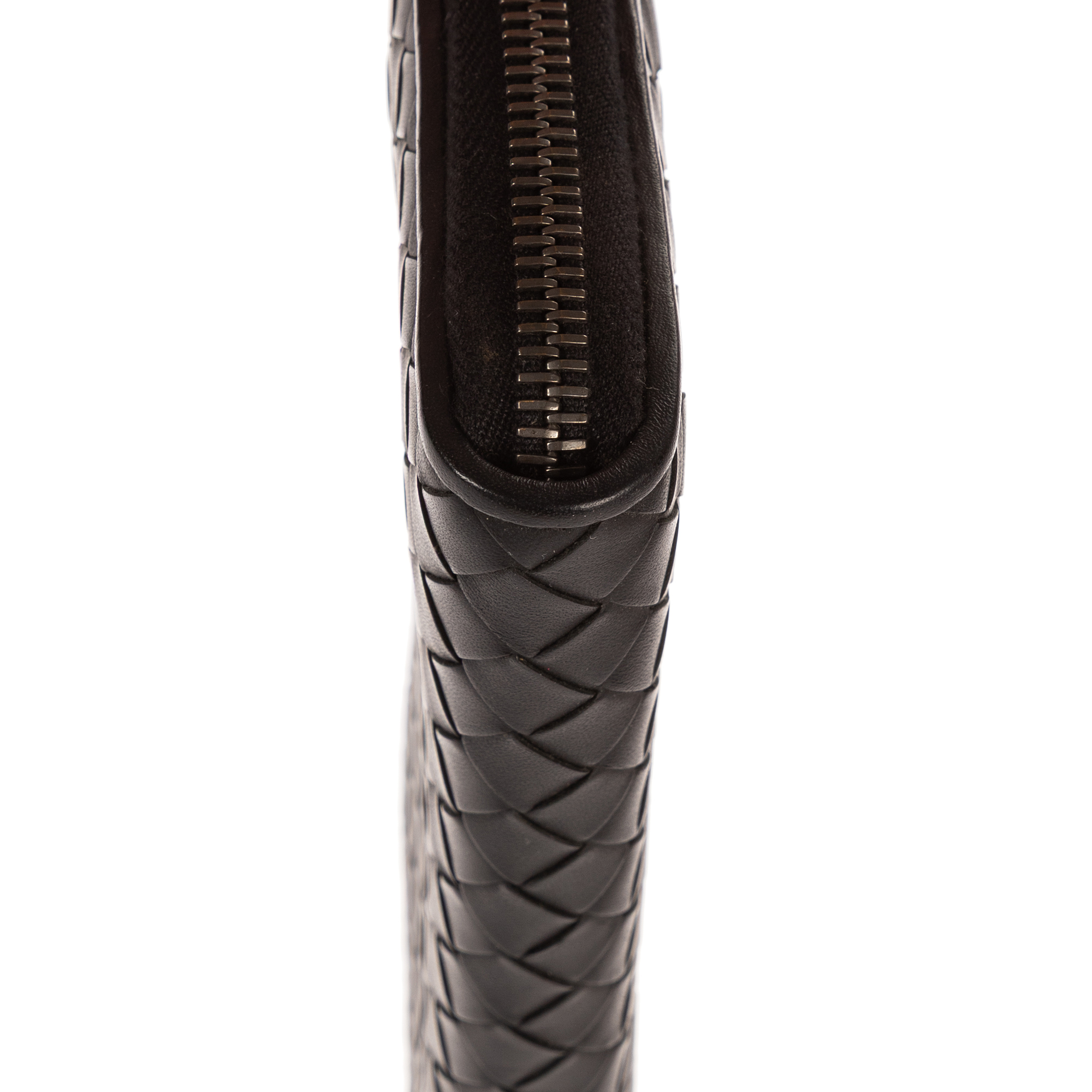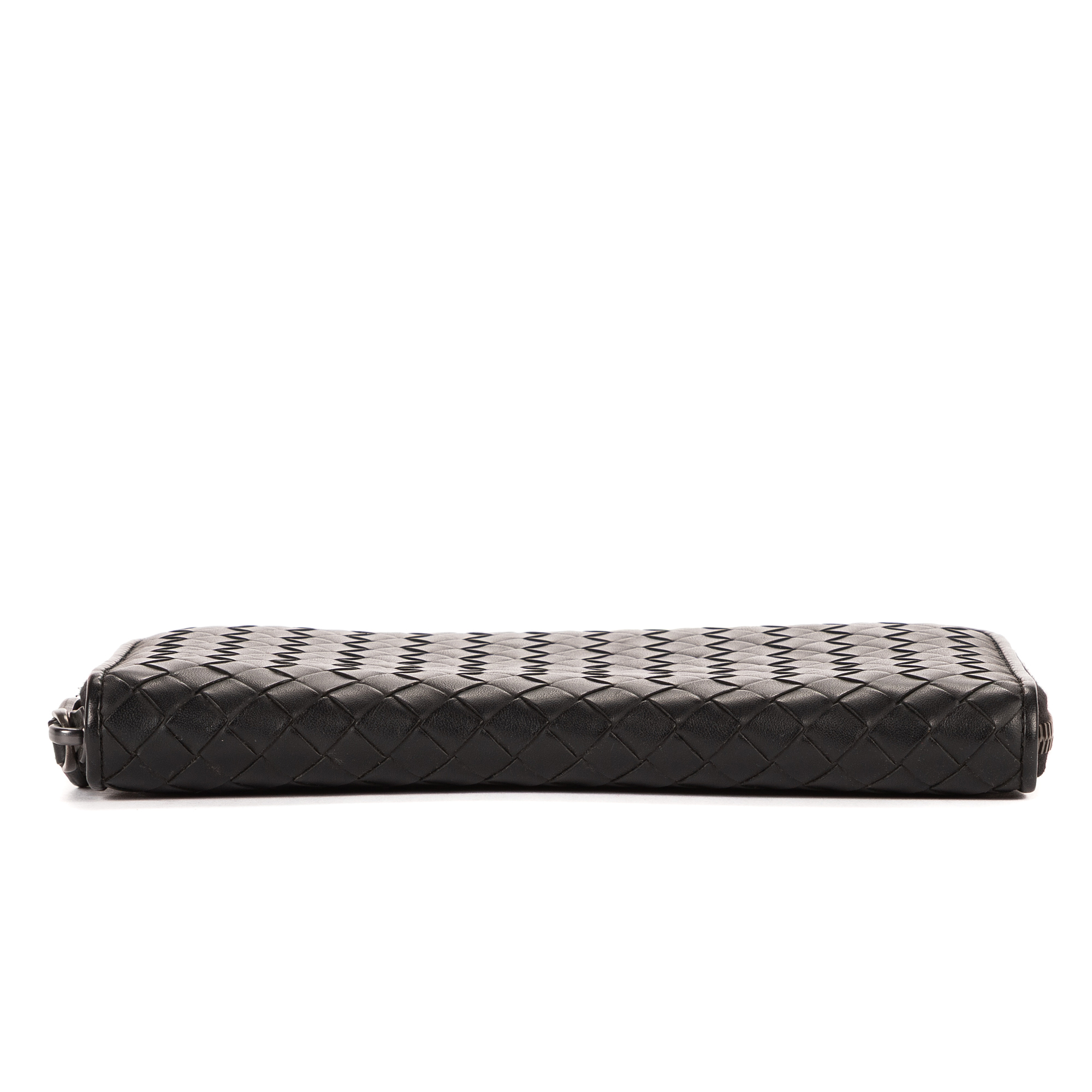 Bottega Veneta Wallet Intrecciato Zip Around Wallet in Black Nappa Intrecciato Leather and Bronze hardware. The product is in Perfect Condition (AA).