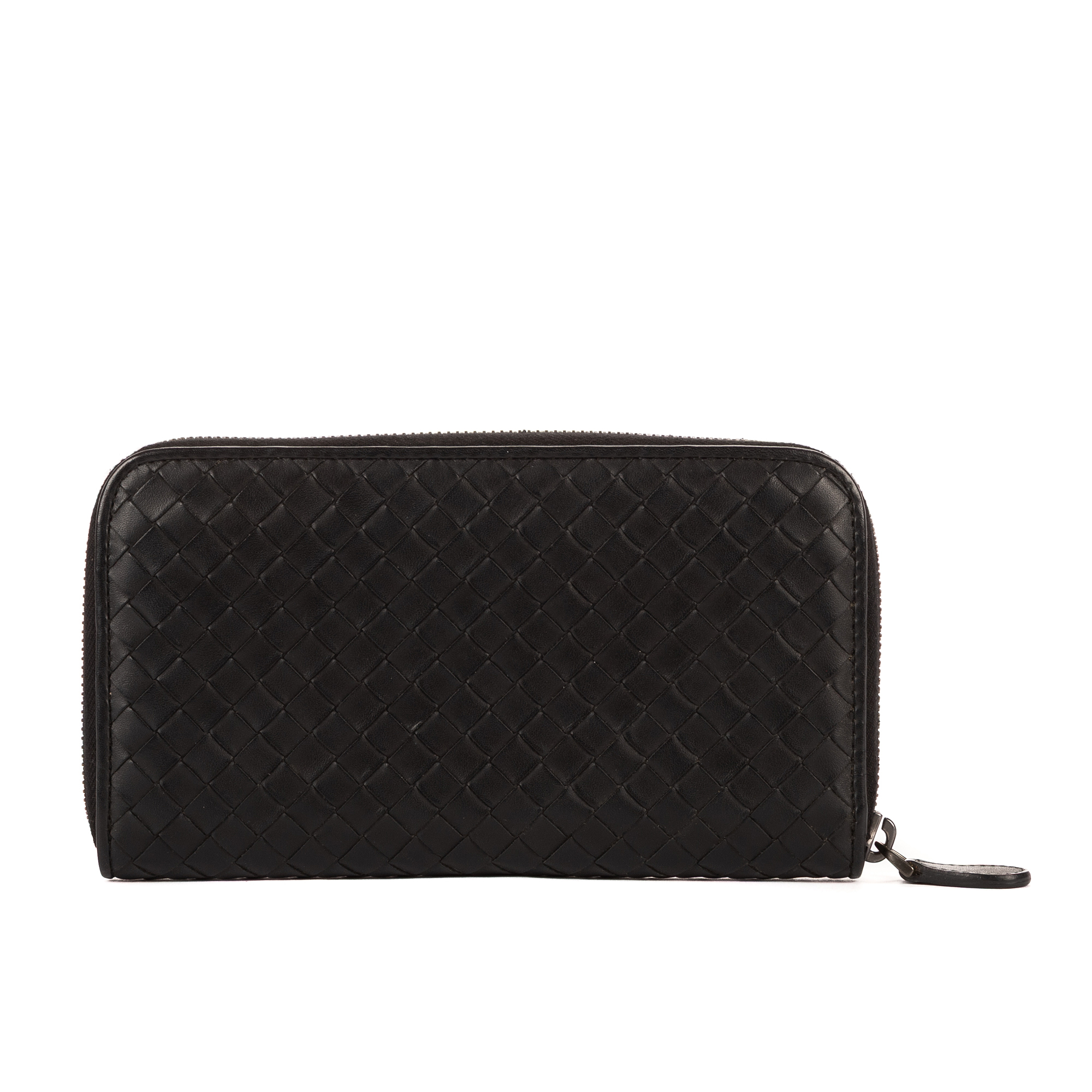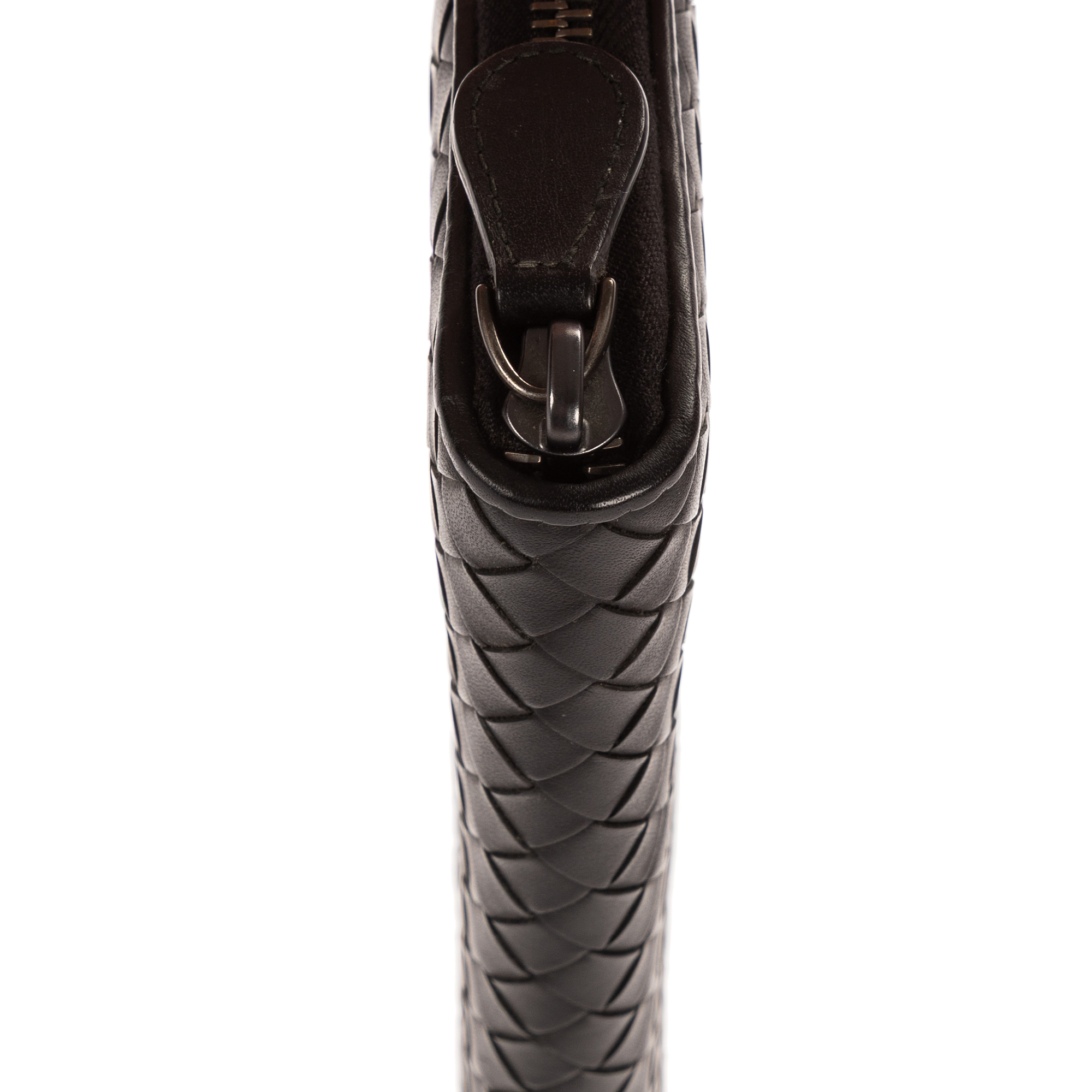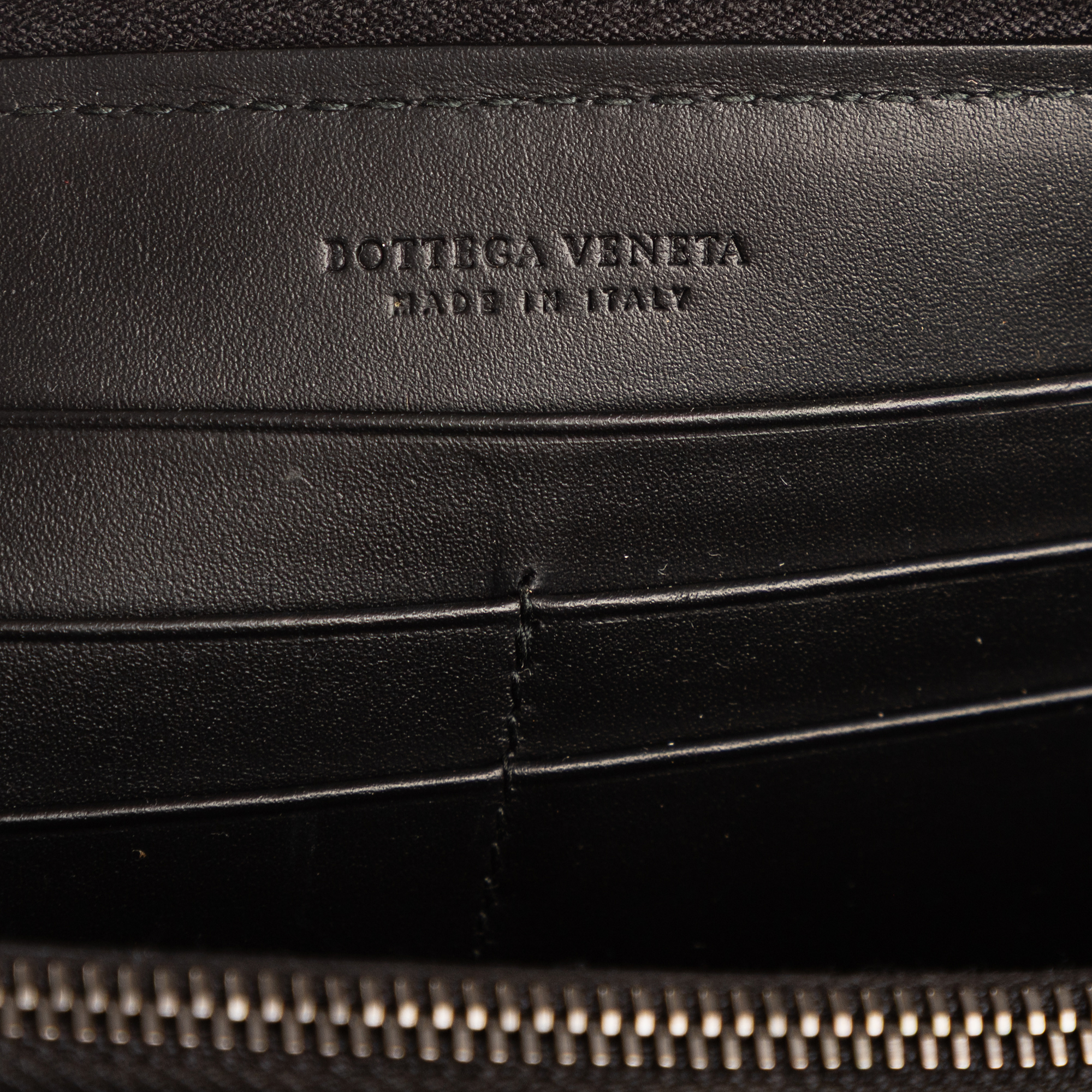 Bottega Veneta Wallet Intrecciato Zip Around Wallet in Black Nappa Intrecciato Leather and Bronze hardware. The product is in Perfect Condition (AA).