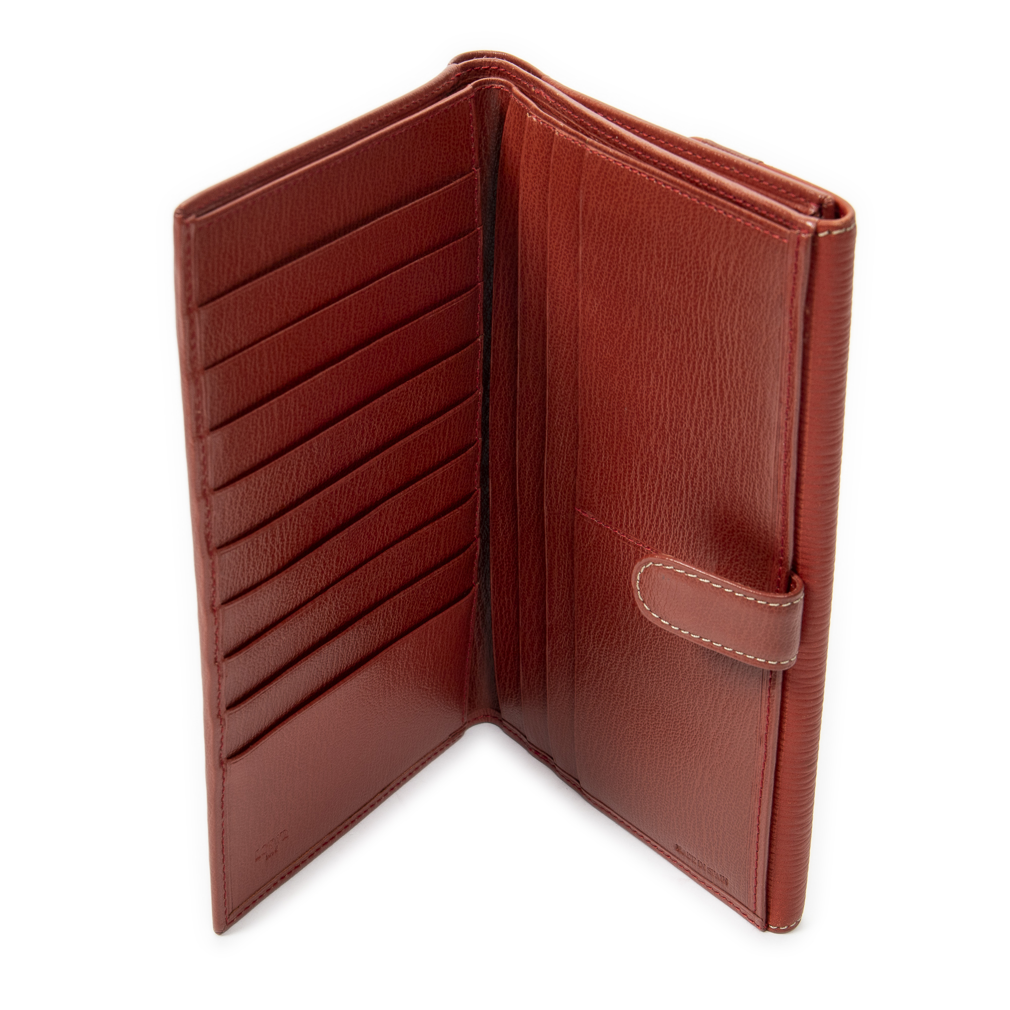 Loewe Wallet Velazquez Long Bifold Wallet in Red Textured Leather and Gold hardware. The product is in Excellent Condition (A).