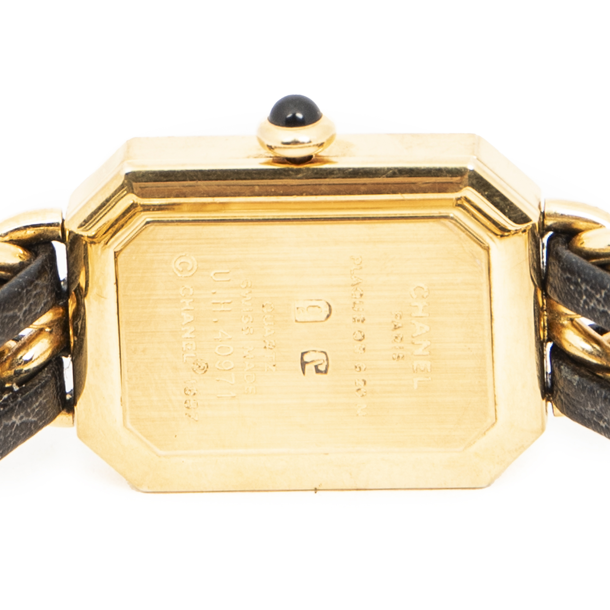 Description : Chanel Watch Première L in Black/Gold Gold Plated and Black Dial hardware. The product is in Excellent Condition (A). Size: 0 SKU: ABC0170 Serial number: U.H.40971 Accessories Included: None Delivery: We have a 5 to 7 business days delivery policy, hassle-free and duties/tariffs included! BrandCo Paris finds rare and top condition items at great deals, they are worth your patience! Shop with confidence - All BrandCo Paris items are carefully selected and authenticated by our team of experts. All the items come with an authenticity certificate and packaging delivered by BrandCo Paris. Item Condition Grading Table N (Like New) AA (Perfect Condition) A (Excellent Condition) AB (Very Good Condition) B (Good/Fair)