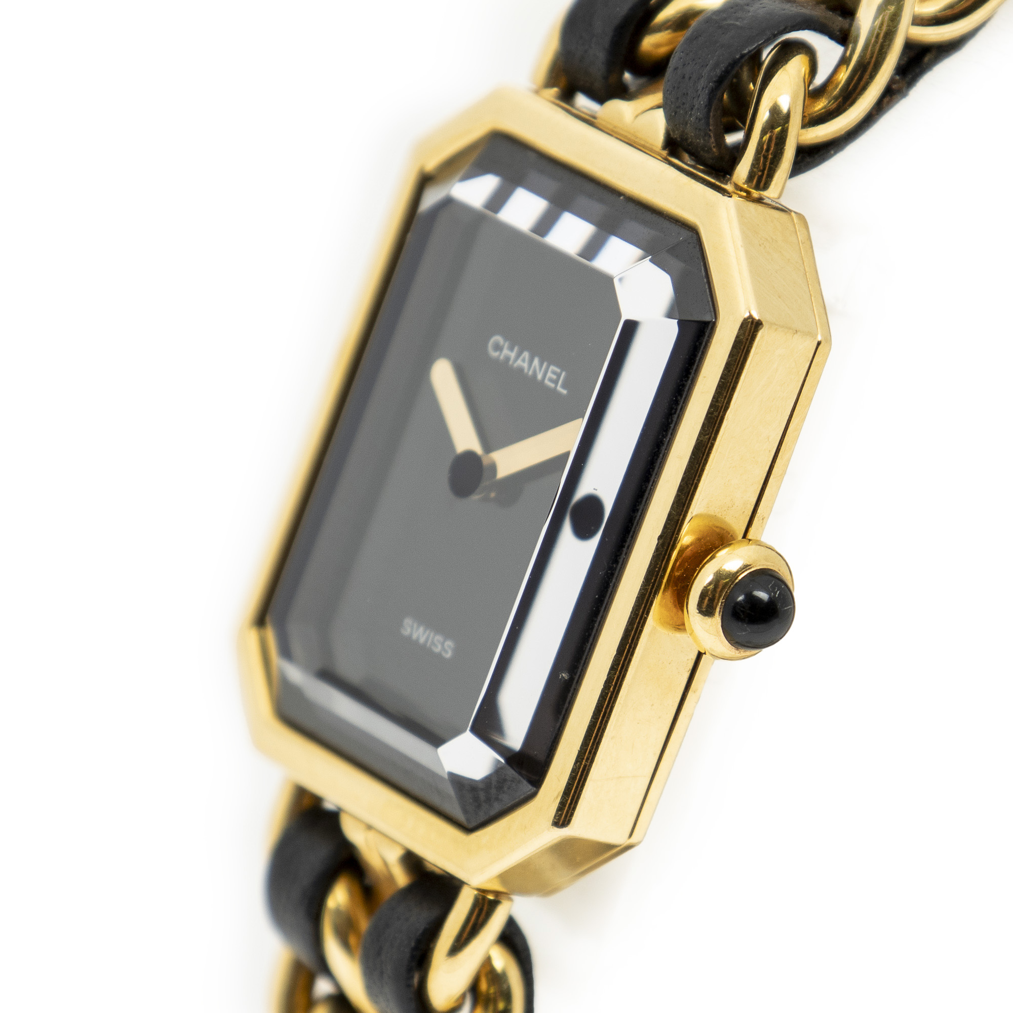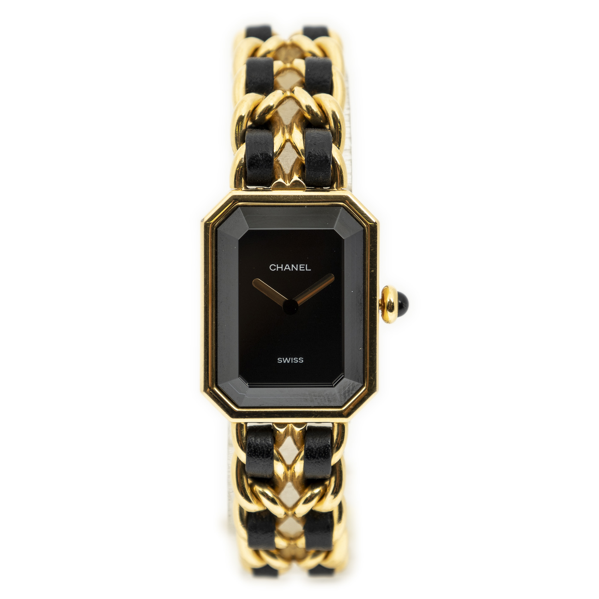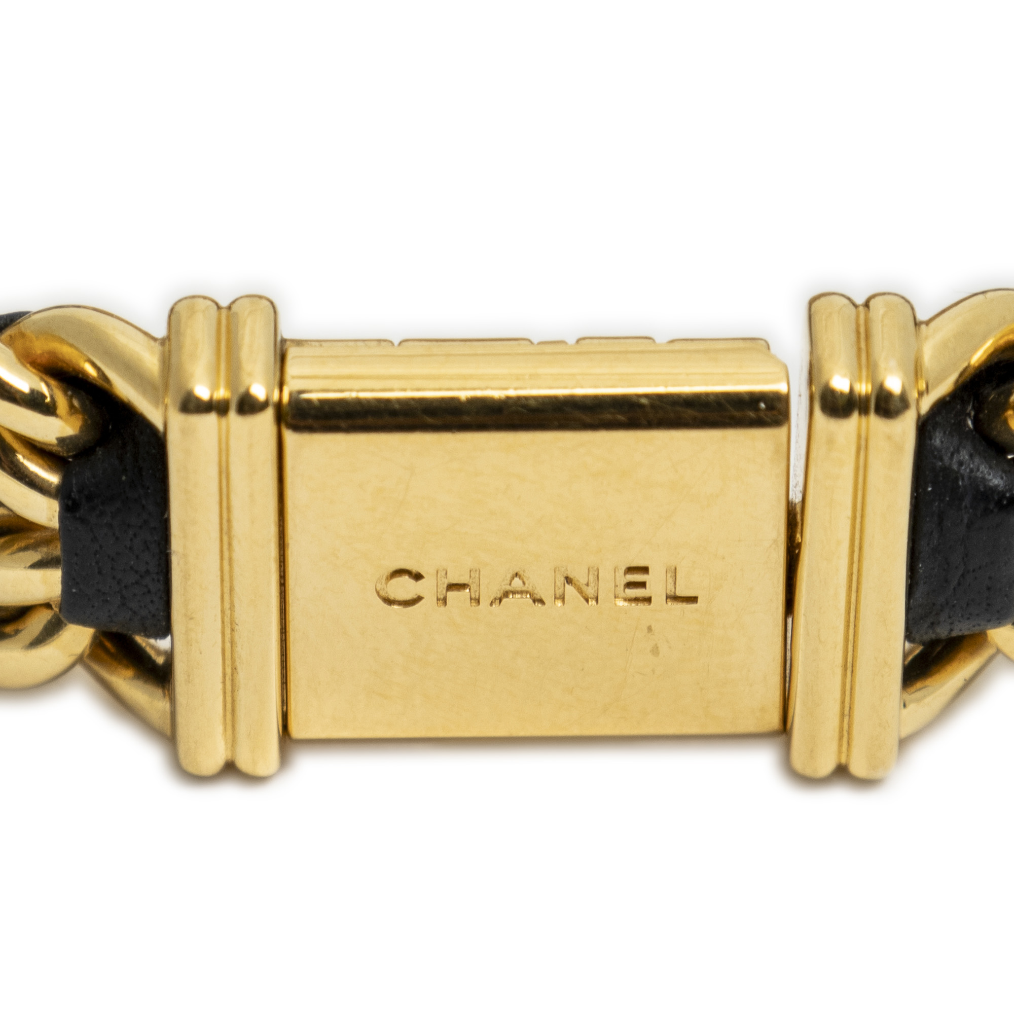 Chanel Watch Première M in Gold/Black Gold Plated and Gold Plated hardware. The product is in Excellent Condition (A).