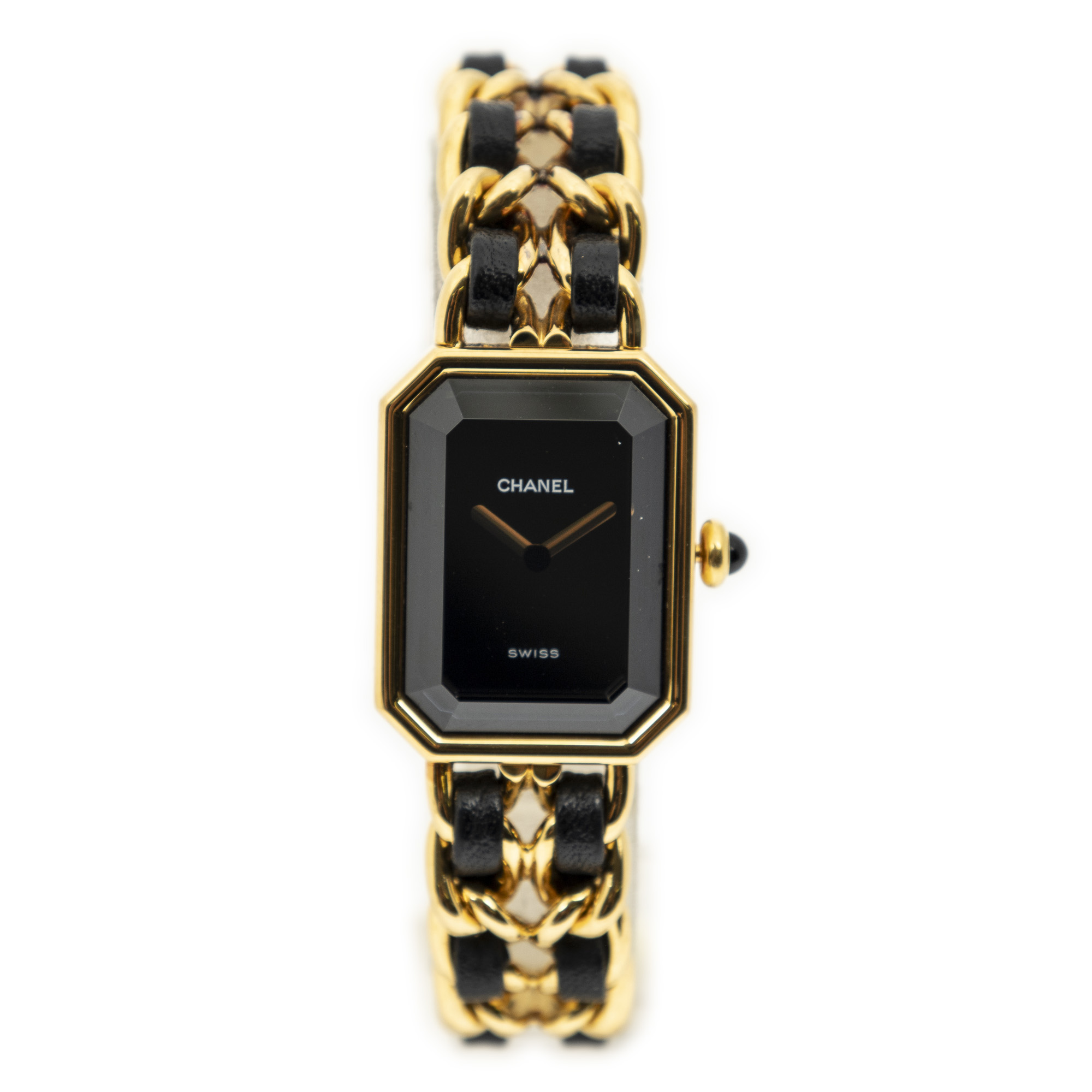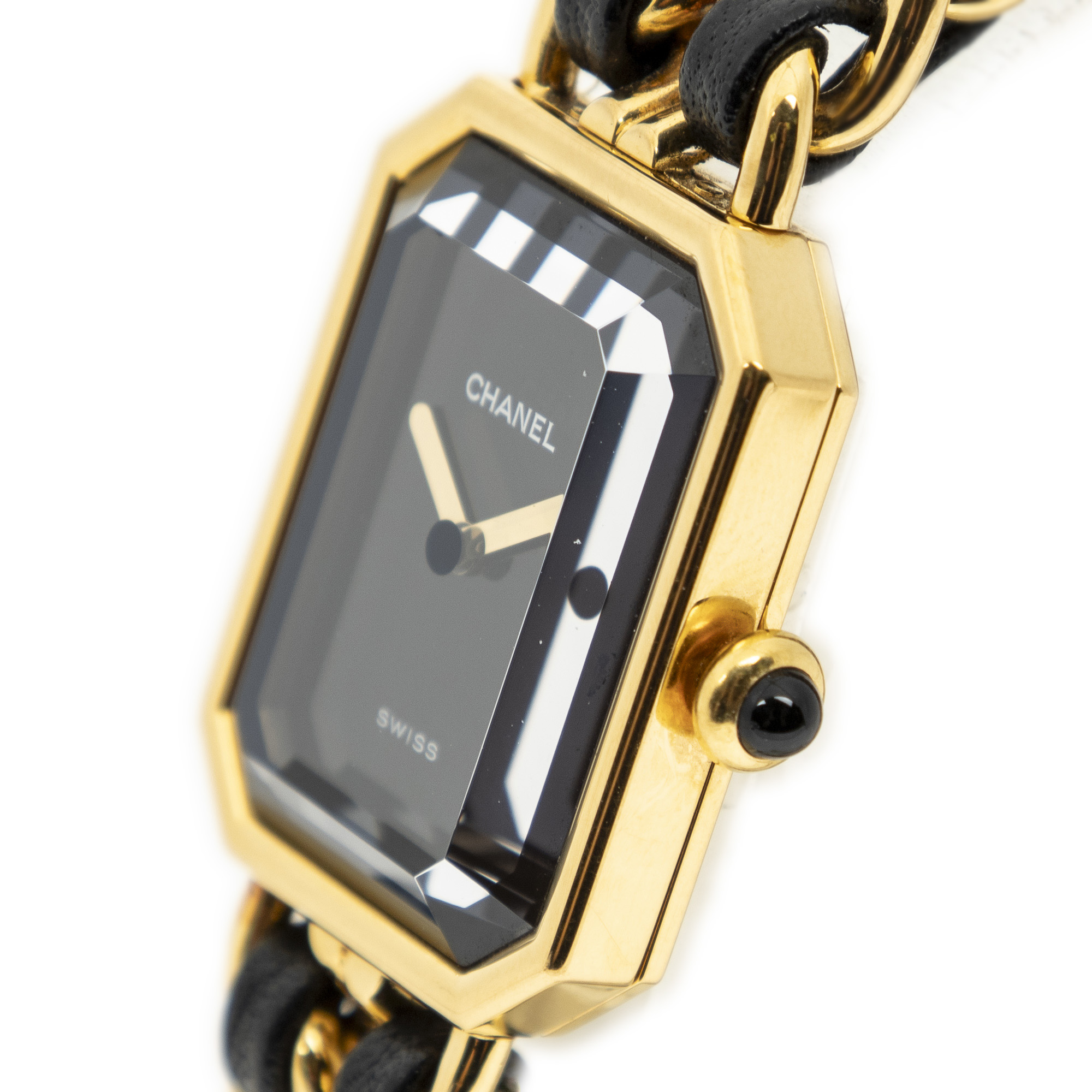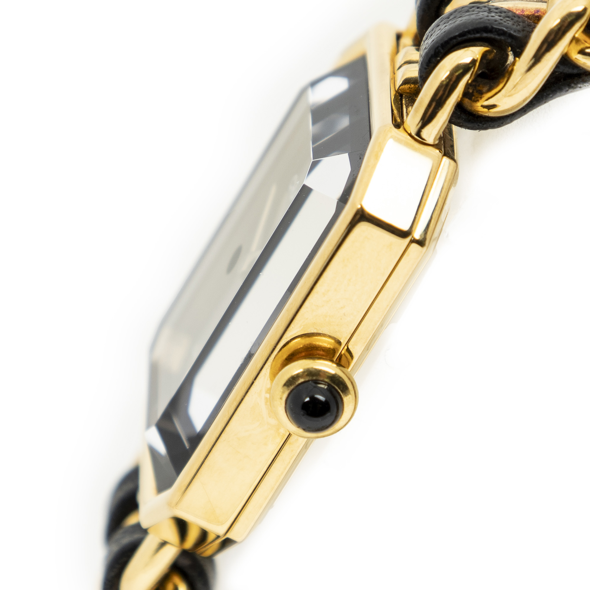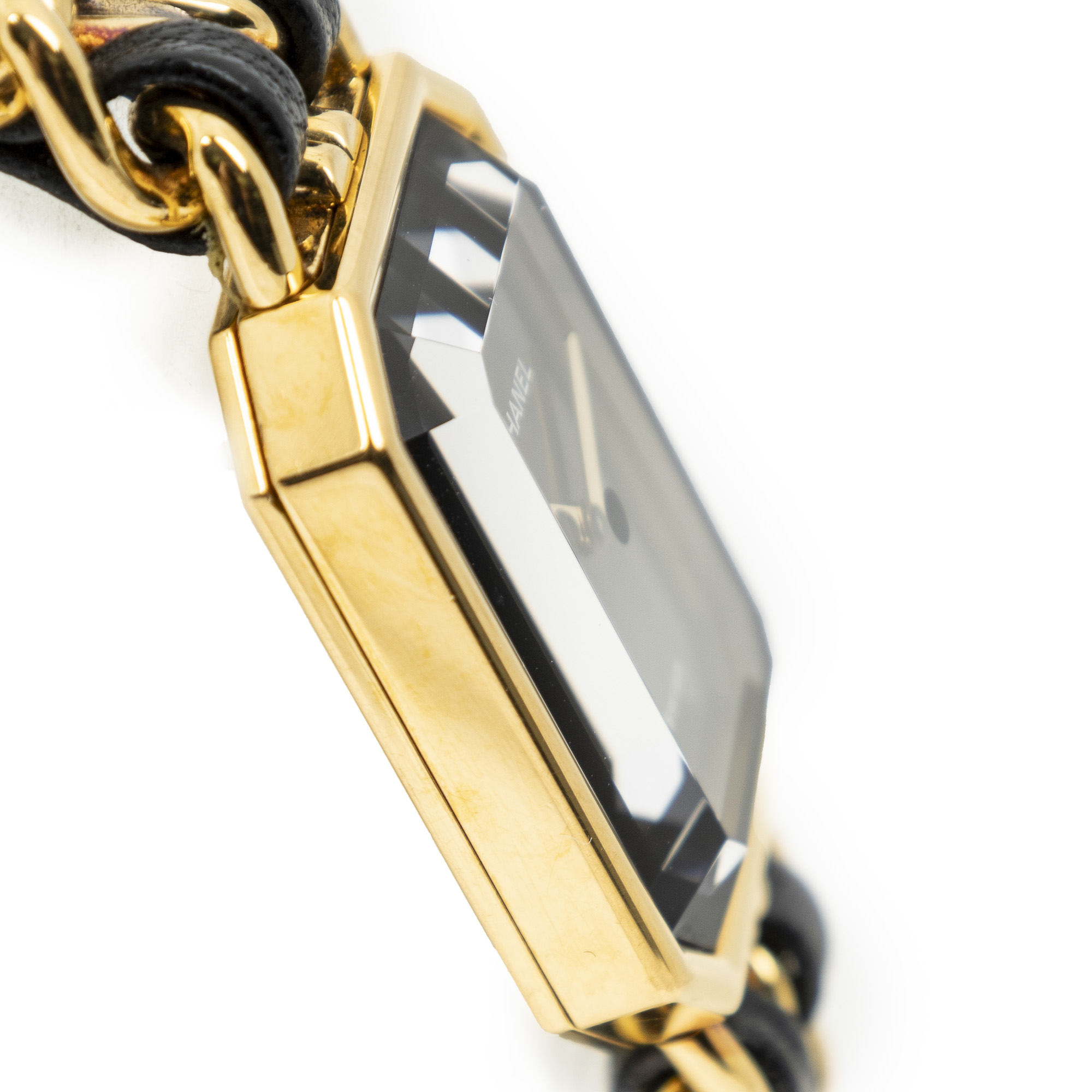 Chanel Watch Première M in Gold/Black Gold Plated and Gold Plated hardware. The product is in Excellent Condition (A).