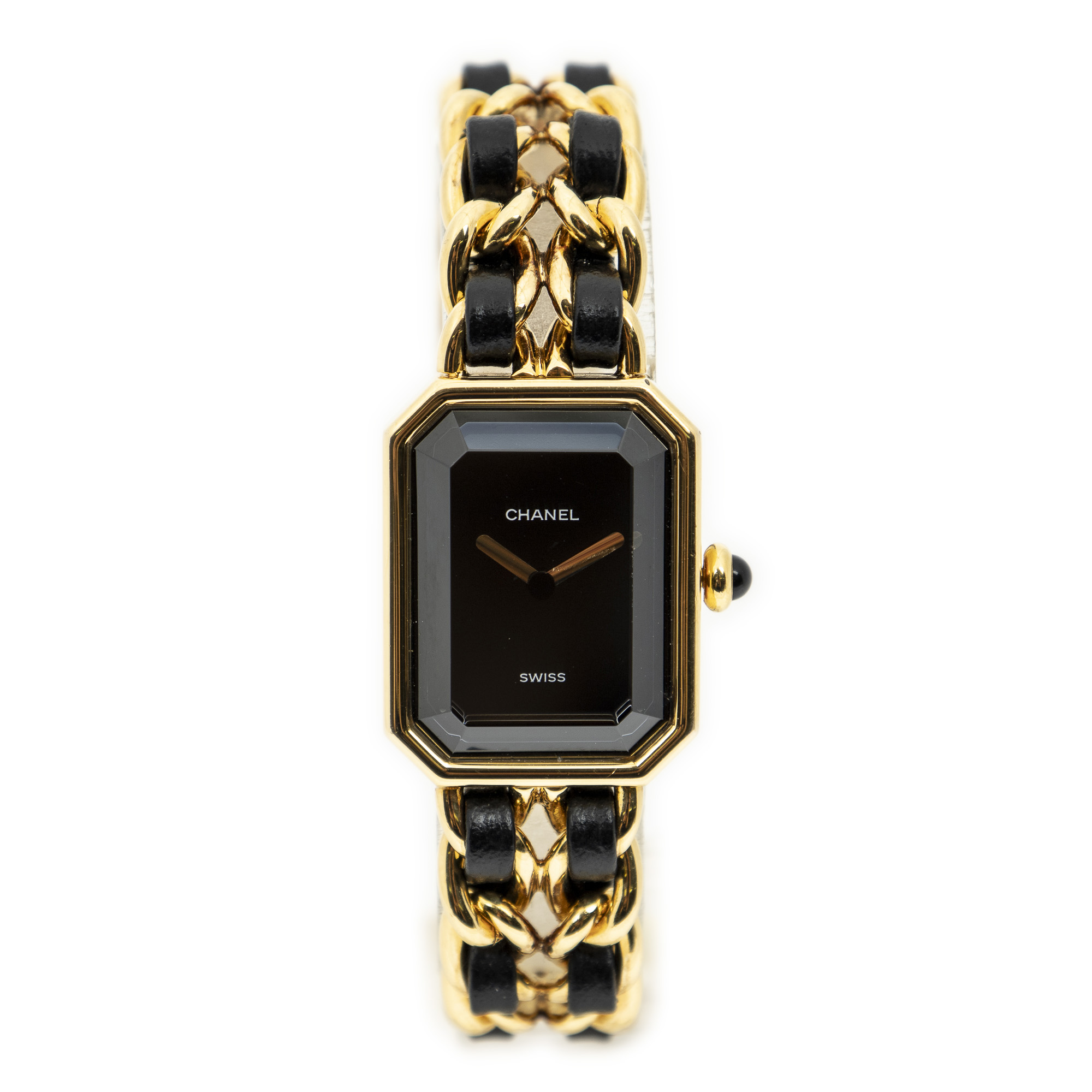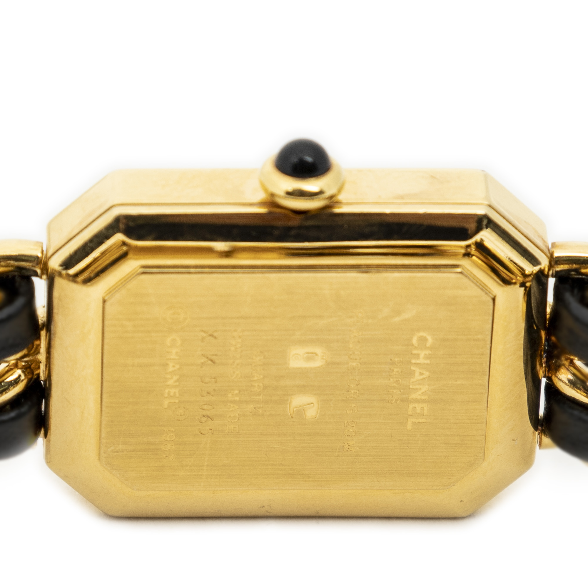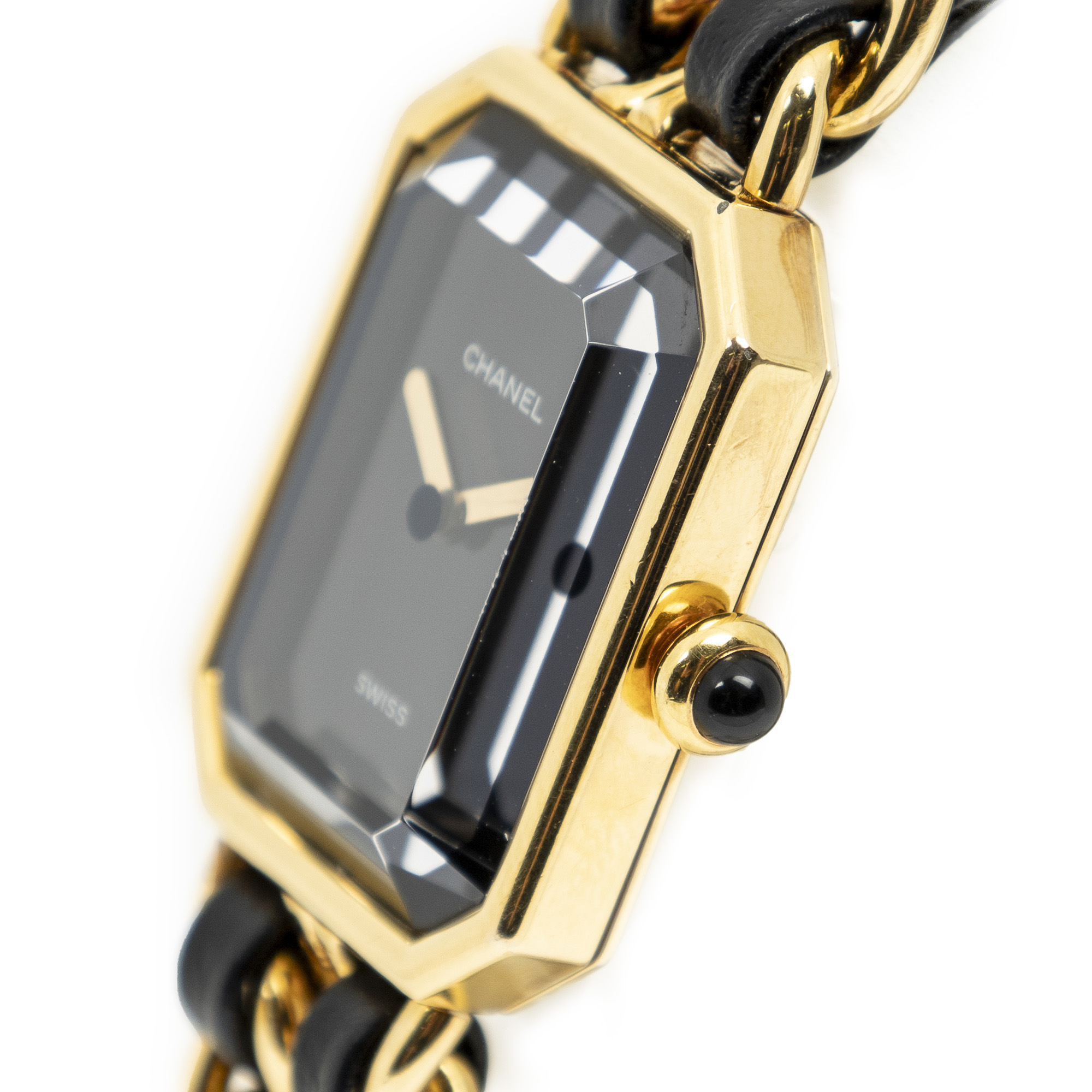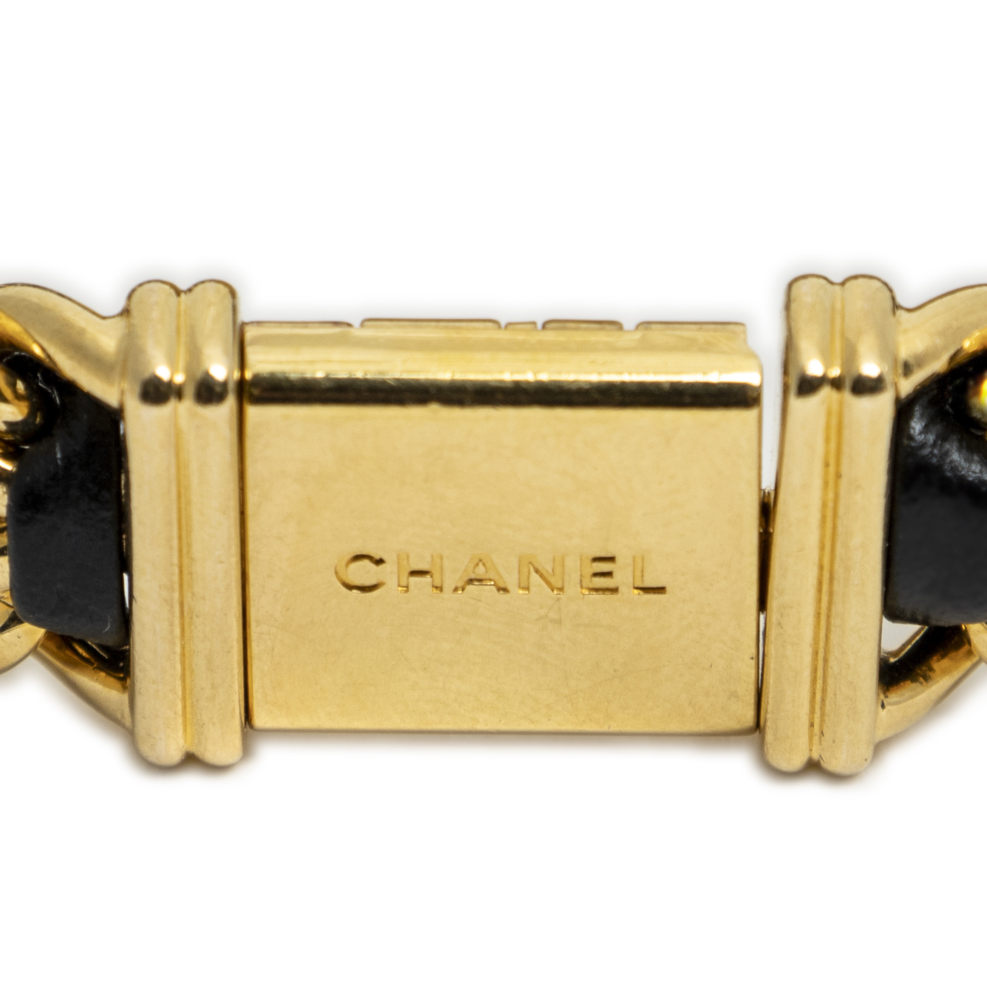 Chanel Watch Première M in Gold/Black Gold Plated and Gold Plated hardware. The product is in Excellent Condition (A).