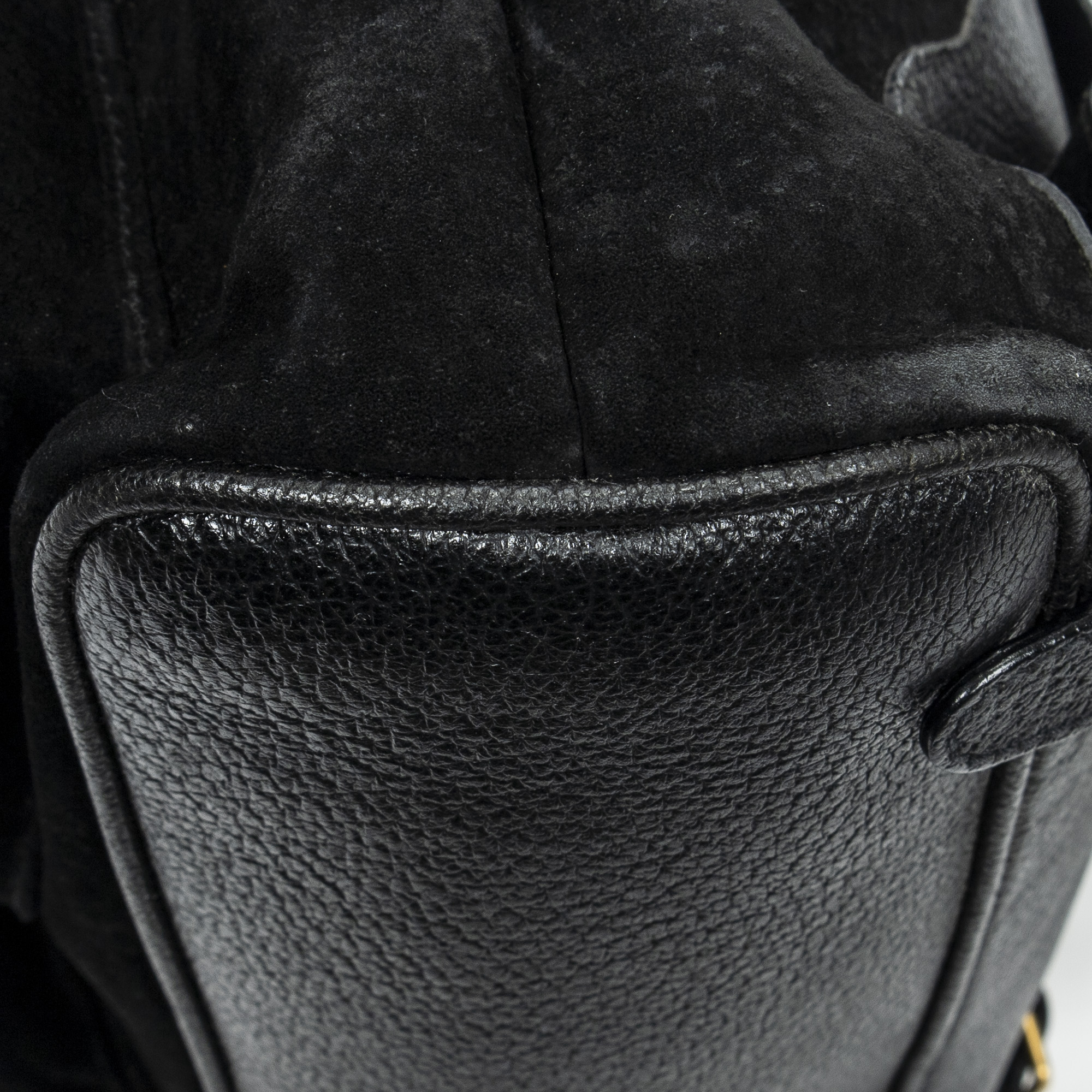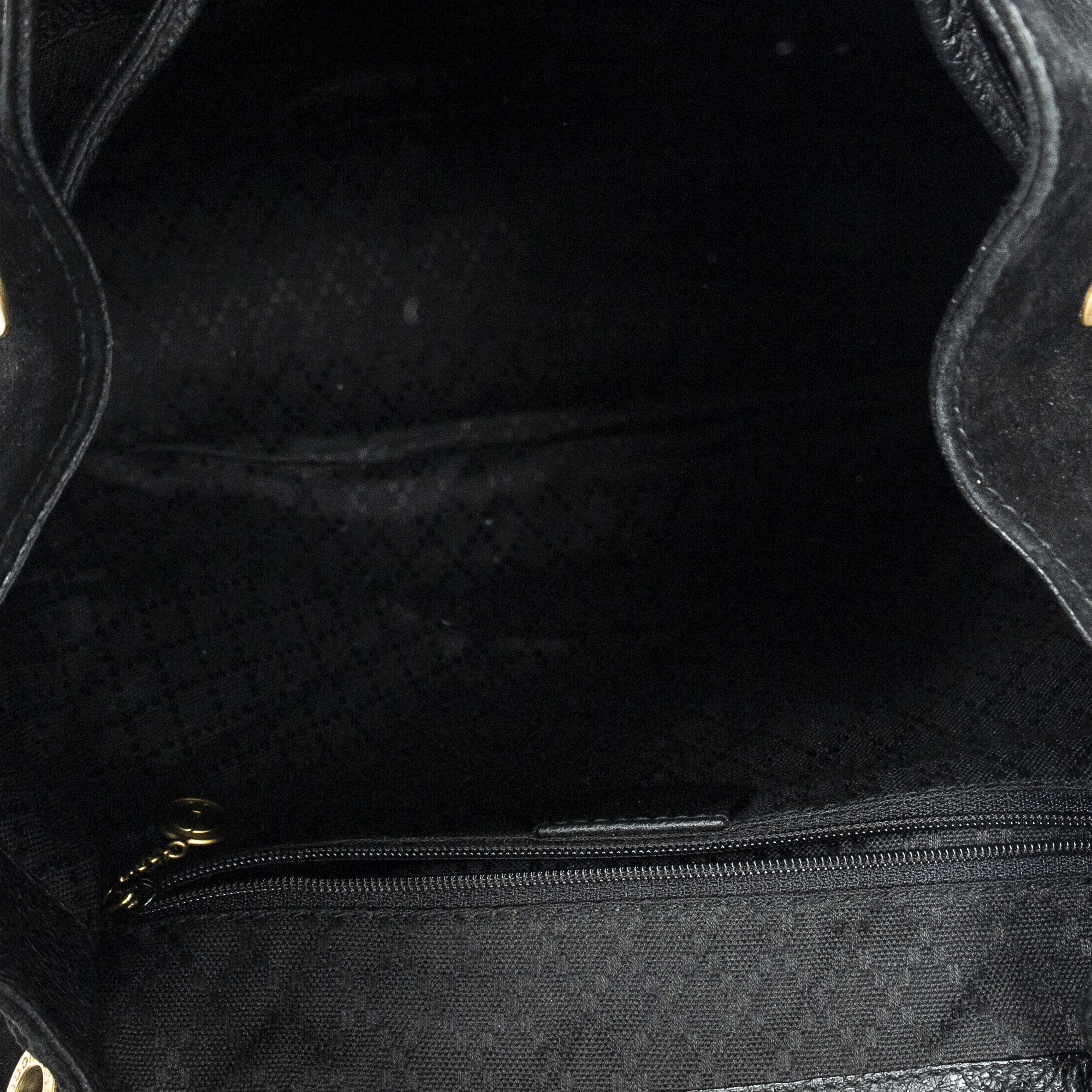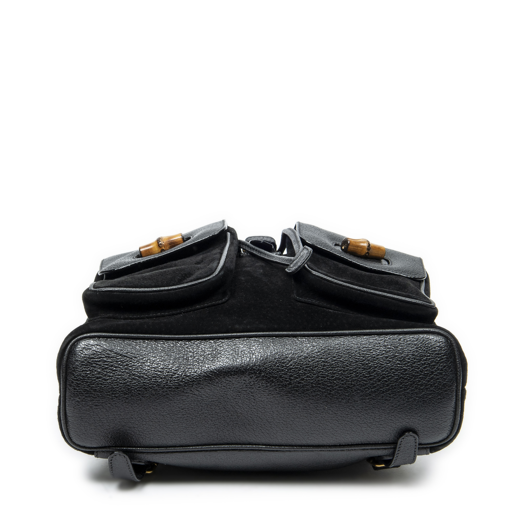 Gucci Backpack Large Bamboo Backpack in Black Suede Leather and Gold hardware. The product is in Very Good Condition (AB).