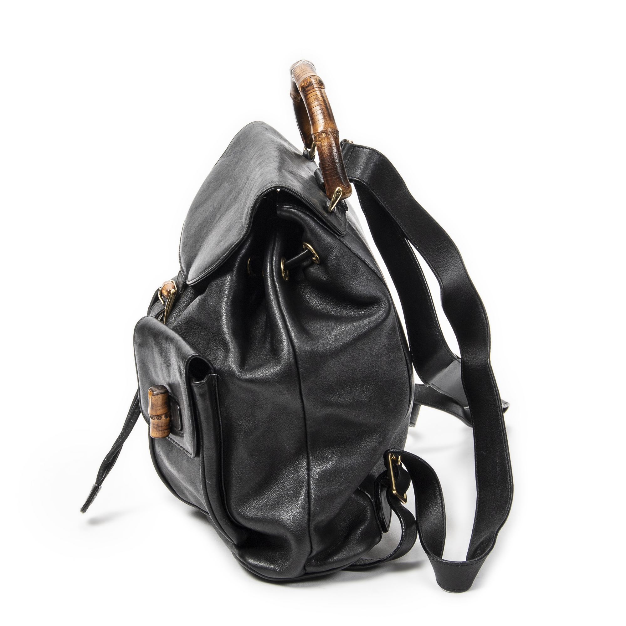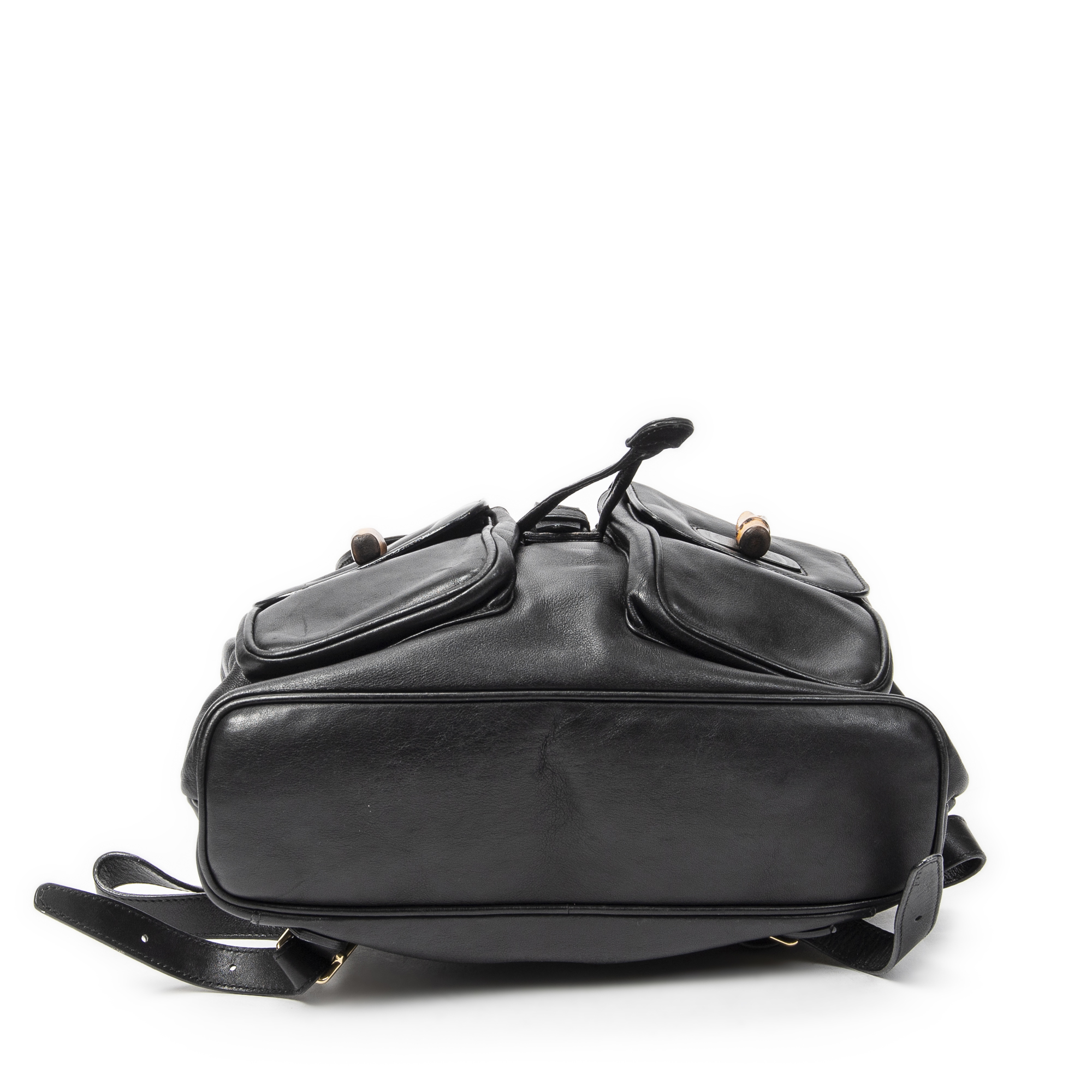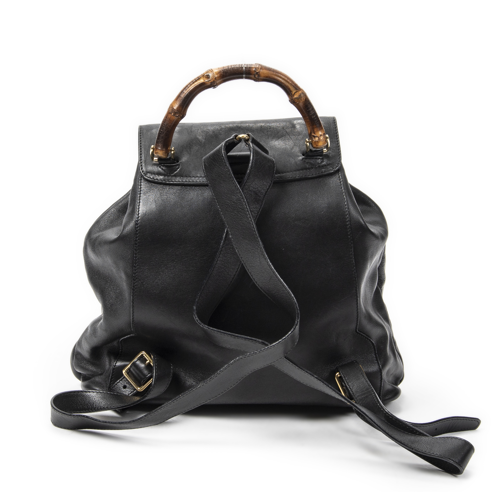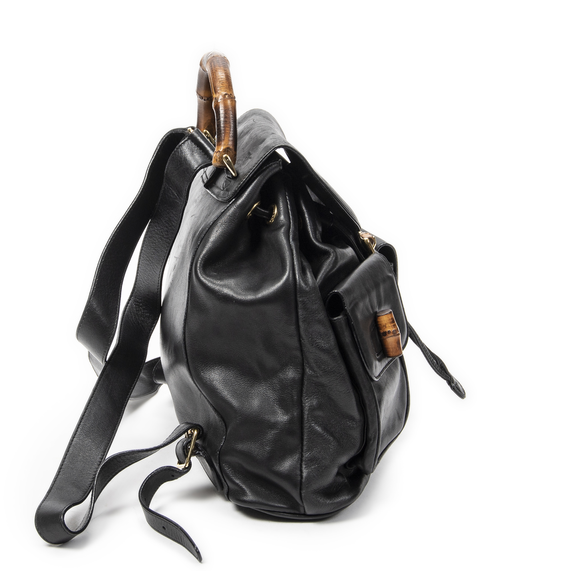 Gucci Backpack Large Bamboo Backpack in Black Smooth Calfskin Leather and Gold hardware. The product is in Very Good Condition (AB).