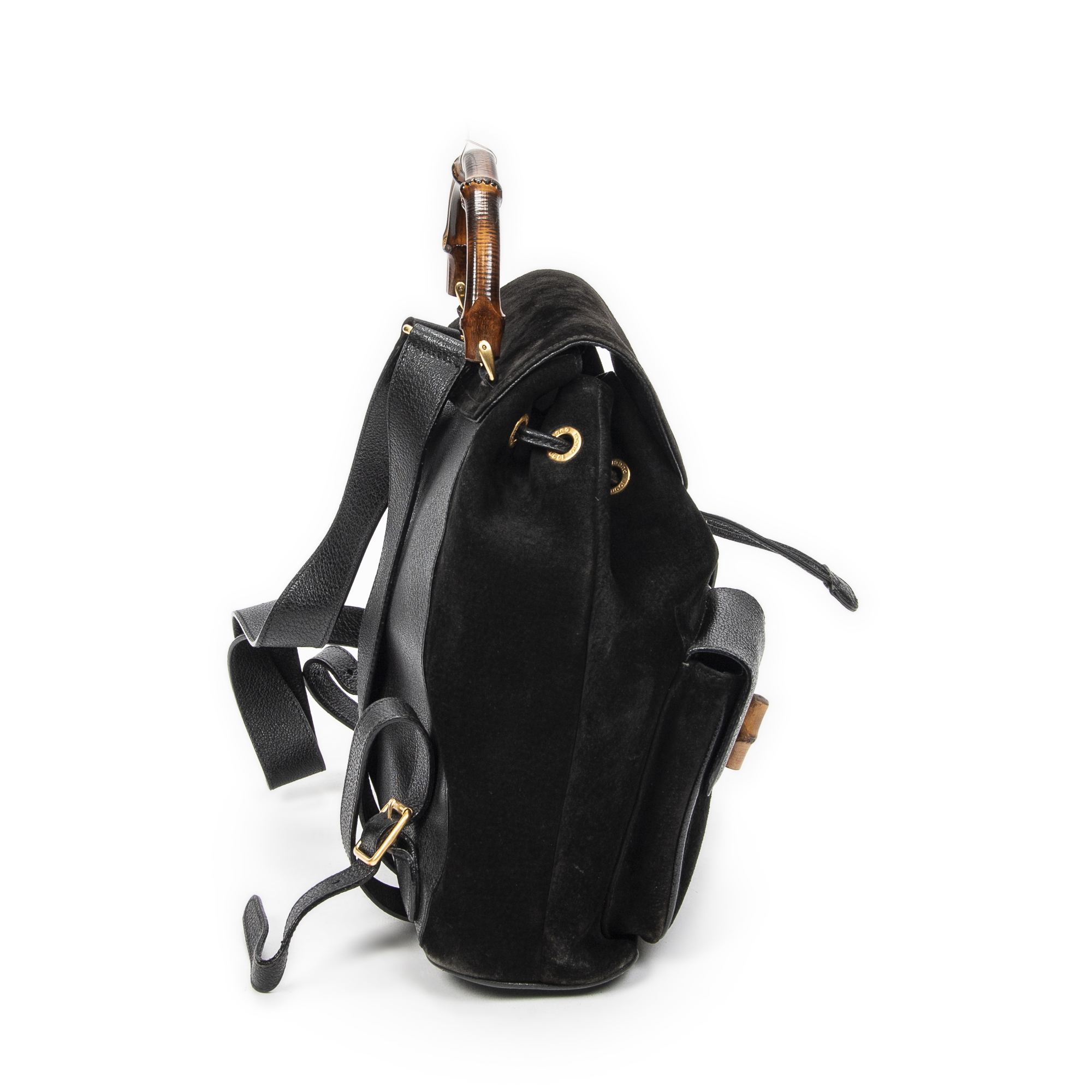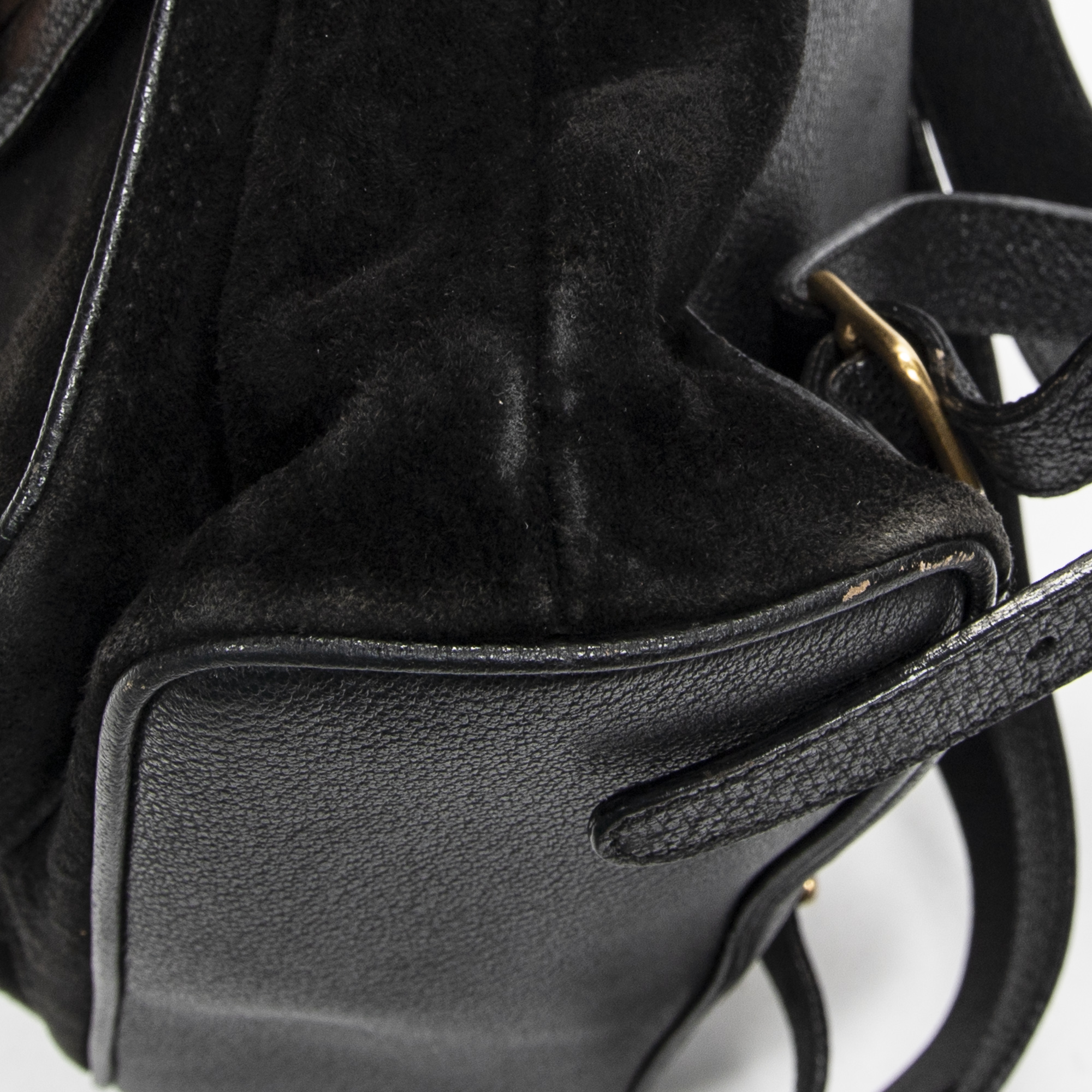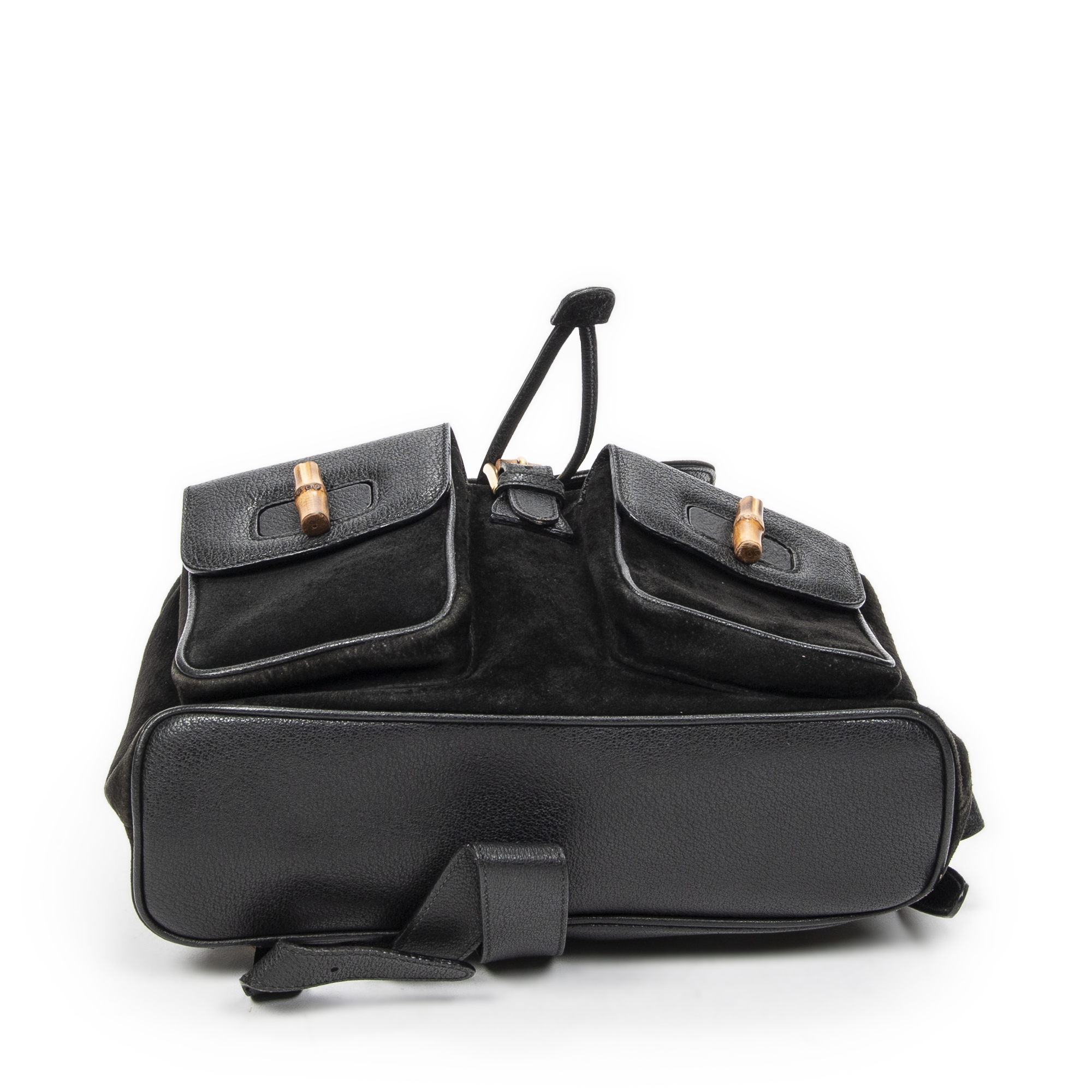 Gucci Backpack Large Bamboo Backpack in Black Suede Leather and Gold hardware. The product is in Very Good Condition (AB).
