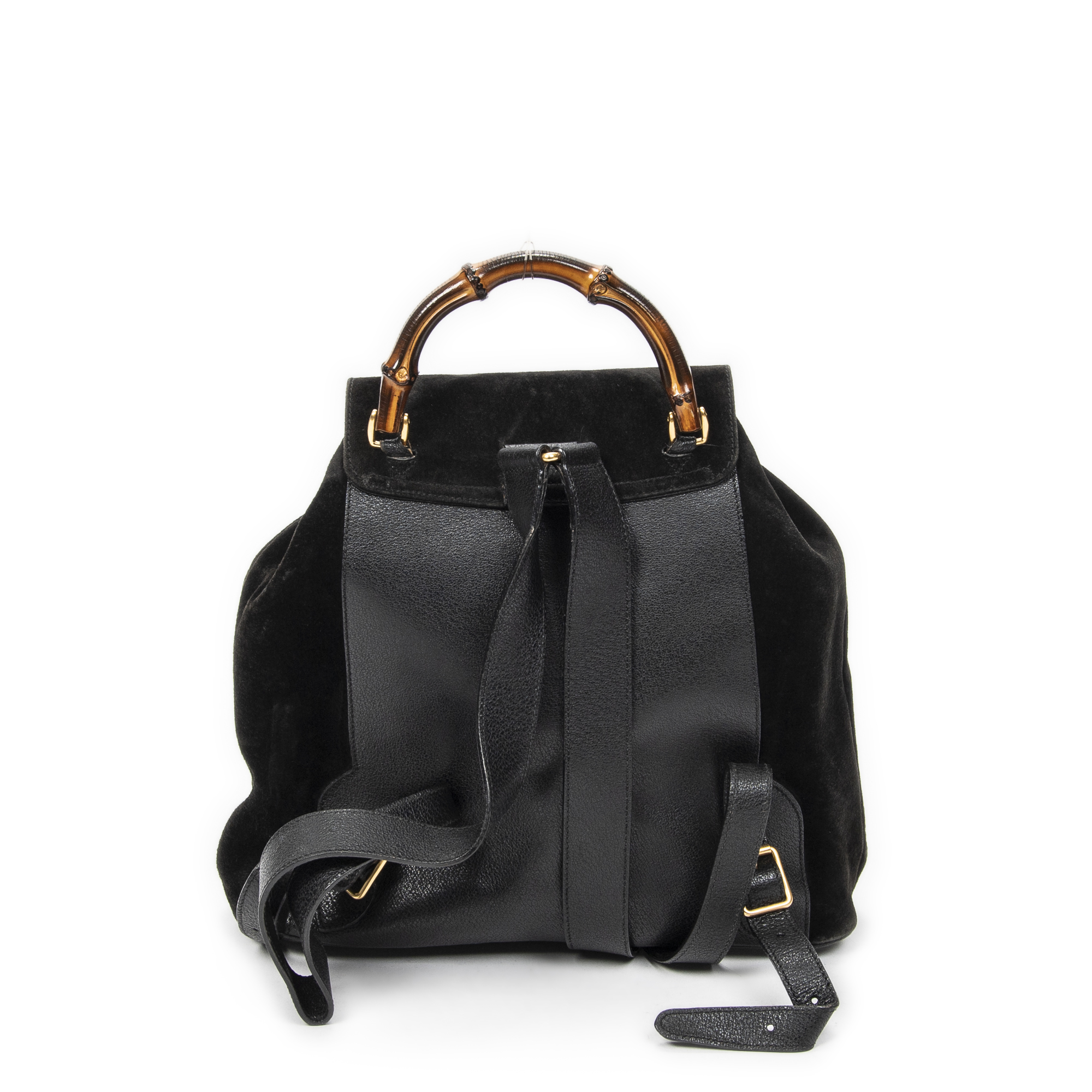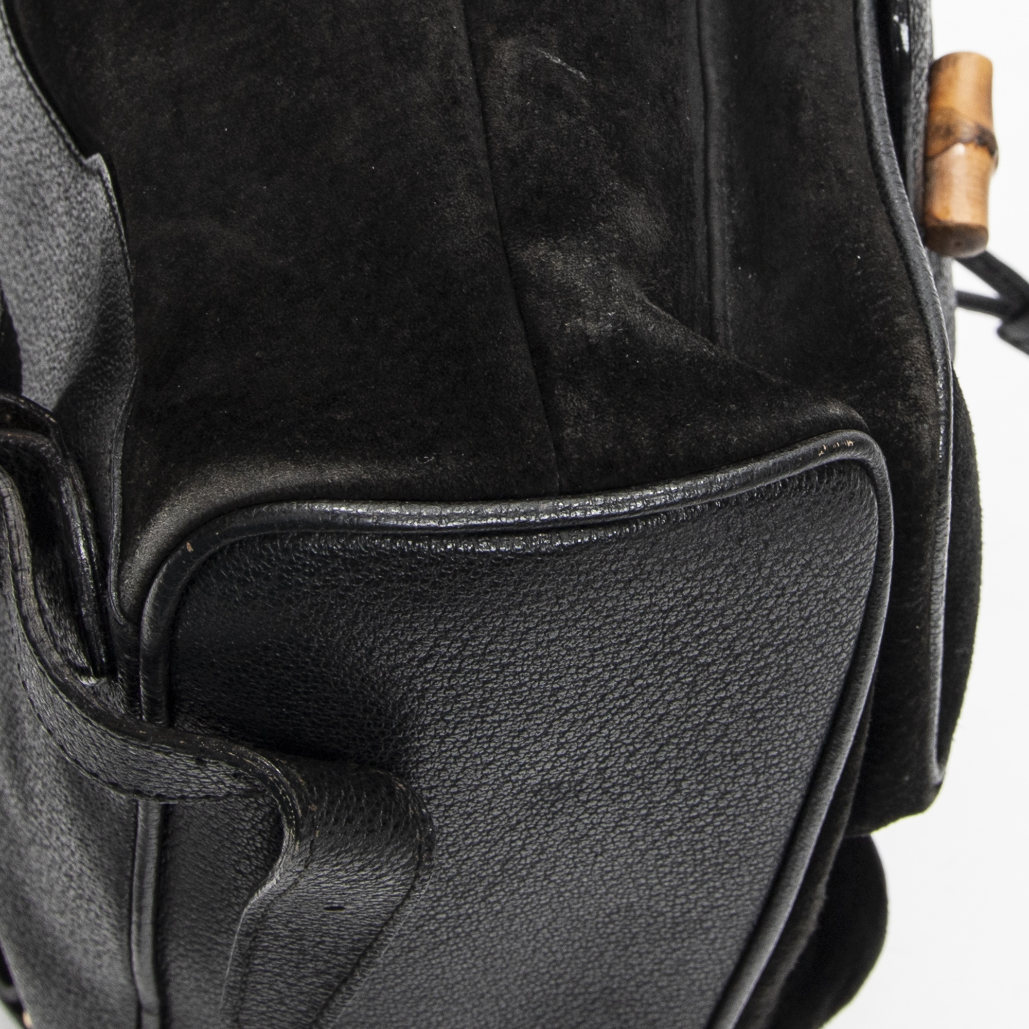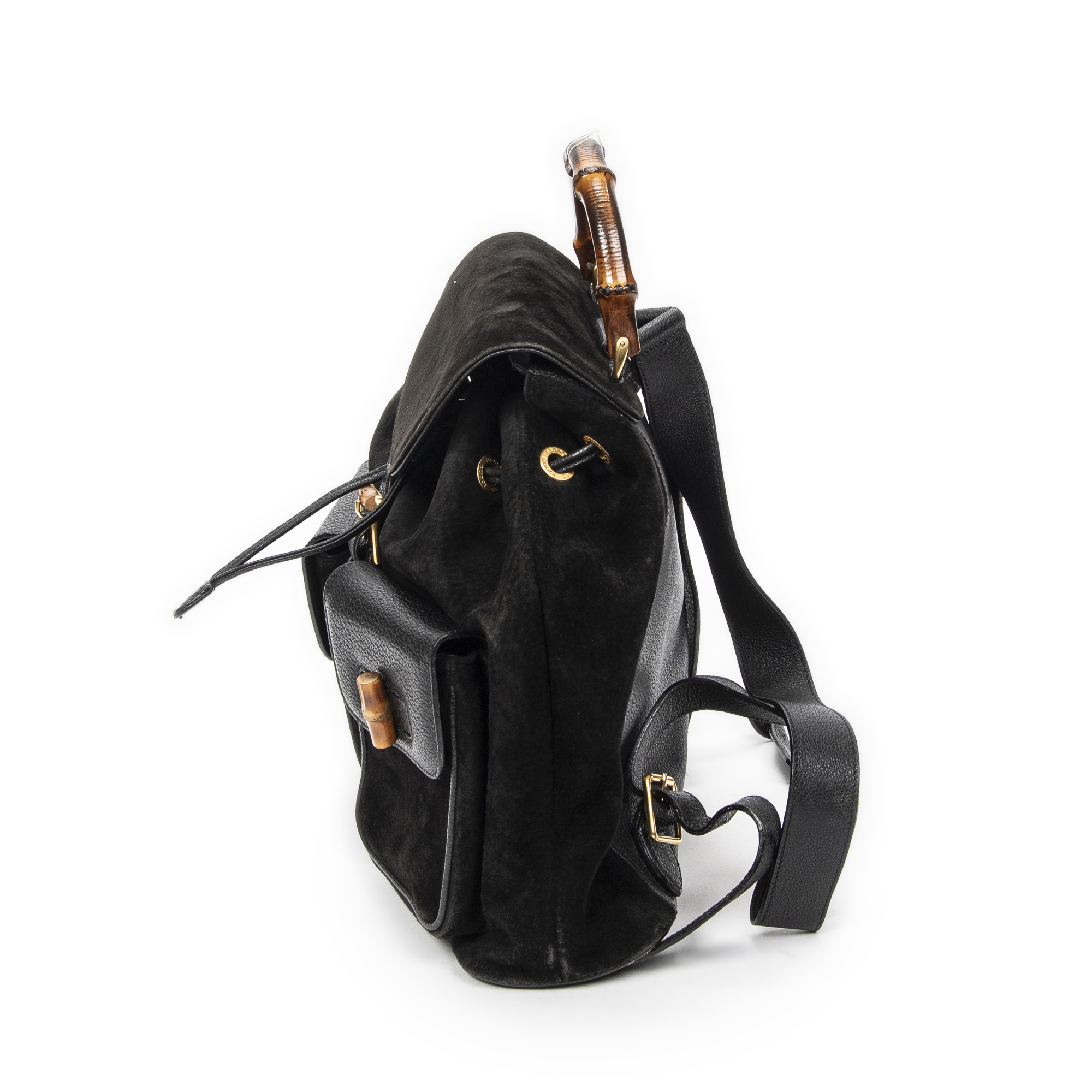 Gucci Backpack Large Bamboo Backpack in Black Suede Leather and Gold hardware. The product is in Very Good Condition (AB).