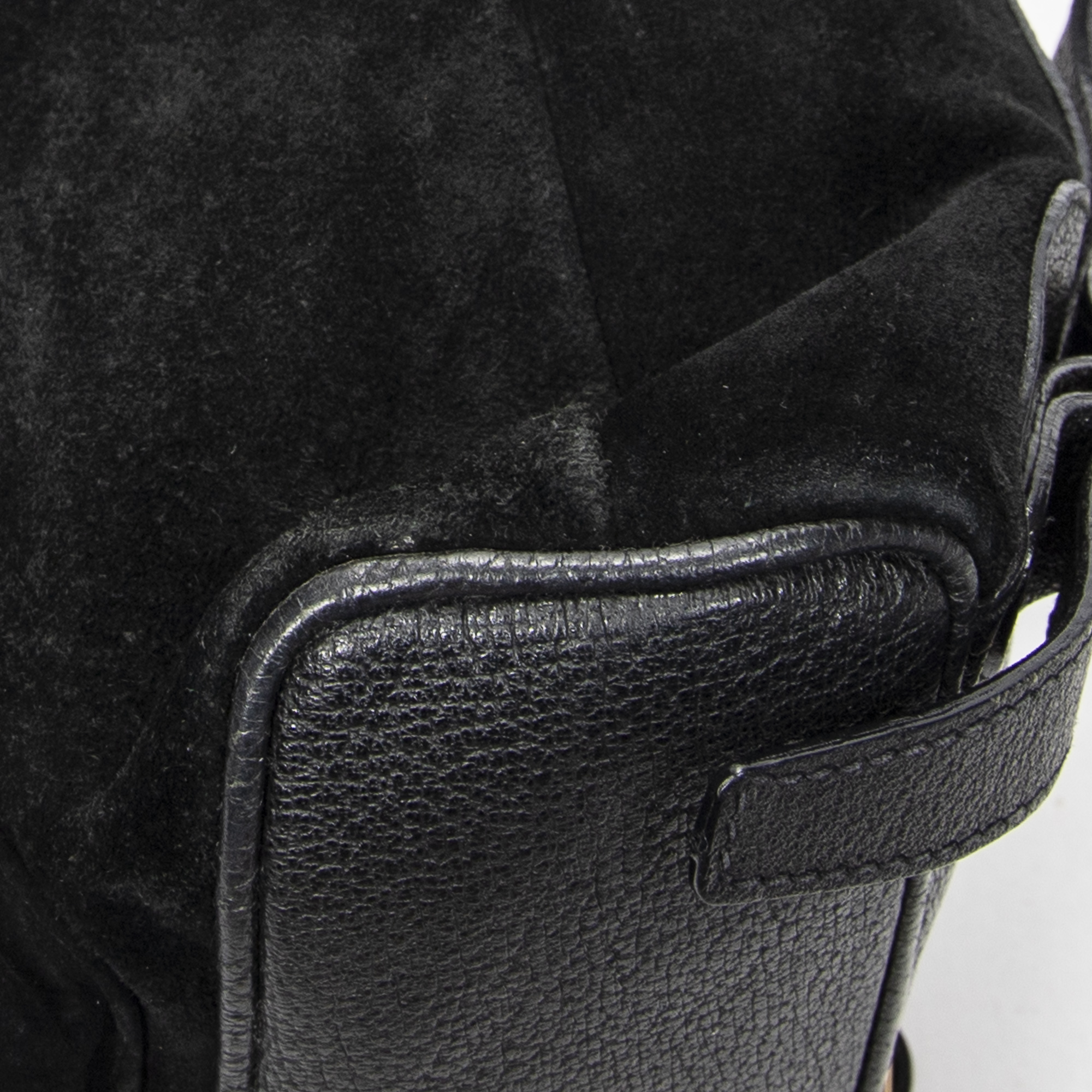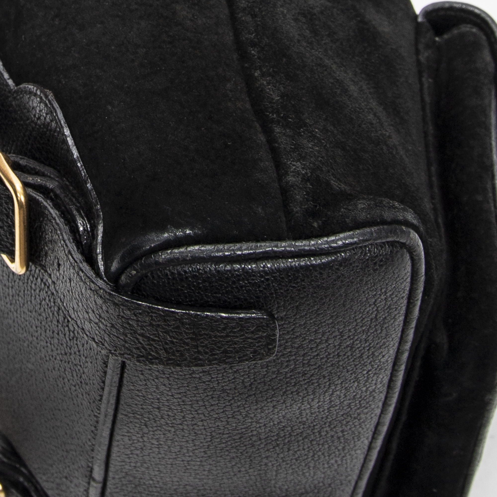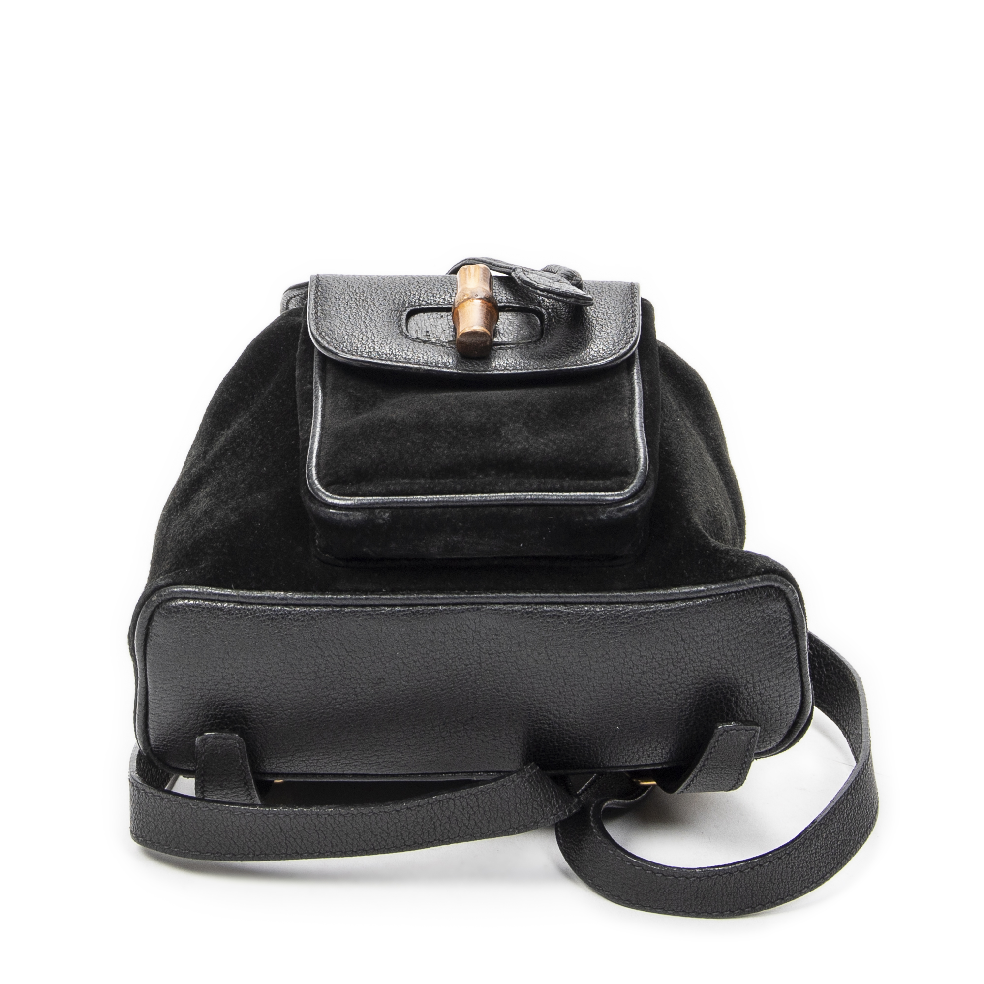 Gucci Backpack Mini Bamboo Backpack in Black Suede Leather and Gold hardware. The product is in Very Good Condition (AB).