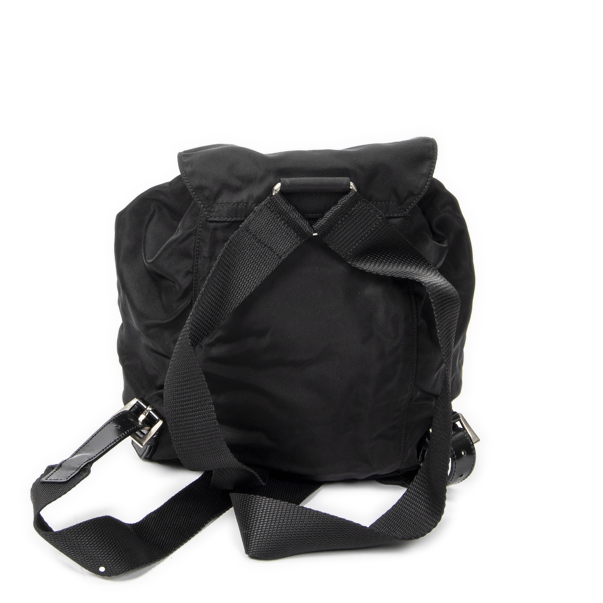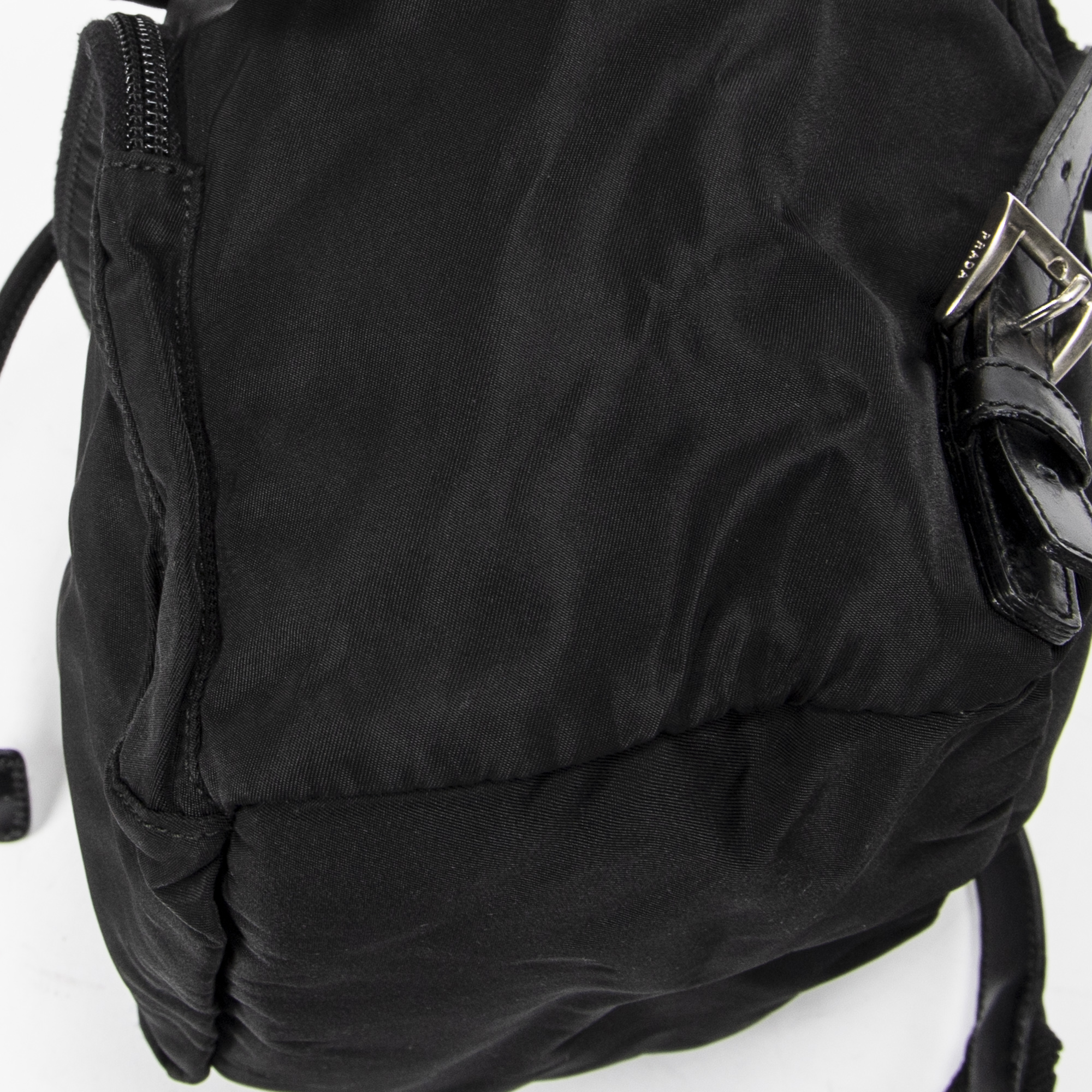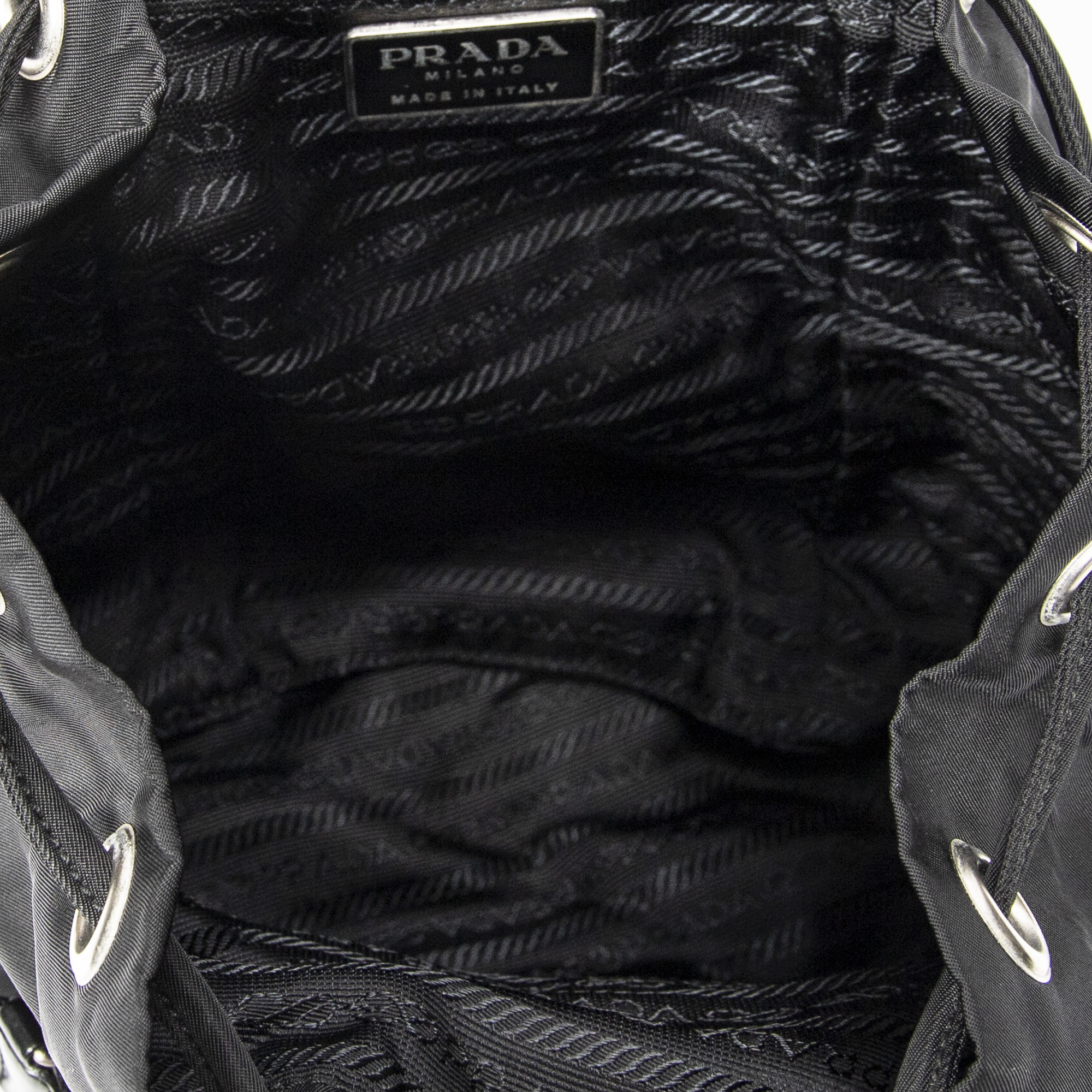 Prada Backpack Mini Drawstring Backpack in Black Nylon Canvas and Silver hardware. The product is in Excellent Condition (A).
