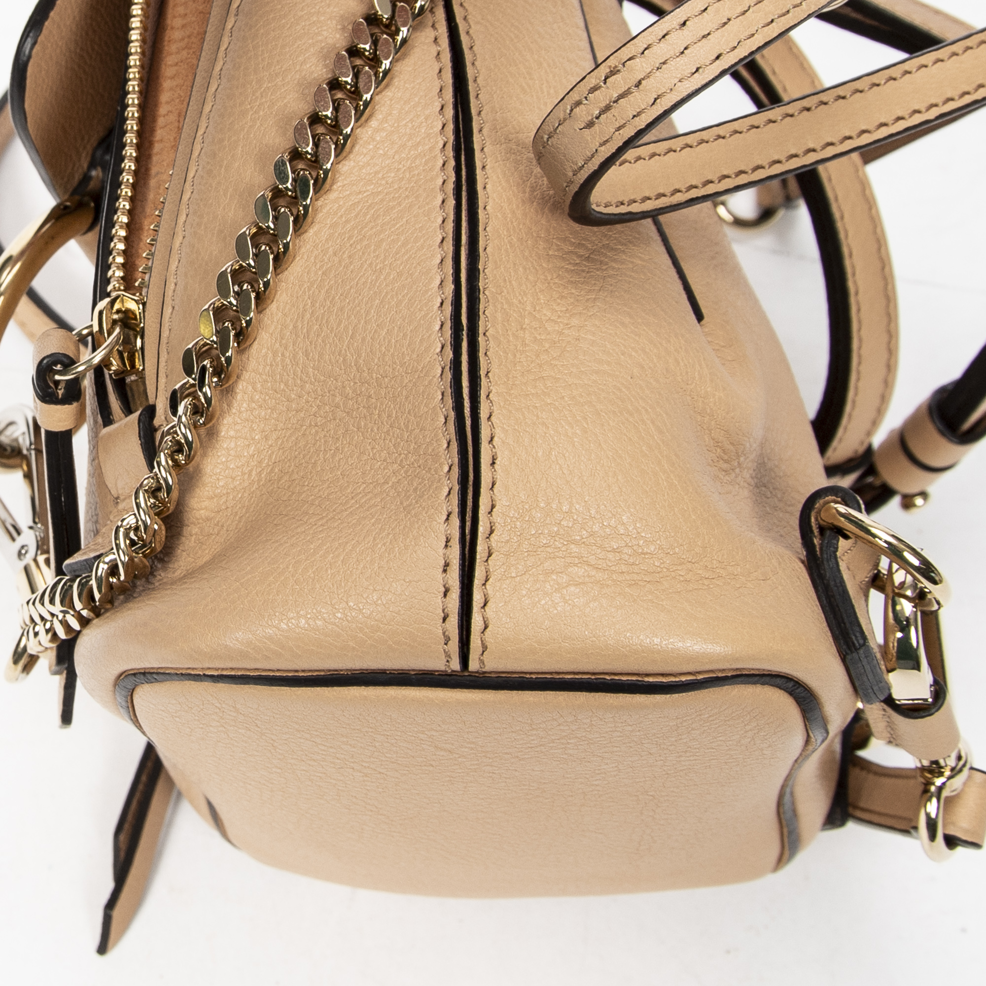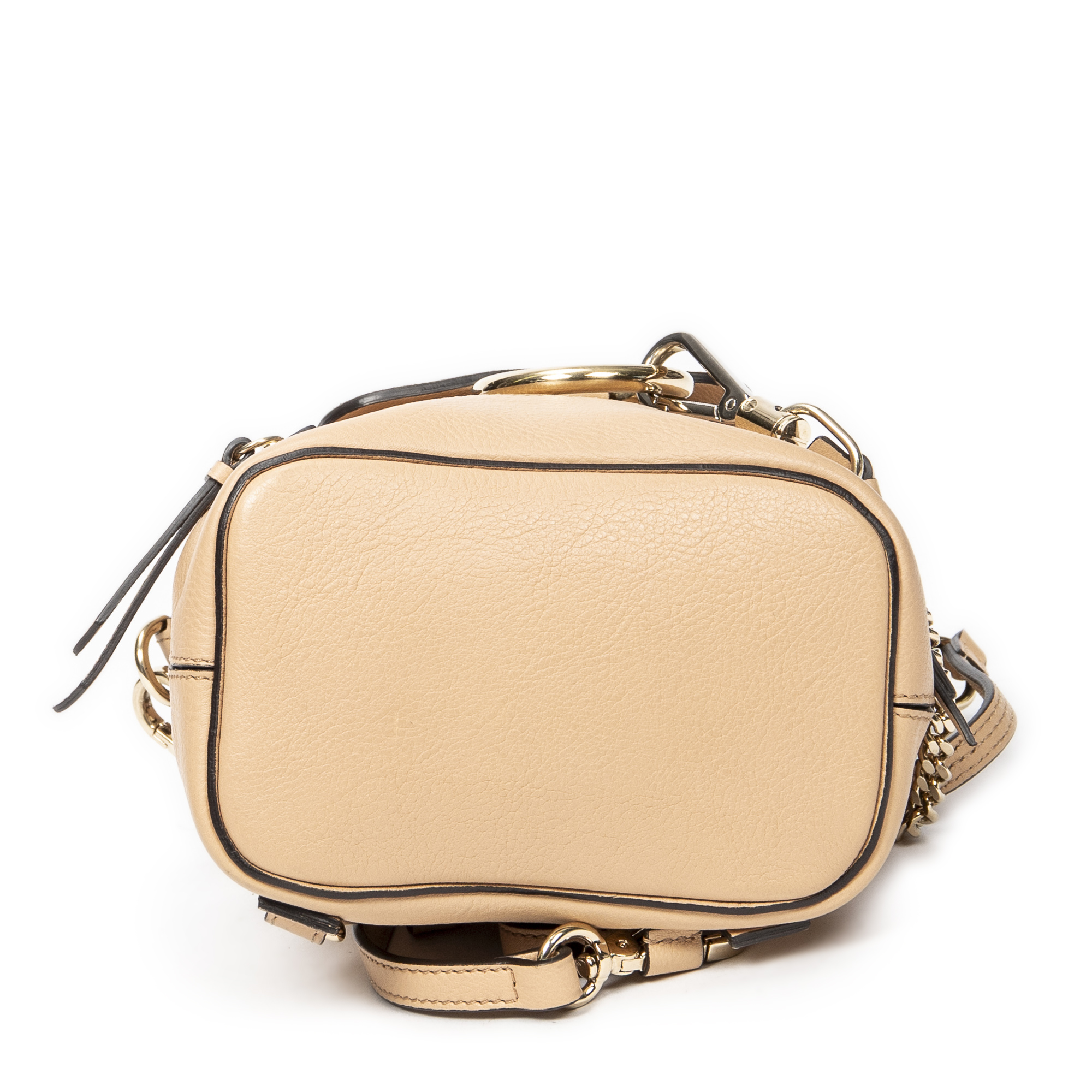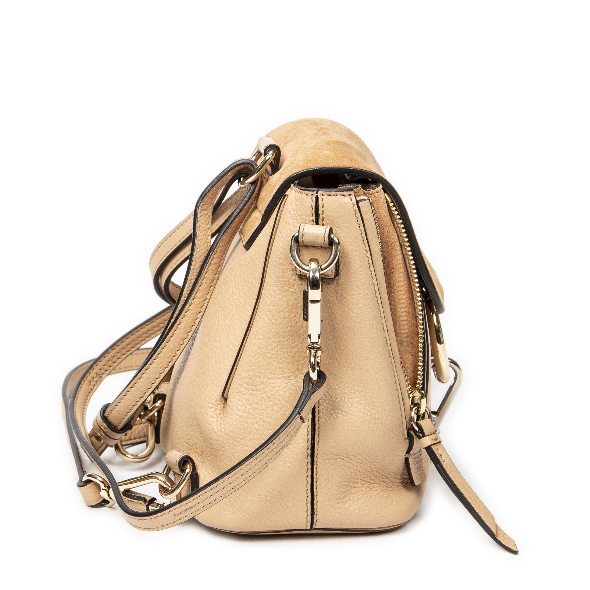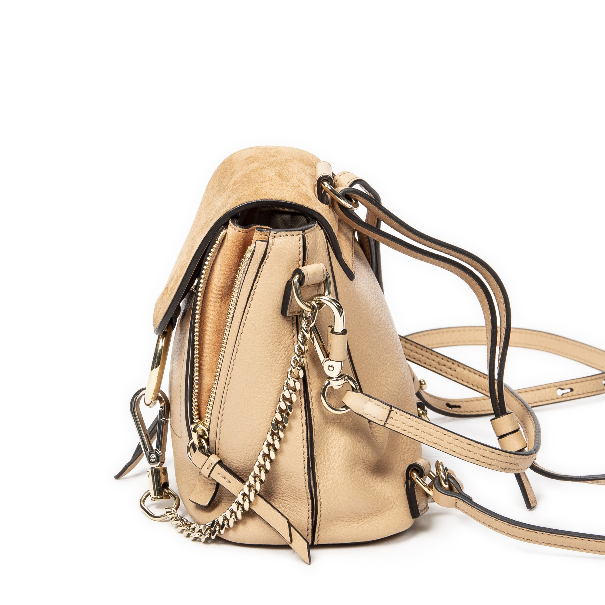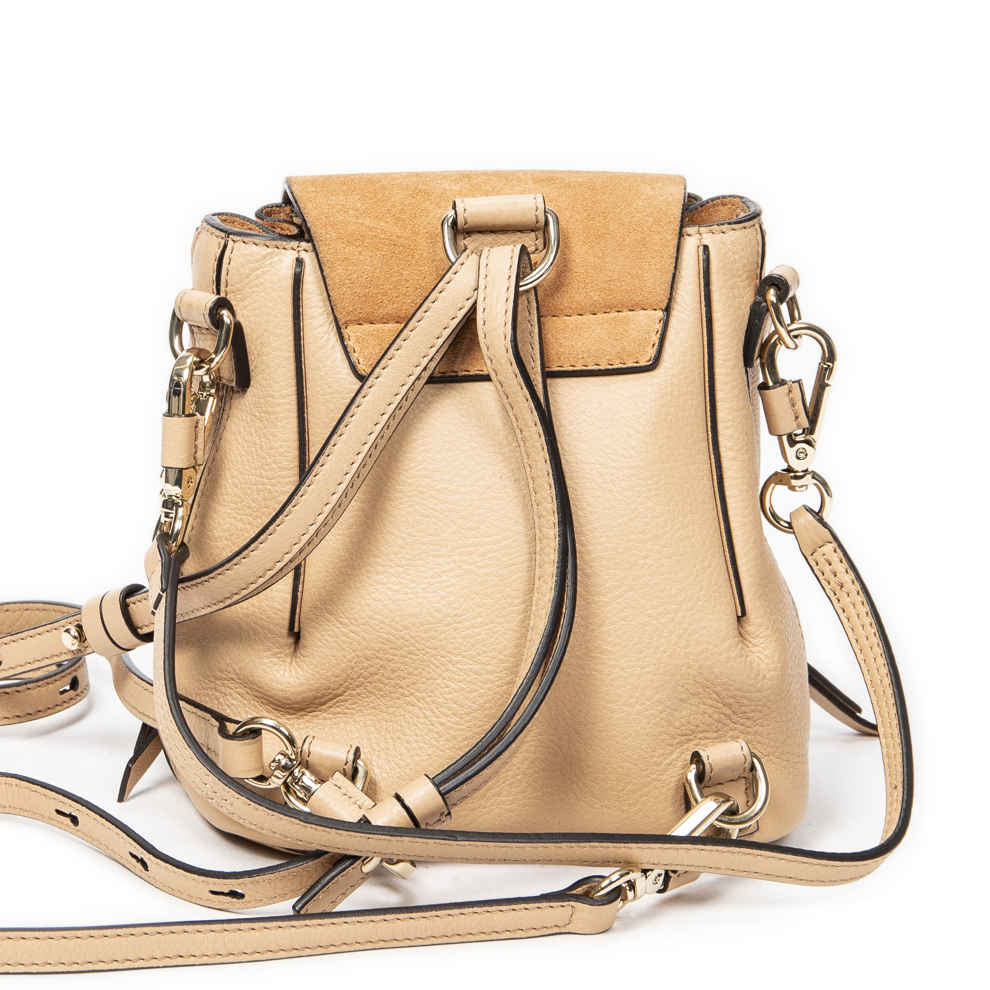 Chloé Backpack Mini Faye Backpack in Beige Calfskin Leather and Gold hardware. The product is in Excellent Condition (A).